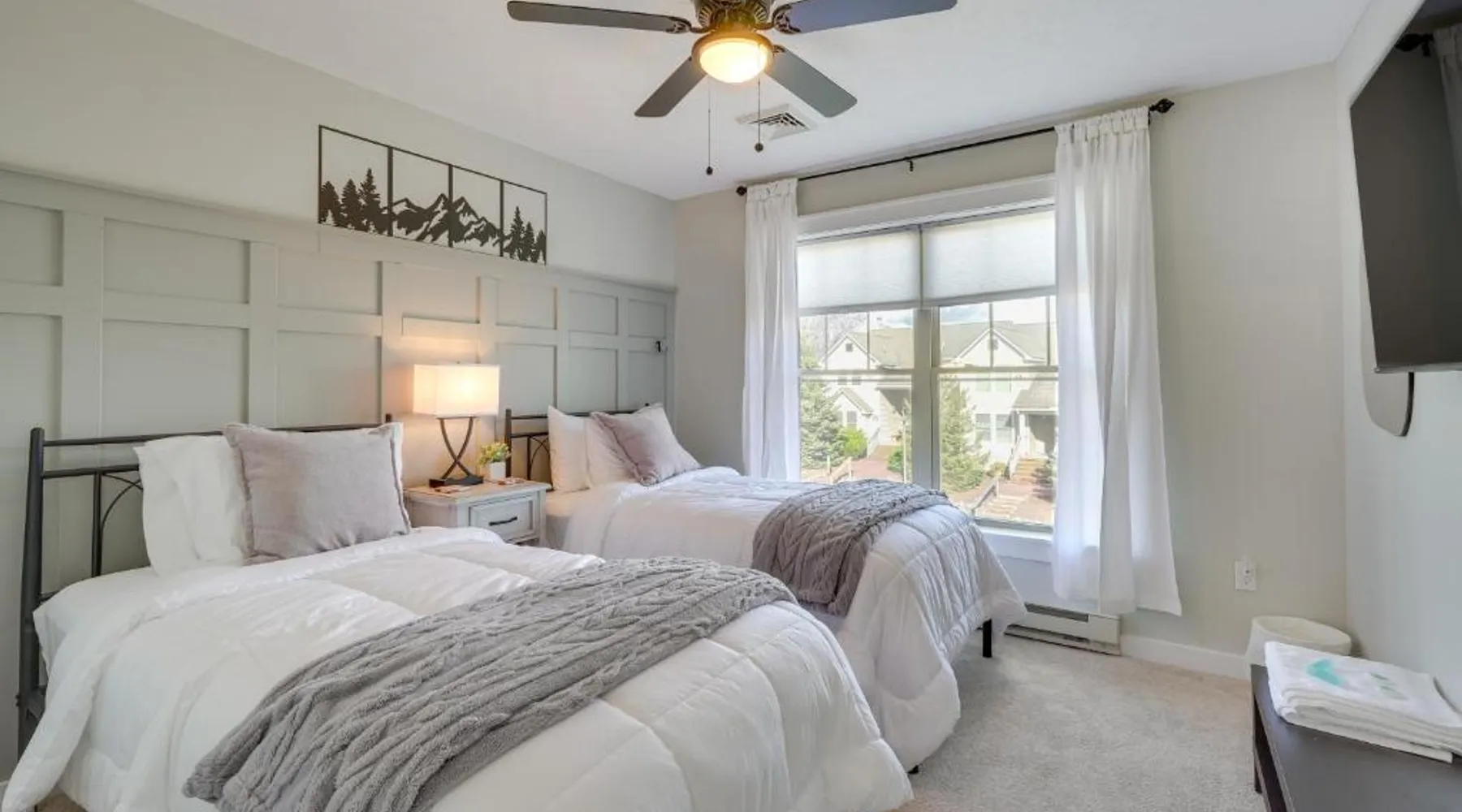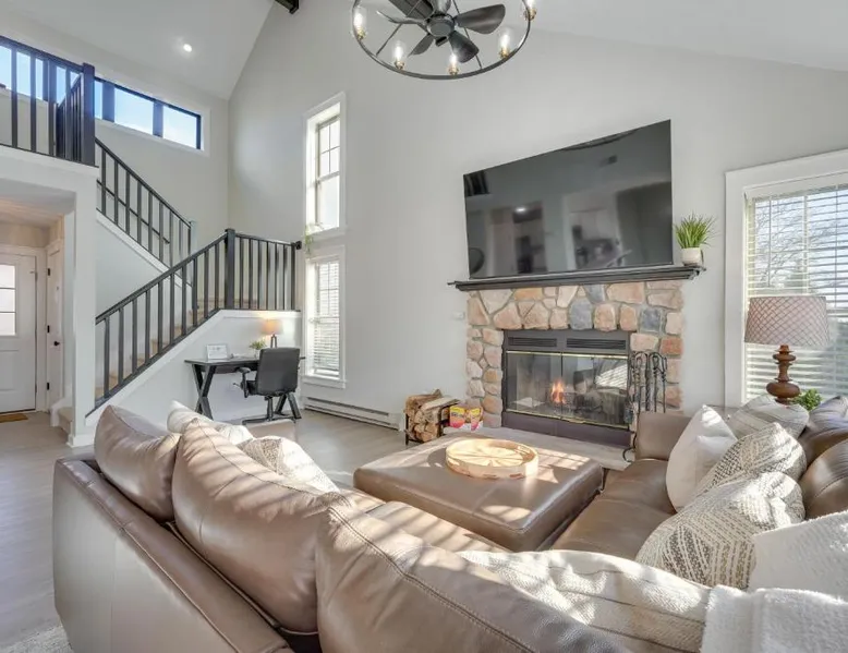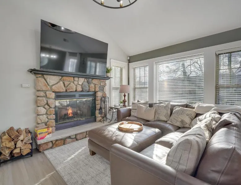 Spacious Accommodations: 1 Mi to Waterpark Mtn-View Poconos Hideaway! in Tannersville offers a spacious holiday home with three bedrooms and two bathrooms. The living room provides ample space for relaxation. Modern Amenities: Guests enjoy free WiFi, air-conditioning, a fully equipped kitchen with a coffee machine, dishwasher, and microwave. Additional amenities include a fireplace, barbecue, and private entrance. Convenient Location: Located 37 mi from Lehigh Valley International Airport, the property is near Delaware Water Gap National Recreation Area (17 mi), Great Wolf Lodge Pocono Mountains (5.6 mi), and Kalahari Waterpark (13 mi). Hiking trails and winter sports are available in the surroundings. This holiday home's standout feature is the fireplace. This spacious holiday home is consisted of of 1 living room, 3 separate bedrooms and 2 bathrooms with a hairdryer and free toiletries. Guests will find a stovetop, a refrigerator, a dishwasher and kitchenware in the well-equipped kitchen. The holiday home also has a barbecue. The holiday home offers air conditioning, a private entrance, a coffee machine along with heating. The unit offers 4 beds.