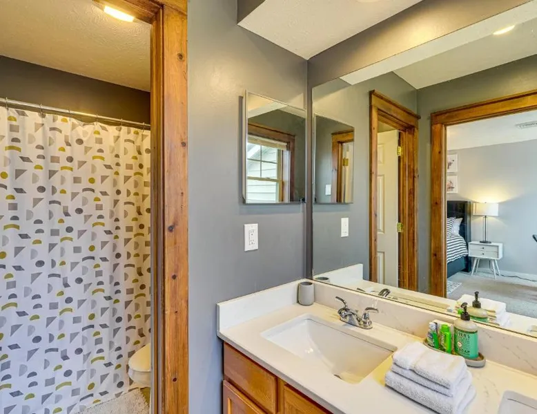 Spacious Accommodations: Spacious Modern Home about 1 Mi to Camelback Mountain! in Tannersville offers four bedrooms and three bathrooms. The property includes a fully equipped kitchen with modern appliances, a cozy fireplace, and a balcony. Essential Facilities: Guests enjoy free WiFi, air-conditioning, and a 24-hour front desk. Paid on-site parking is available. The holiday home features a washing machine, dishwasher, and a fully equipped kitchen with a coffee machine and microwave. Local Attractions: Located 37 mi from Lehigh Valley International Airport, the property is near Delaware Water Gap National Recreation Area (17 mi), Great Wolf Lodge Pocono Mountains (5.6 mi), and Kalahari Waterpark (13 mi). Hiking trails and winter sports are available in the surroundings. This holiday home's standout feature is the fireplace. Boasting a private entrance, this spacious holiday home also includes 4 separate bedrooms and 3 bathrooms with a bath and a hairdryer. Guests will find a stovetop, a refrigerator, a dishwasher and kitchenware in the fully equipped kitchen. The holiday home also features a barbecue. This holiday home has air conditioning, a washing machine, a flat-screen TV and a balcony. The unit has 7 beds.