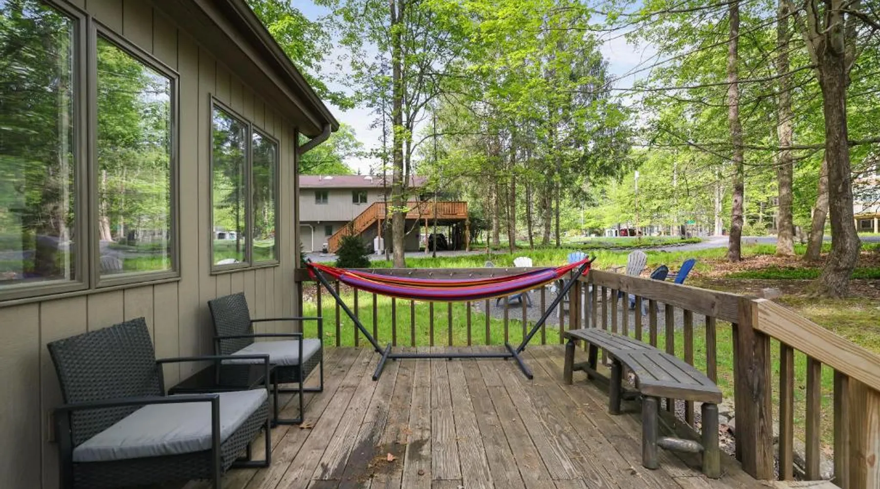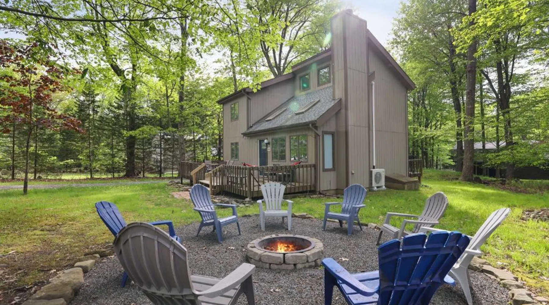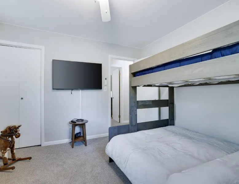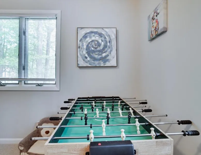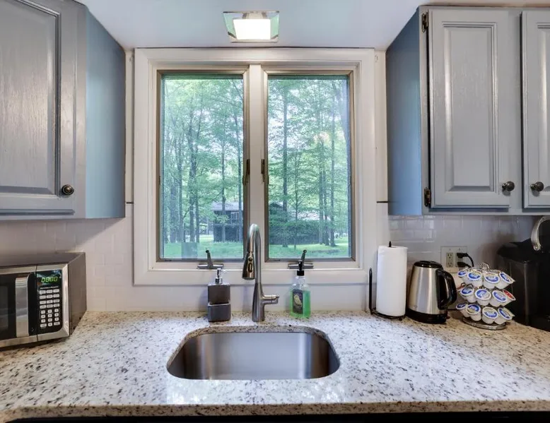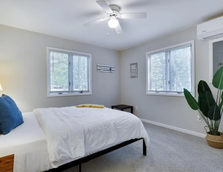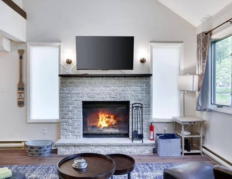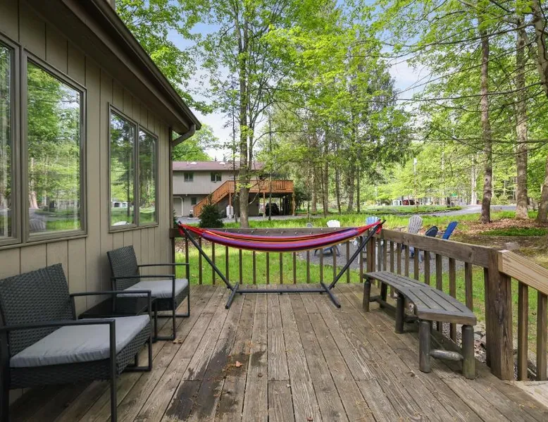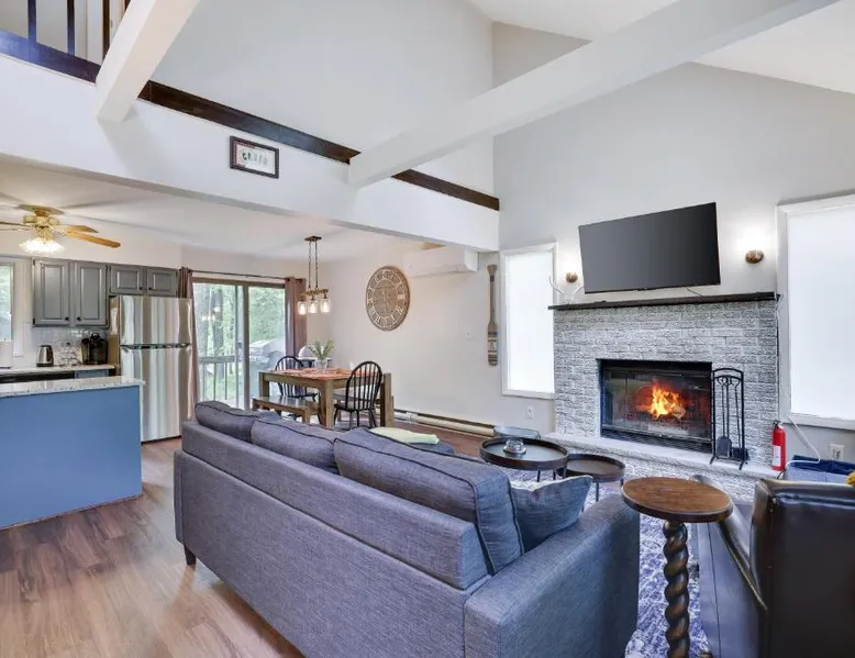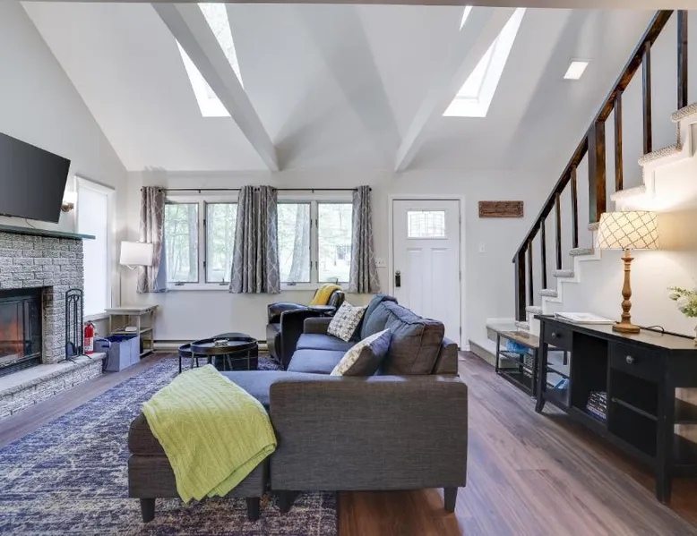 Spacious Accommodations: Dreamy Lake House in Pocono Lake offers a recently renovated chalet with four bedrooms and two bathrooms. The living room features a fireplace and parquet floors, ensuring a comfortable stay. Outdoor Amenities: Guests can enjoy a sun terrace, garden, tennis court, and outdoor fireplace. The property includes a private check-in and check-out service, free WiFi, and free on-site private parking. Activities and Attractions: The chalet provides ski-to-door access, hiking, and nearby attractions such as Jack Frost Mountain Resort (6.2 mi) and Delaware Water Gap National Recreation Area (31 mi). Wilkes-Barre/Scranton International Airport is 44 mi away. This chalet features a fireplace. This spacious chalet features 1 living room, 4 separate bedrooms and 2 bathrooms with a bath and free toiletries. Guests will find a stovetop, a refrigerator, a dishwasher and kitchenware in the well-equipped kitchen. The chalet also comes with a barbecue. The air-conditioned chalet features a flat-screen TV, a washing machine, a tea and coffee maker, a seating area as well as garden views. The unit has 4 beds.
