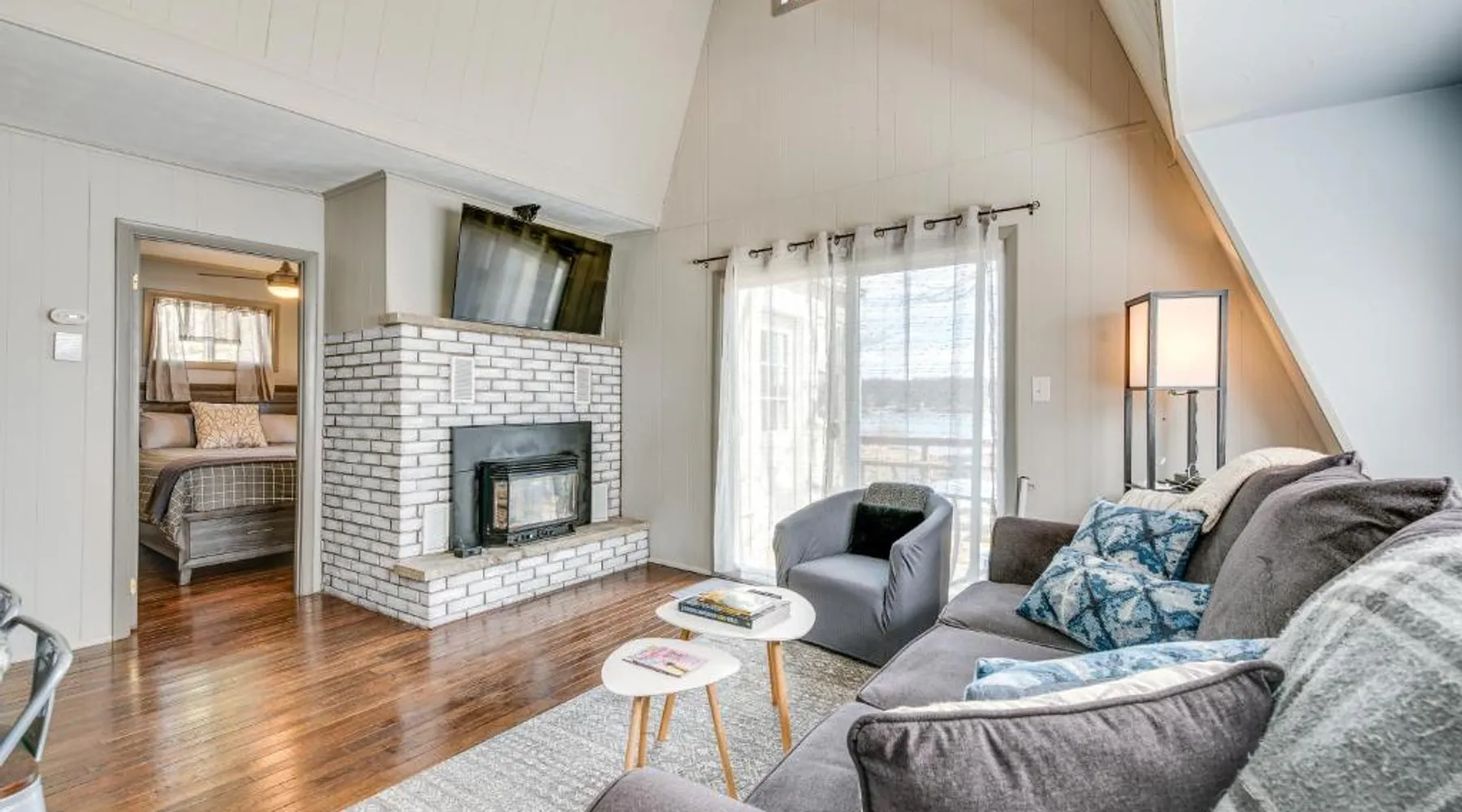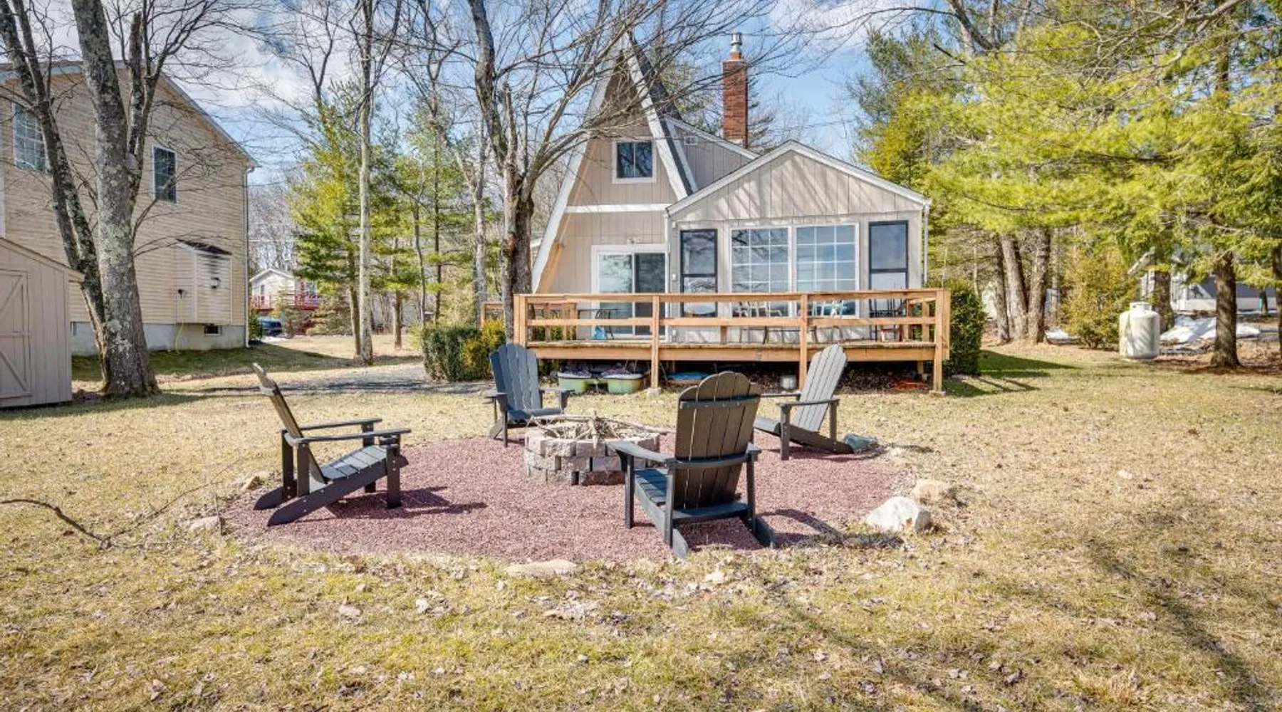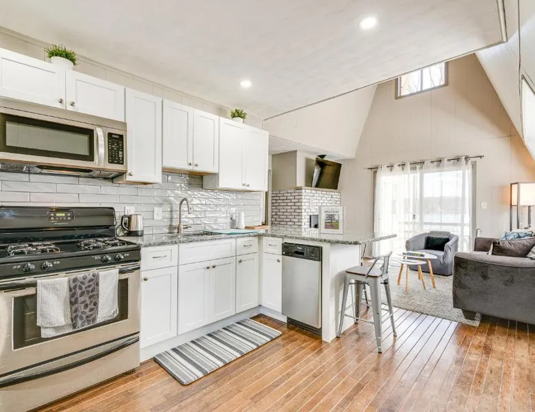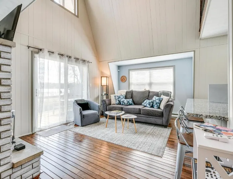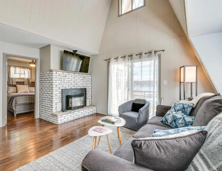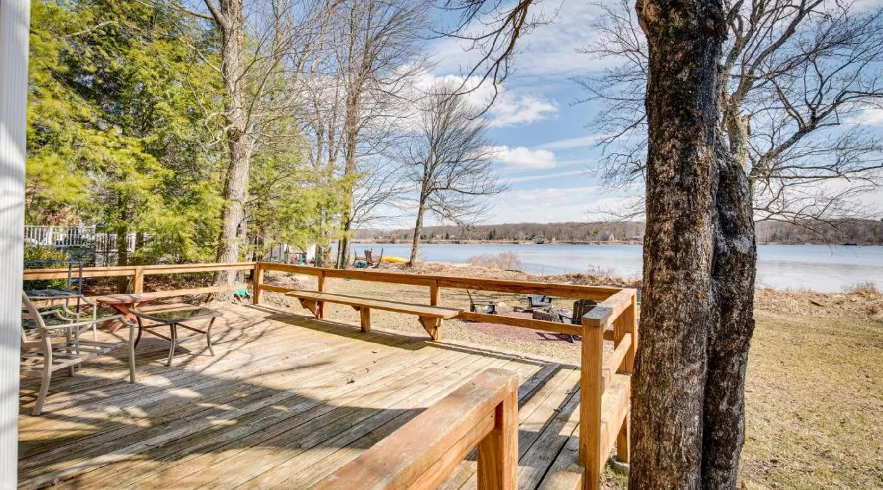 Comfortable Accommodations: Dock and Sunroom Waterfront Home Near Kalahari! in Pocono Summit offers two bedrooms and two bathrooms. The living room features a TV and comfortable seating. Modern Amenities: Guests enjoy free WiFi, a fully equipped kitchen with a coffee machine, refrigerator, microwave, dishwasher, oven, stovetop, and toaster. Additional amenities include a washing machine, outdoor dining area, and private entrance. Convenient Location: Located 40 mi from Wilkes-Barre/Scranton International Airport, the property is near Delaware Water Gap National Recreation Area (23 mi), Kalahari Waterpark (2.2 mi), and Great Wolf Lodge Pocono Mountains (7.5 mi). Featuring a private entrance, this holiday home is consisted of of 1 living room, 2 separate bedrooms and 2 bathrooms with a shower. Meals can be prepared in the well-fitted kitchen, which is fitted with a stovetop, a refrigerator, a dishwasher and kitchenware. The holiday home offers a washing machine, a coffee machine, tumble dryer, a flat-screen TV, as well as lake views. The unit offers 4 beds.