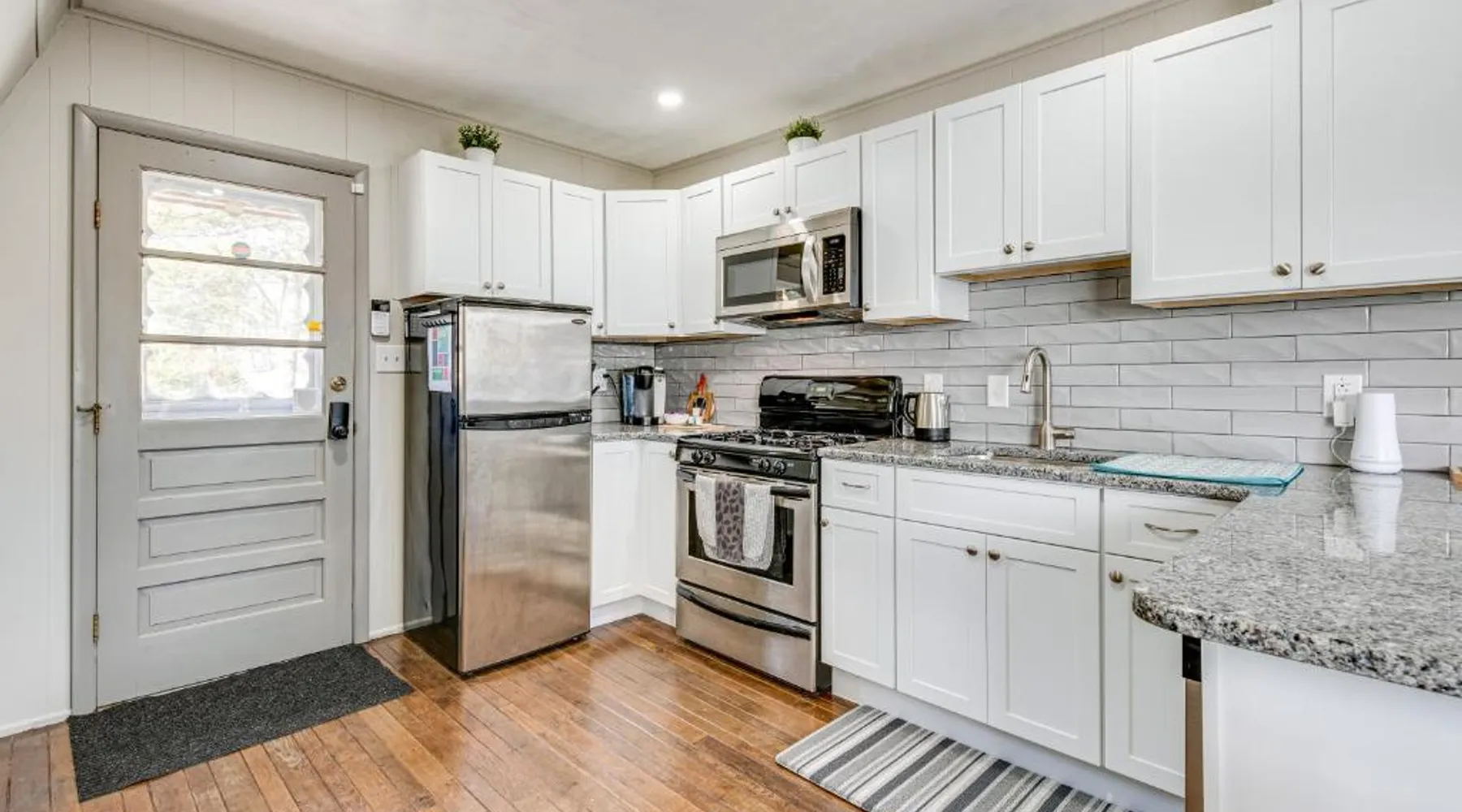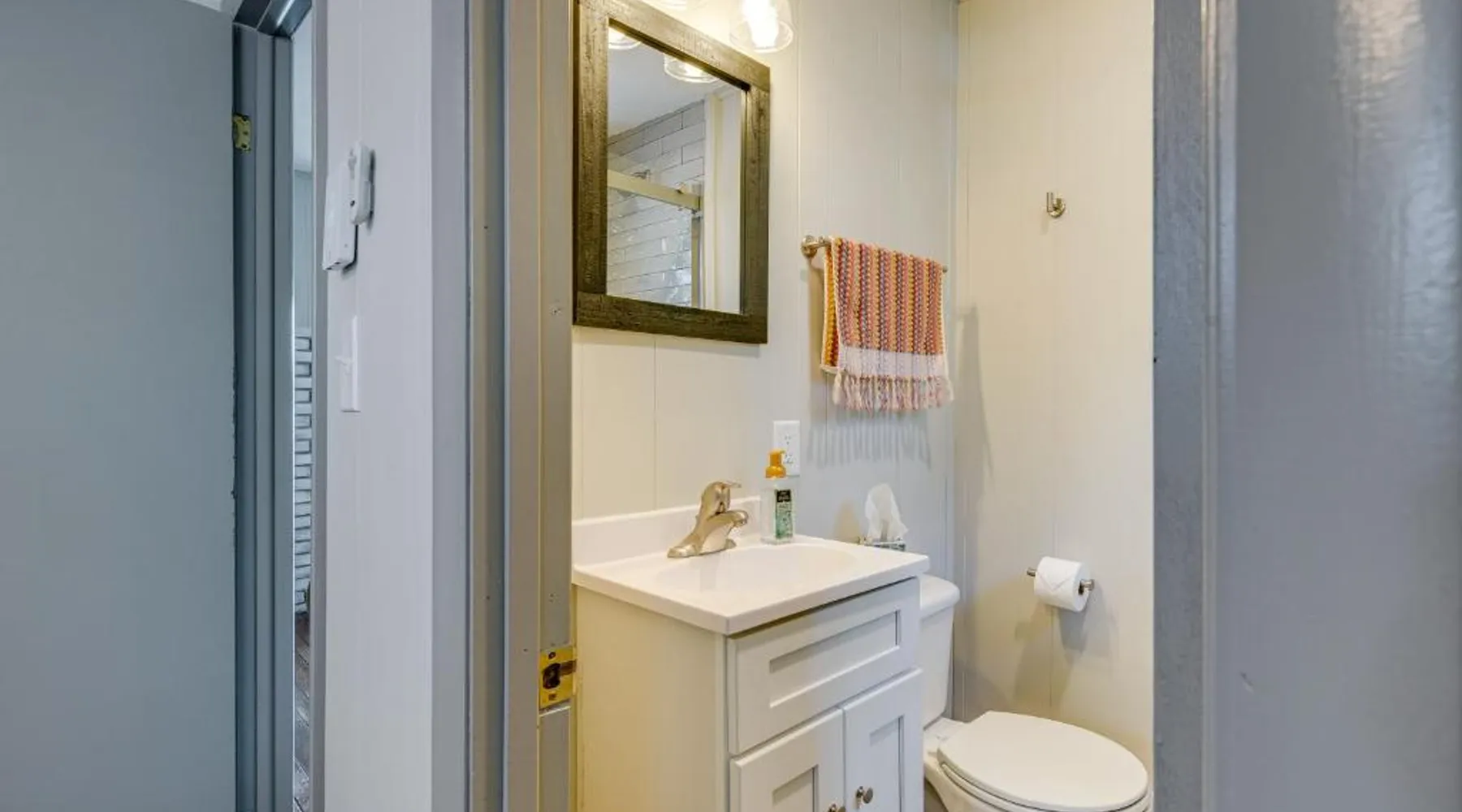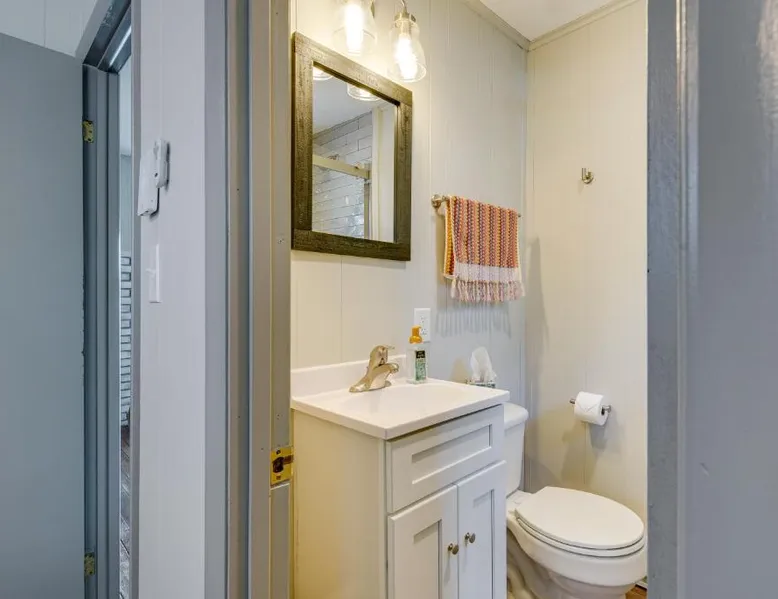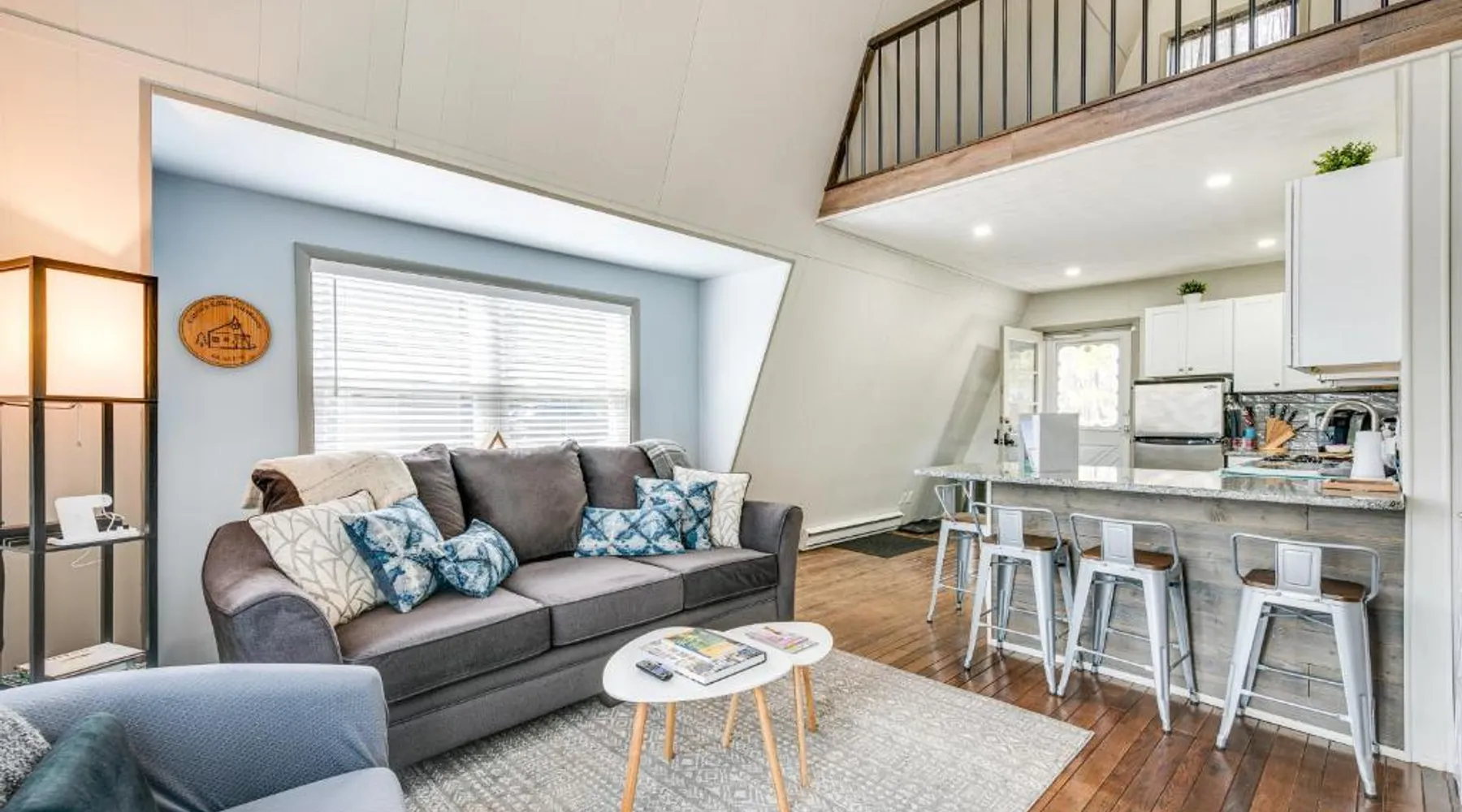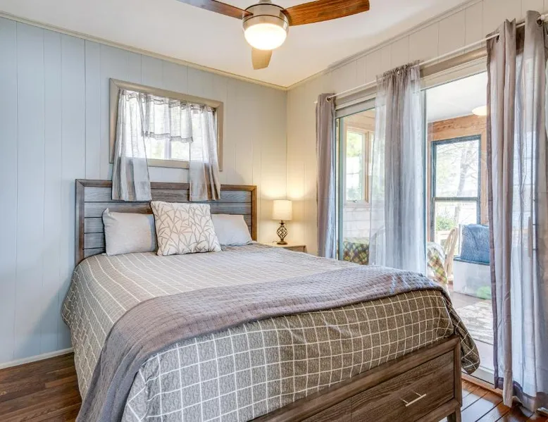 Comfortable Accommodations: Dock and Sunroom Waterfront Home Near Kalahari! in Pocono Summit offers two bedrooms and two bathrooms. The living room features a TV and comfortable seating. Modern Amenities: Guests enjoy free WiFi, a fully equipped kitchen with a coffee machine, refrigerator, microwave, dishwasher, oven, stovetop, and toaster. Additional amenities include a washing machine, outdoor dining area, and private entrance. Convenient Location: Located 40 mi from Wilkes-Barre/Scranton International Airport, the property is near Delaware Water Gap National Recreation Area (23 mi), Kalahari Waterpark (2.2 mi), and Great Wolf Lodge Pocono Mountains (7.5 mi). Featuring a private entrance, this holiday home is consisted of of 1 living room, 2 separate bedrooms and 2 bathrooms with a shower. Meals can be prepared in the well-fitted kitchen, which is fitted with a stovetop, a refrigerator, a dishwasher and kitchenware. The holiday home offers a washing machine, a coffee machine, tumble dryer, a flat-screen TV, as well as lake views. The unit offers 4 beds.