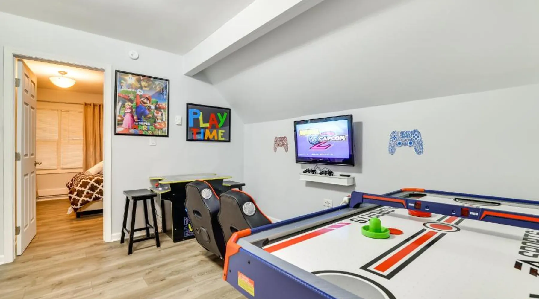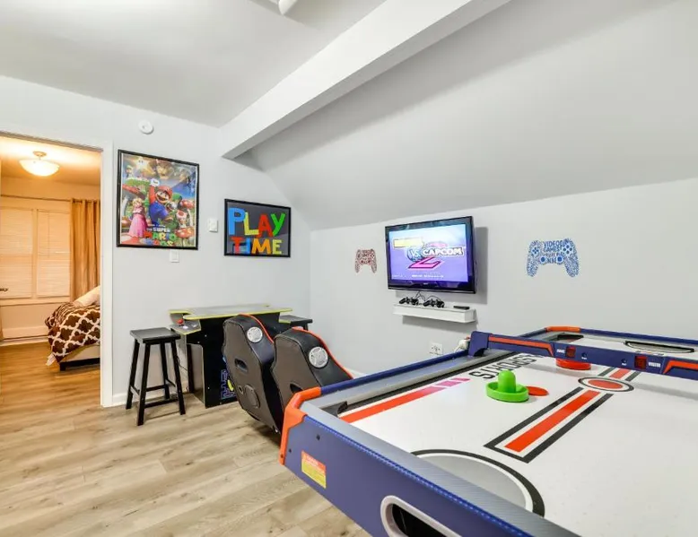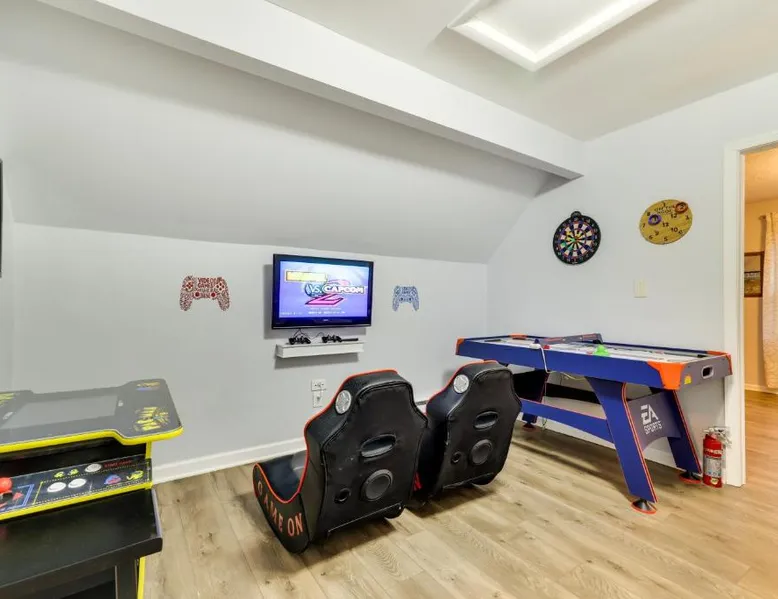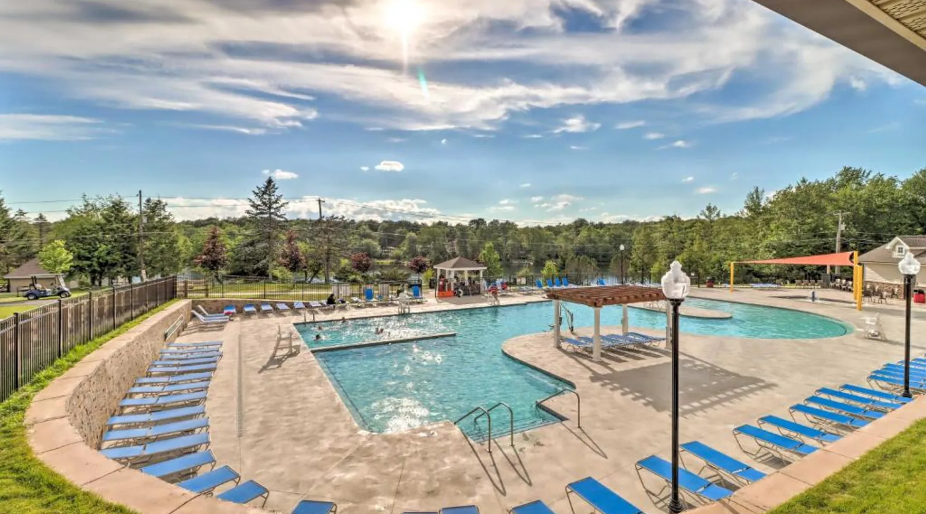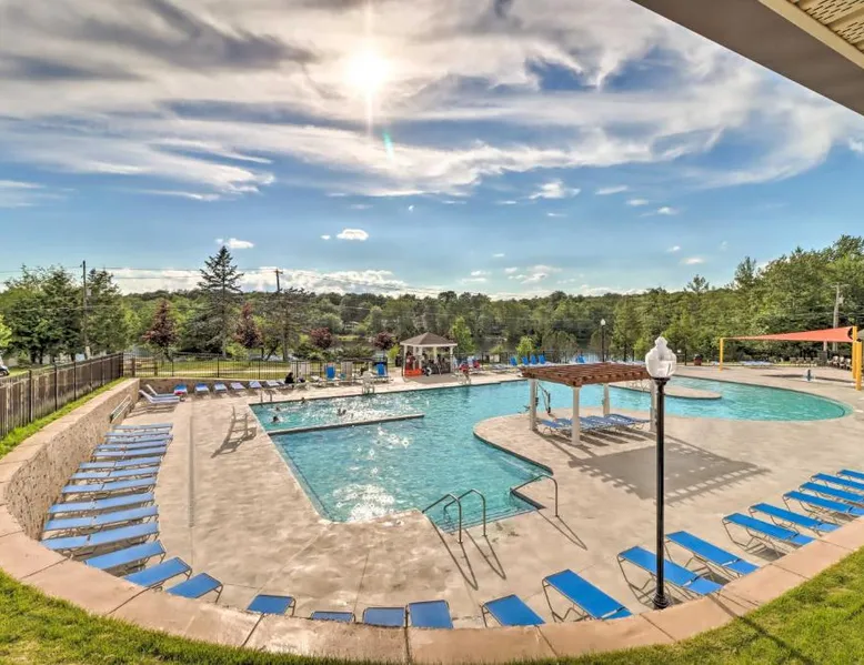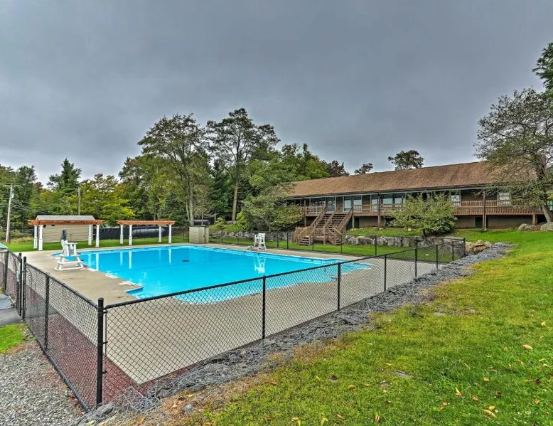 Spacious Holiday Home in Tobyhanna: 5 Mi to Tobyhanna State Park Home with Game Room! offers a spacious setting in Tobyhanna, United States. The property features four bedrooms and two bathrooms, ensuring ample space for all guests. Outdoor Pool and Free WiFi: Guests can enjoy an outdoor swimming pool and free WiFi throughout the holiday home. The property is highly rated for its excellent facilities and comfortable accommodations. Modern Amenities: The home includes air-conditioning, a fully equipped kitchen, and a living room. Additional amenities include a work desk, TV, and private entrance, providing a convenient and relaxing stay. Nearby Attractions: Located 39 mi from Wilkes-Barre/Scranton International Airport, the property is close to Delaware Water Gap National Recreation Area (25 mi), Kalahari Waterpark (9.3 mi), and Great Wolf Lodge Pocono Mountains (12 mi). Boasting a private entrance, this air-conditioned holiday home comes with 1 living room, 4 separate bedrooms and 2 bathrooms with a bath and a hairdryer. The well-equipped kitchen has a stovetop, a refrigerator, a dishwasher and kitchenware. The spacious holiday home features a coffee machine, a wardrobe, a game console, video games, as well as a flat-screen TV. The unit has 5 beds.