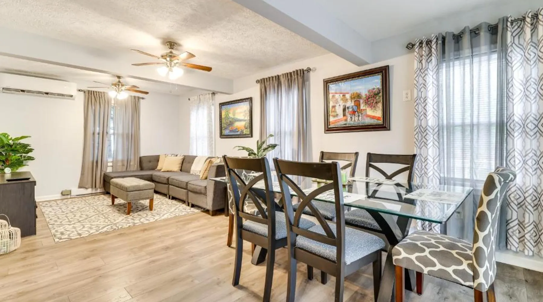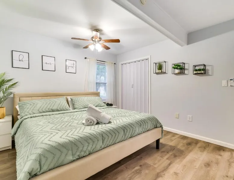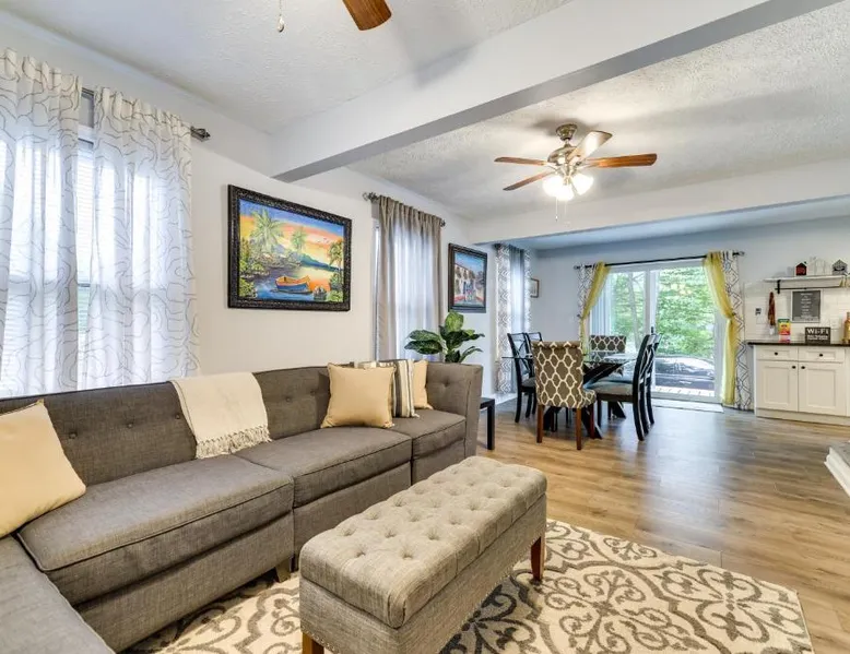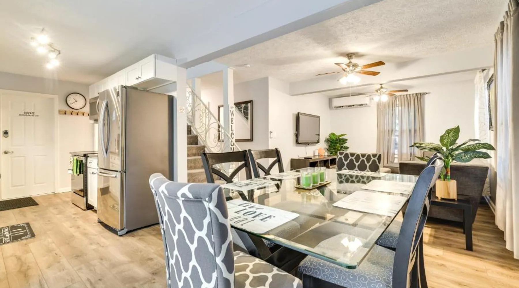 Spacious Holiday Home in Tobyhanna: 5 Mi to Tobyhanna State Park Home with Game Room! offers a spacious setting in Tobyhanna, United States. The property features four bedrooms and two bathrooms, ensuring ample space for all guests. Outdoor Pool and Free WiFi: Guests can enjoy an outdoor swimming pool and free WiFi throughout the holiday home. The property is highly rated for its excellent facilities and comfortable accommodations. Modern Amenities: The home includes air-conditioning, a fully equipped kitchen, and a living room. Additional amenities include a work desk, TV, and private entrance, providing a convenient and relaxing stay. Nearby Attractions: Located 39 mi from Wilkes-Barre/Scranton International Airport, the property is close to Delaware Water Gap National Recreation Area (25 mi), Kalahari Waterpark (9.3 mi), and Great Wolf Lodge Pocono Mountains (12 mi). Boasting a private entrance, this air-conditioned holiday home comes with 1 living room, 4 separate bedrooms and 2 bathrooms with a bath and a hairdryer. The well-equipped kitchen has a stovetop, a refrigerator, a dishwasher and kitchenware. The spacious holiday home features a coffee machine, a wardrobe, a game console, video games, as well as a flat-screen TV. The unit has 5 beds.