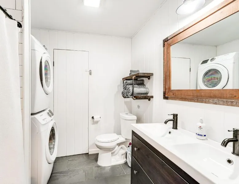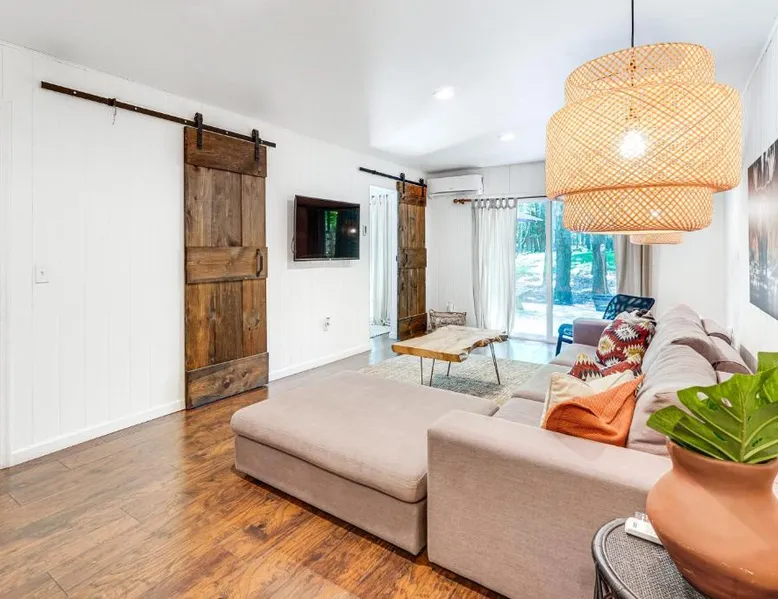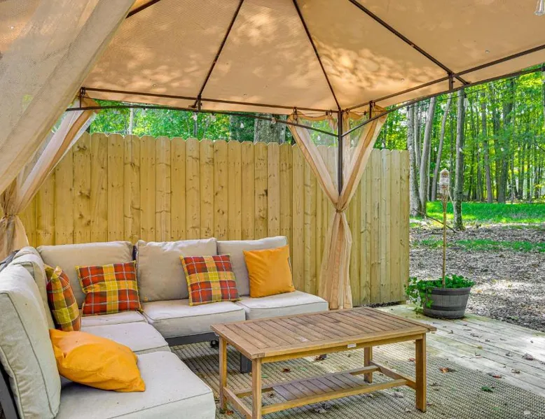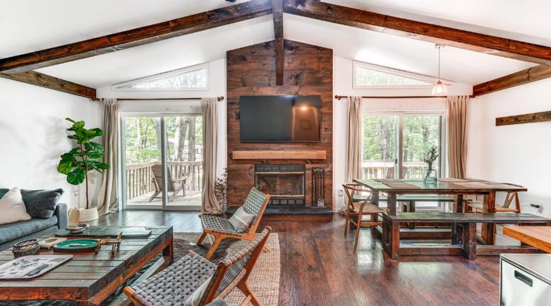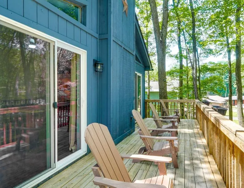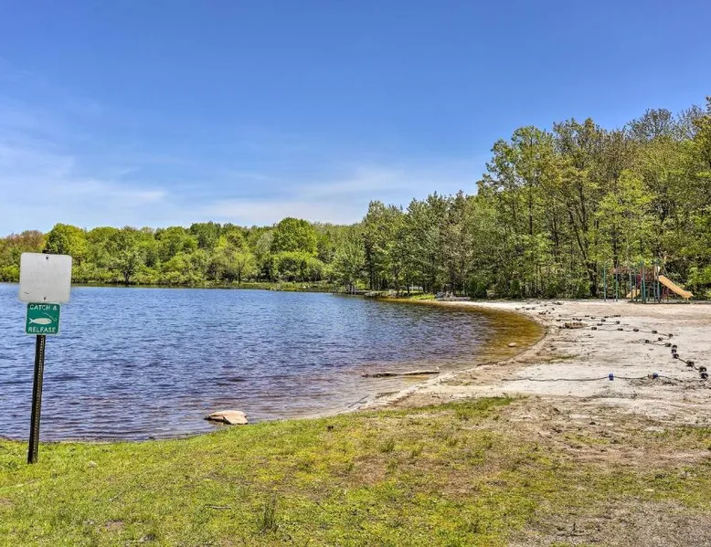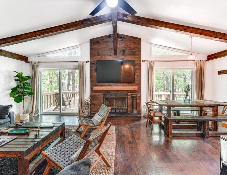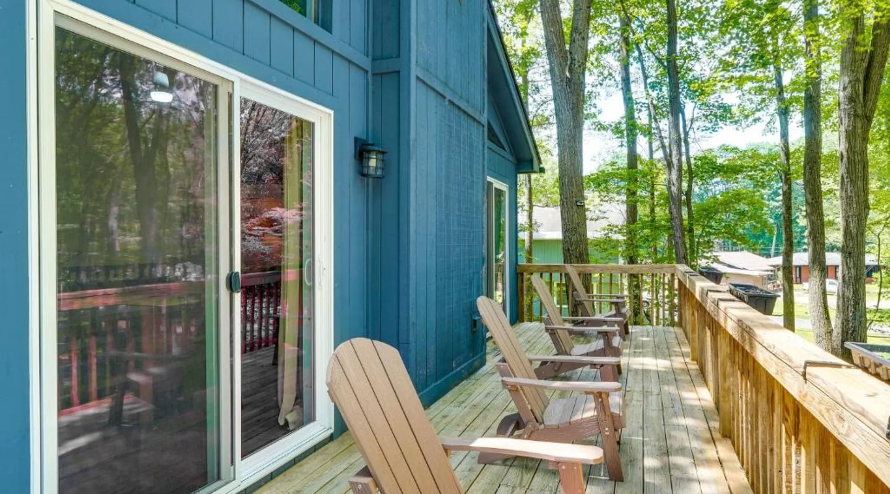 Spacious Accommodations: The Private Hot Tub Tree-Lined Poconos Home! in Pocono Summit offers three bedrooms and two bathrooms. The living room features a fireplace and a balcony with a view. Modern Amenities: Guests enjoy free WiFi, air-conditioning, and a fully equipped kitchen with a dishwasher and microwave. Additional amenities include a washing machine, hot tub, games room, and private entrance. Local Attractions: Located 40 mi from Wilkes-Barre/Scranton International Airport, the property is near Delaware Water Gap National Recreation Area (23 mi) and Kalahari Waterpark (2.2 mi). Other attractions include Great Wolf Lodge Pocono Mountains (7.5 mi) and Pocono Raceway (12 mi). Guests will have a special experience as this holiday home offers a hot tub and a fireplace. Featuring a private entrance, this air-conditioned holiday home consists of 4 living rooms, 3 separate bedrooms and 2 bathrooms with a bath and a shower. In the kitchen, guests will find a stovetop, a refrigerator, a dishwasher and kitchenware. The spacious holiday home provides a washing machine, a coffee machine, tumble dryer, a barbecue and a flat-screen TV. The unit offers 6 beds.