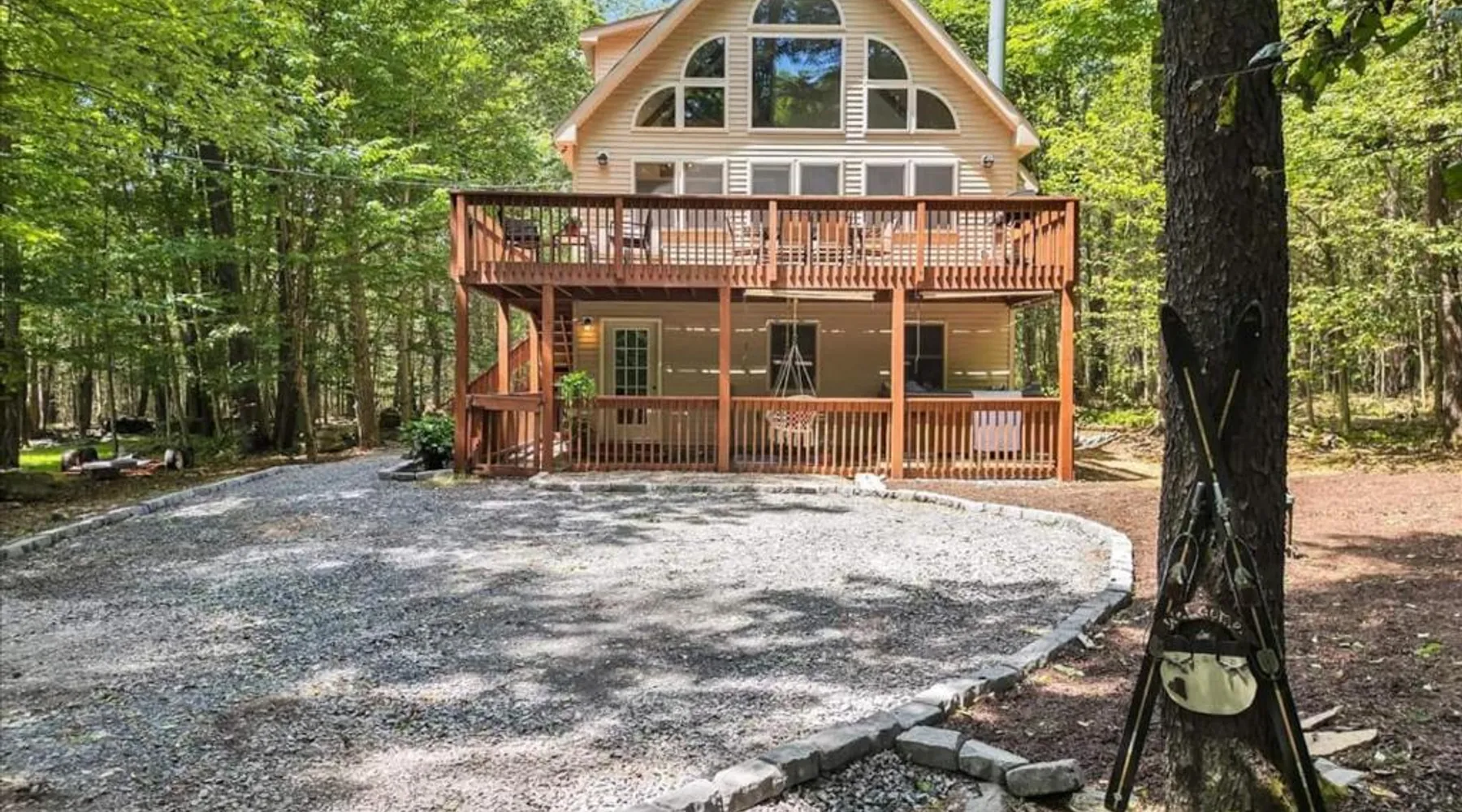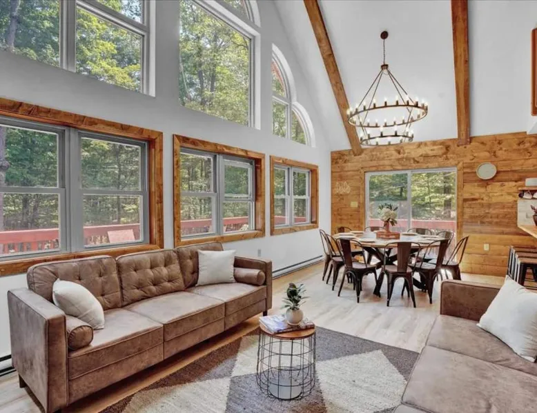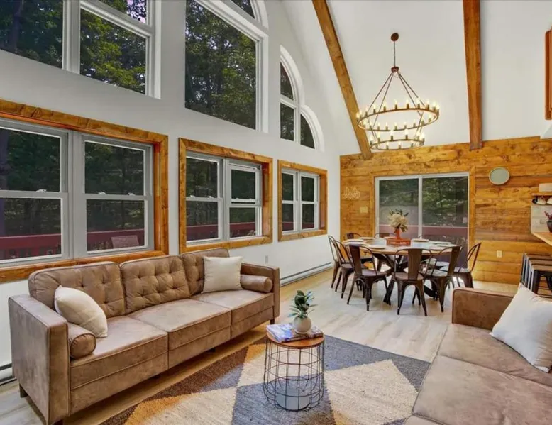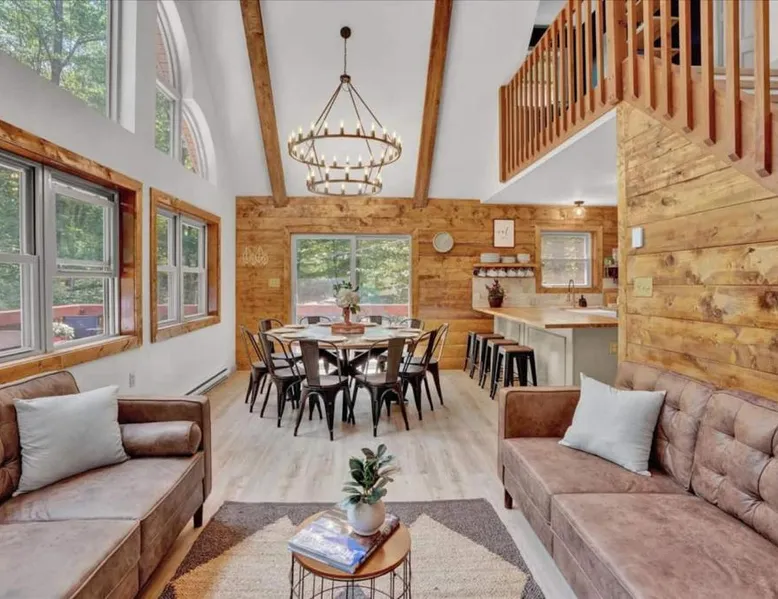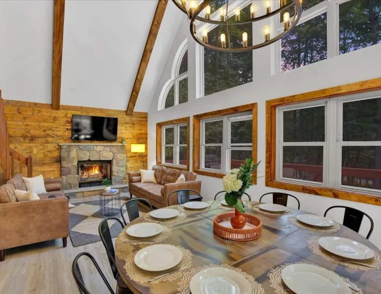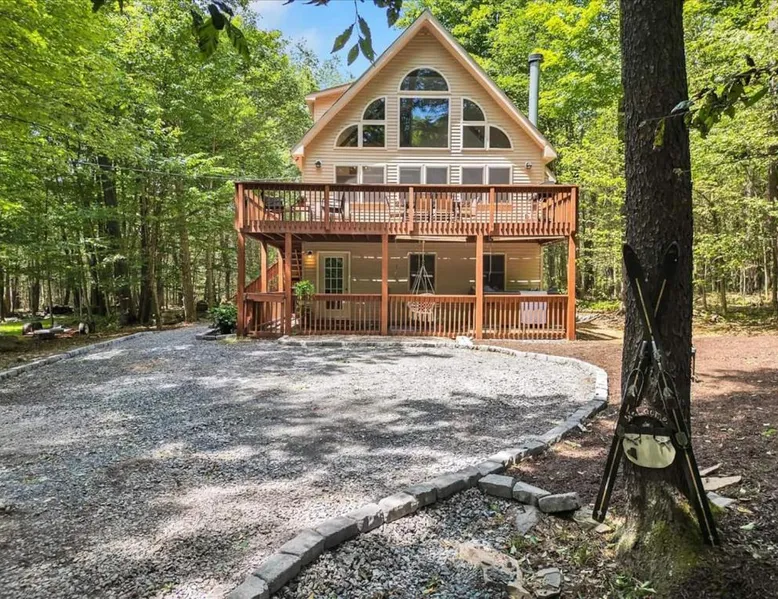 Spacious Accommodations: Chalet Lake in Gouldsboro offers four bedrooms and three bathrooms. The living room features a fireplace and sofa bed, ensuring comfort for all guests. Outdoor Amenities: Guests can enjoy a seasonal outdoor swimming pool, a beautiful garden, and a hot tub. Free WiFi is available throughout the property. Convenient Facilities: The chalet includes a fully equipped kitchen, washing machine, and private pool. Additional amenities include a balcony, patio, and barbecue area. Local Attractions: Located 30 mi from Wilkes-Barre/Scranton International Airport, the property is near Kalahari Waterpark (14 mi), Jack Frost Mountain Resort (17 mi), and Montage Mountain Ski Resort (19 mi). This luxurious chalet offers a private pool, a hot tub and a fireplace. The chalet features tumble dryer and heating, as well as a shared bathroom featuring a hairdryer. Guests will find a stovetop, a refrigerator, an oven and a microwave in the fully equipped kitchen. The chalet also offers a barbecue. The spacious air-conditioned chalet provides a flat-screen TV, a washing machine, a tea and coffee maker and a wardrobe. The unit offers 7 beds.