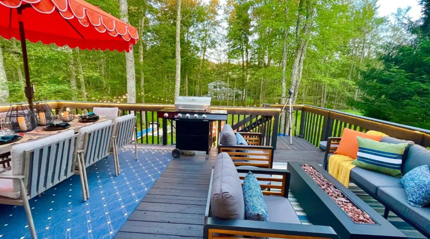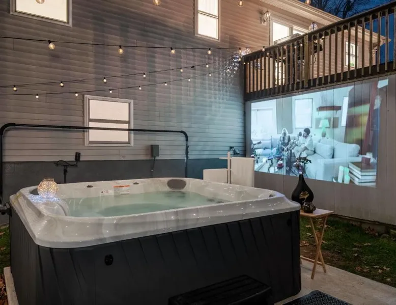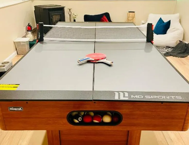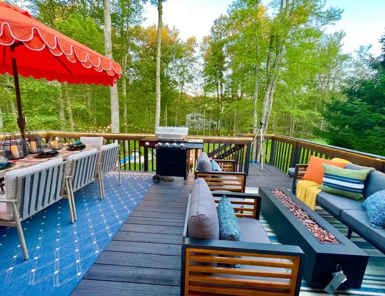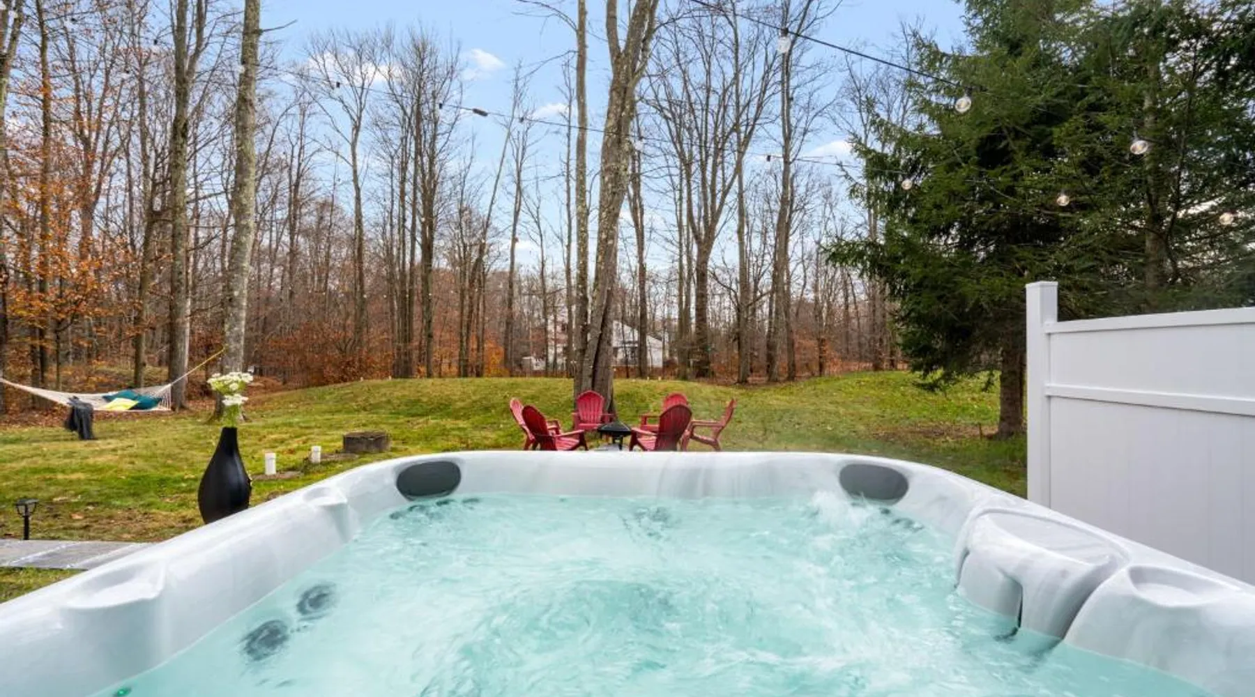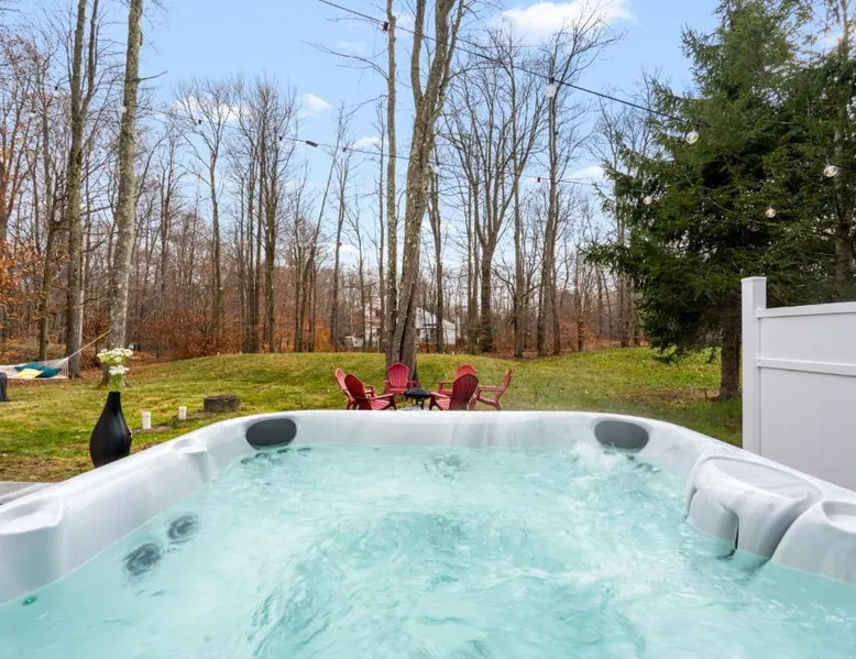 Spacious Accommodations: Enchanted Villa in Pocono Summit offers a spacious villa with five bedrooms and three bathrooms. The property includes a living room, private check-in and check-out services, and a lounge. Exceptional Facilities: Guests can enjoy a sauna, sun terrace, garden, bar, and free WiFi. Additional amenities include an outdoor fireplace, hot tub, casino, and waterpark. Convenient Location: Located 42 mi from Wilkes-Barre/Scranton International Airport, the villa is near Delaware Water Gap National Recreation Area (24 mi), Kalahari Waterpark (4.3 mi), and Great Wolf Lodge Pocono Mountains (11 mi). This villa's standout features are the hot tub and fireplace. Boasting a private entrance, this air-conditioned villa includes 1 living room, 5 separate bedrooms and 3 bathrooms with a bath and a shower. Guests will find a stovetop, a refrigerator, a dishwasher and kitchenware in the well-fitted kitchen. The villa also features a barbecue. The spacious villa offers a washing machine, soundproof walls, a tea and coffee maker, a flat-screen TV with streaming services, as well as garden views. The unit has 7 beds.