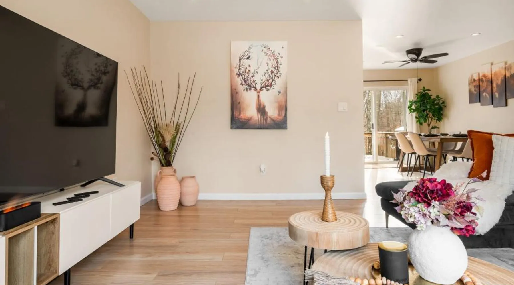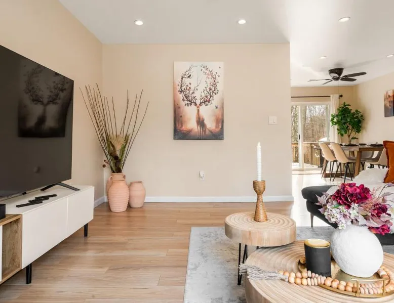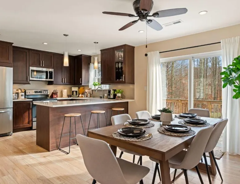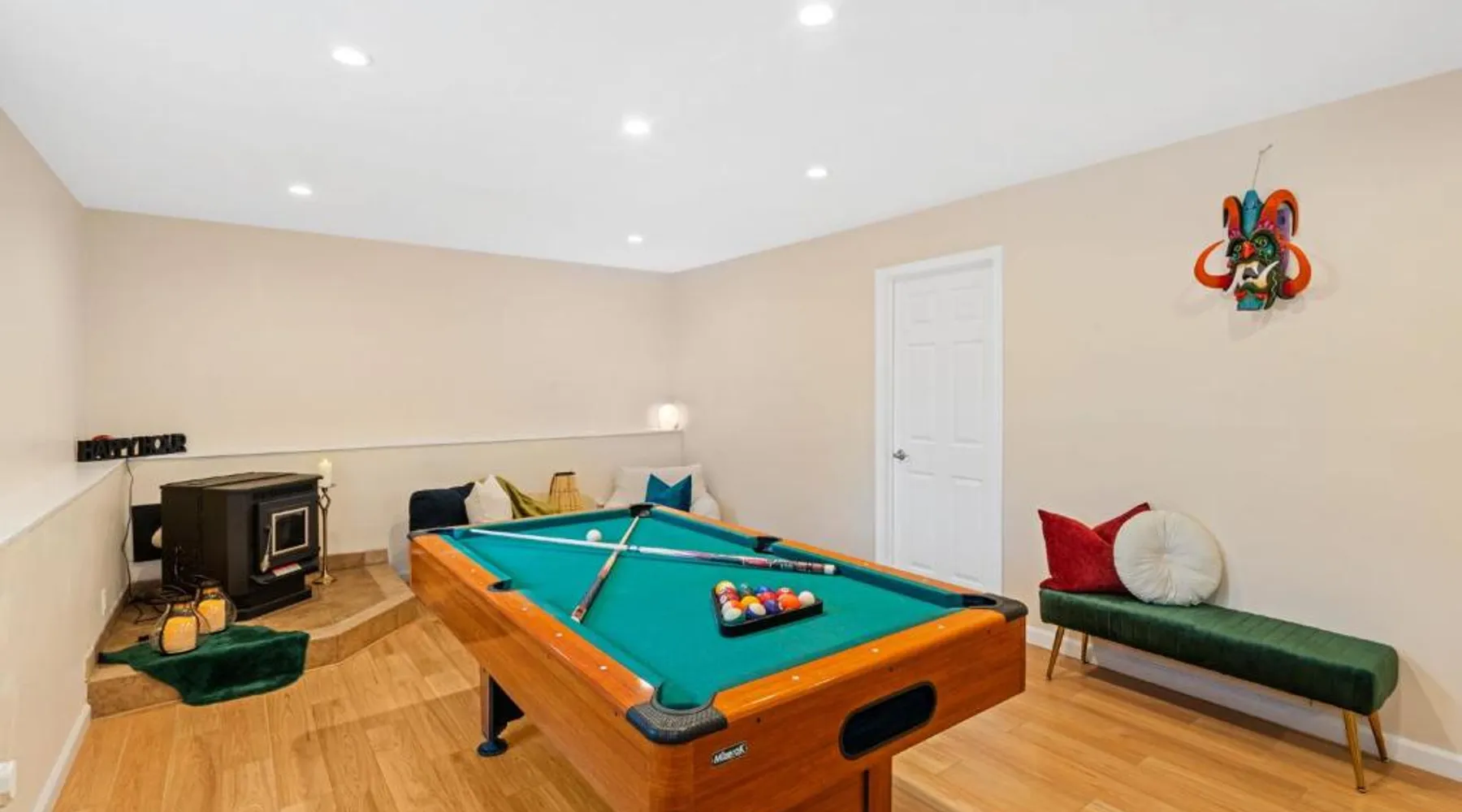 Spacious Accommodations: Enchanted Villa in Pocono Summit offers a spacious villa with five bedrooms and three bathrooms. The property includes a living room, private check-in and check-out services, and a lounge. Exceptional Facilities: Guests can enjoy a sauna, sun terrace, garden, bar, and free WiFi. Additional amenities include an outdoor fireplace, hot tub, casino, and waterpark. Convenient Location: Located 42 mi from Wilkes-Barre/Scranton International Airport, the villa is near Delaware Water Gap National Recreation Area (24 mi), Kalahari Waterpark (4.3 mi), and Great Wolf Lodge Pocono Mountains (11 mi). This villa's standout features are the hot tub and fireplace. Boasting a private entrance, this air-conditioned villa includes 1 living room, 5 separate bedrooms and 3 bathrooms with a bath and a shower. Guests will find a stovetop, a refrigerator, a dishwasher and kitchenware in the well-fitted kitchen. The villa also features a barbecue. The spacious villa offers a washing machine, soundproof walls, a tea and coffee maker, a flat-screen TV with streaming services, as well as garden views. The unit has 7 beds.