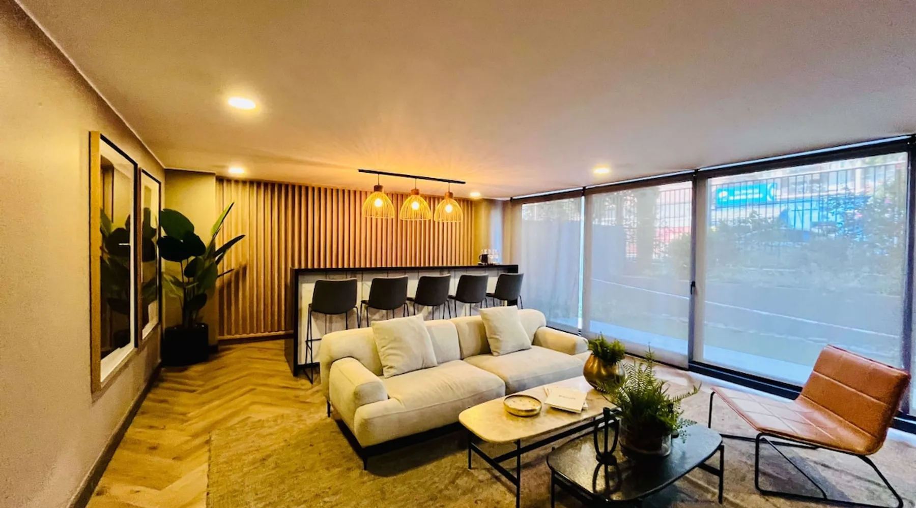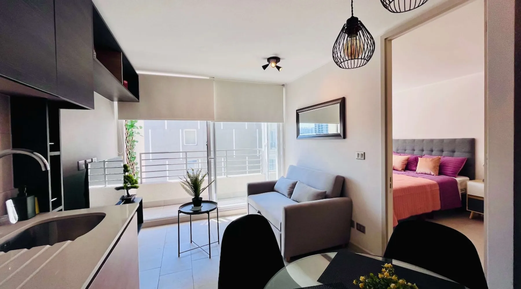 🏙️ Visit our modern & functional apartment, located on the border of Ñuñoa and Santiago Centro, steps from Irarrázaval Metro Station, where peace meets urban convenience. 🛄 Perfect for travelers, couples, and professionals seeking comfort, premium amenities, and city connectivity! The space 🟢 1 Double bed + 1 Sofa bed 🟢 Bed linens & towels included 🟢 Fully equipped bathroom 🟢 Fully equipped kitchen 🟢 Smart TV 🟢 High speed WiFi 🟢 Washer/Dryer Machine inside the apartment 🟢 Coworking space 🟢 Panoramic rooftop BBQ area 🟢 Game/lounge room Guest access 🏡Self check-in 🔑 smart lock with 24/7 access. Other things to note 🚫 No pets, parties, or events allowed. 🐾 Check our pet friendly alternatives on BUHO Property. 📝 Mandatory Online Registration Form ♻️We use eco-friendly, biodegradable cleaning products 🧡 We deeply respect our guests and community 🤗 Thank you for treating our space like your own! 📅 Book now and experience premium style and comfort!