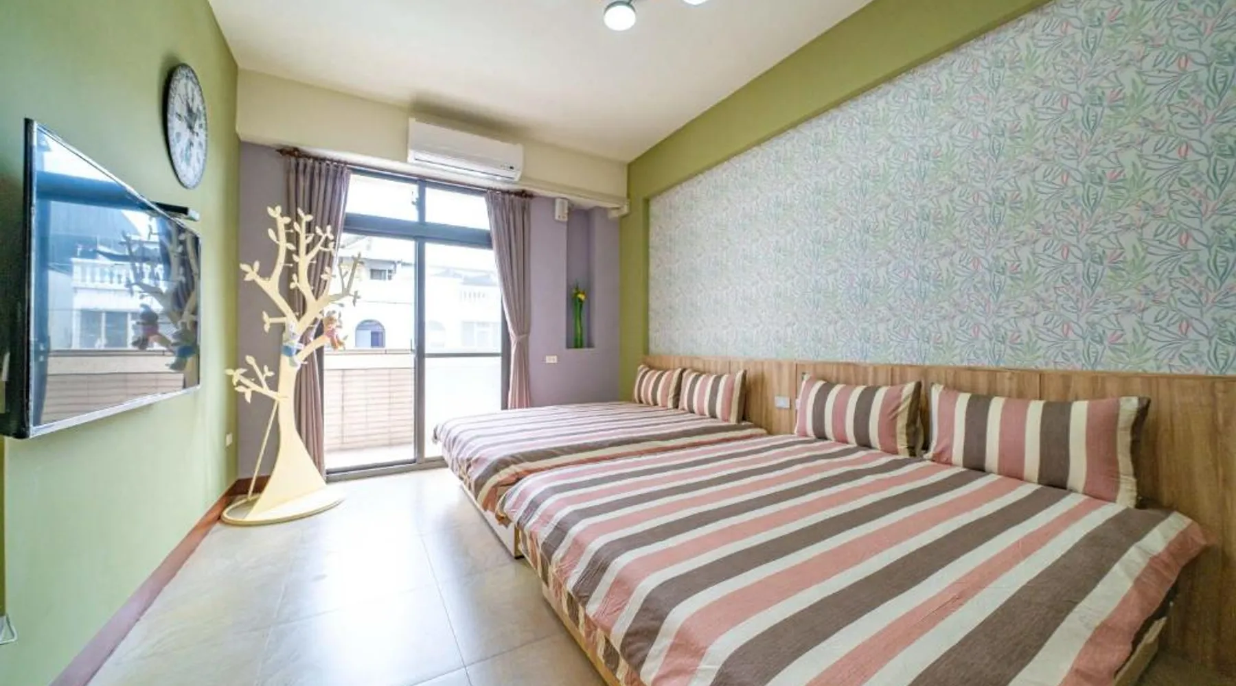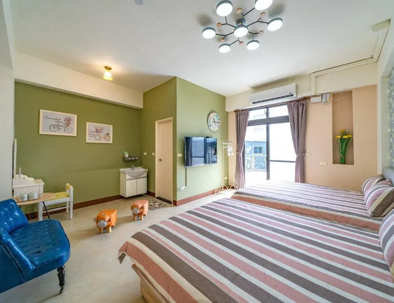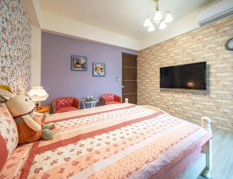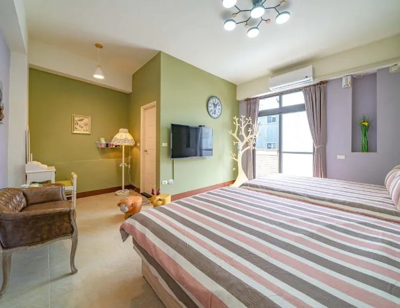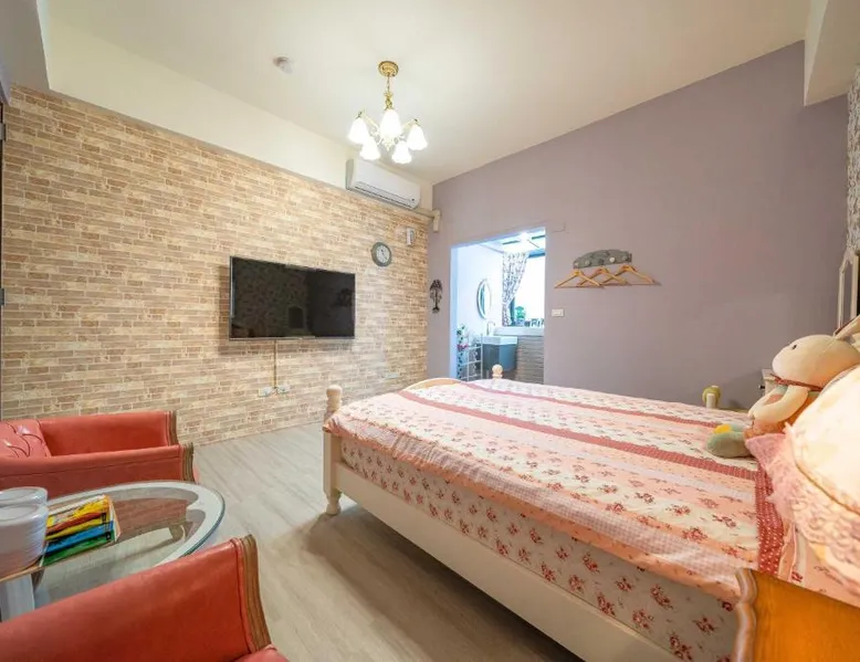 Comfortable Accommodations: 幸福小城民宿-包棟依訂房人數跟房價提供房間數量 in Hualien offers family rooms with private bathrooms, air-conditioning, and free WiFi. Each room includes a terrace or balcony, ensuring a pleasant stay. Convenient Facilities: Guests can enjoy a sun terrace, lounge, shared kitchen, and children's playground. Additional services include concierge, daily housekeeping, laundry, and free on-site private parking. Prime Location: Located 4.3 mi from Hualien Airport, the homestay is near Nanbin Park Beach (18-minute walk), Hualien City God Temple (less than 0.6 mi), and Nanbin Park (15-minute walk). Hiking trails are available in the surroundings. This holiday home consists of 1 living room, 3 separate bedrooms and 3 bathrooms with a shower and free toiletries. The holiday home's kitchen, which features a refrigerator and kitchenware, is available for cooking and storing food. The air-conditioned holiday home provides a flat-screen TV with cable channels, a washing machine, soundproof walls, a seating area as well as city views. The unit offers 6 beds.
