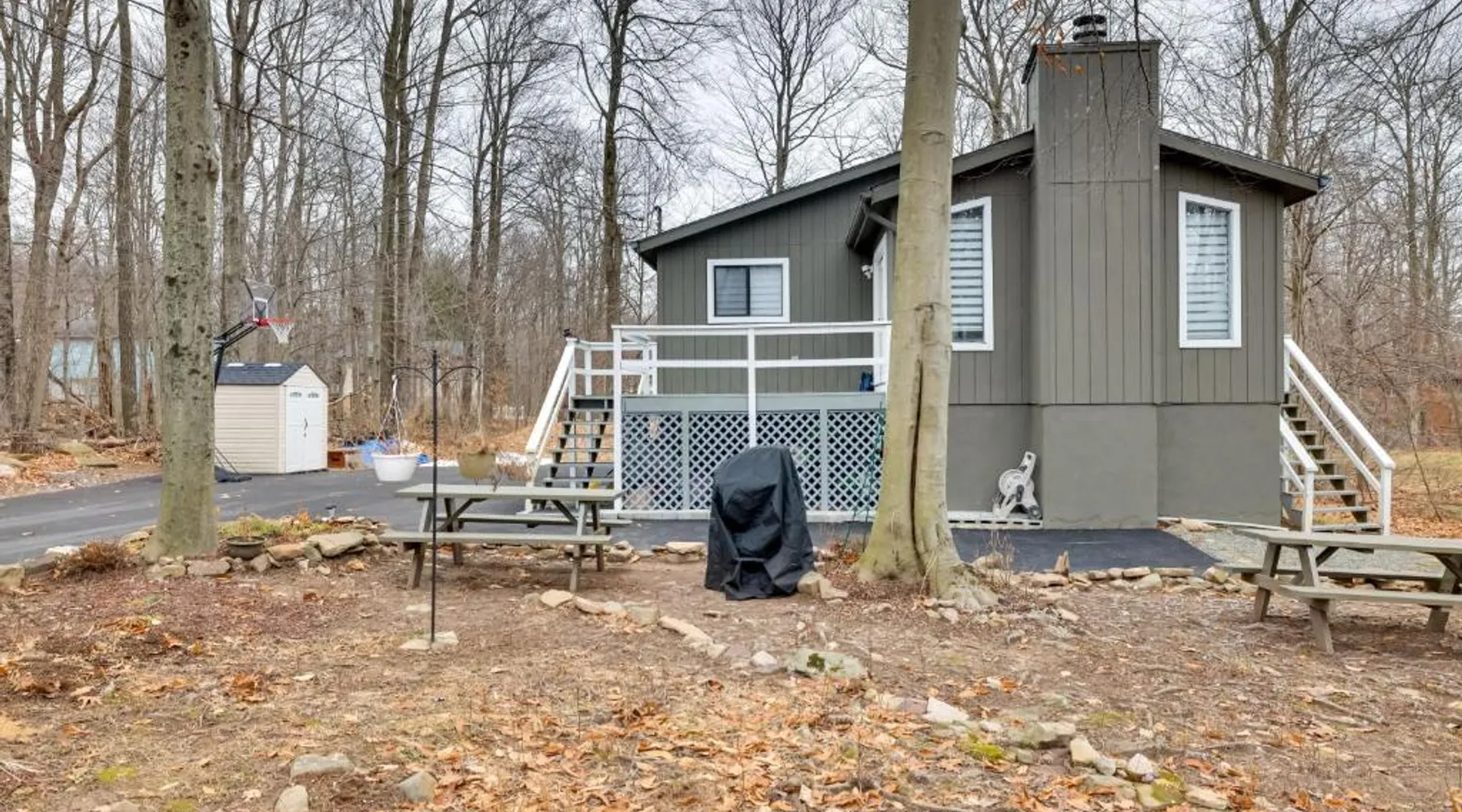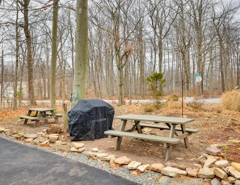 Spacious Accommodations: 8 Mi to Tobyhanna State Park Poconos Home! in Mushroom Farms offers a spacious holiday home with five bedrooms and two bathrooms. The living room provides ample space for relaxation. Modern Amenities: Guests enjoy free WiFi, a fully equipped kitchen, washing machine, and a balcony. Additional amenities include a fireplace, barbecue, and outdoor dining area. Convenient Location: Located 39 mi from Wilkes-Barre/Scranton International Airport, the property is near attractions such as Delaware Water Gap National Recreation Area (22 mi) and Kalahari Waterpark (6.2 mi). Highly rated by guests. Guests will have a special experience as the holiday home features a fireplace. This spacious holiday home consists of 1 living room, 5 separate bedrooms and 2 bathrooms with a bath and free toiletries. Guests will find a stovetop, a refrigerator, kitchenware and an oven in the kitchen. The holiday home also offers a barbecue. Featuring a patio, this holiday home also provides a washing machine, a private entrance and a flat-screen TV. The unit offers 6 beds.