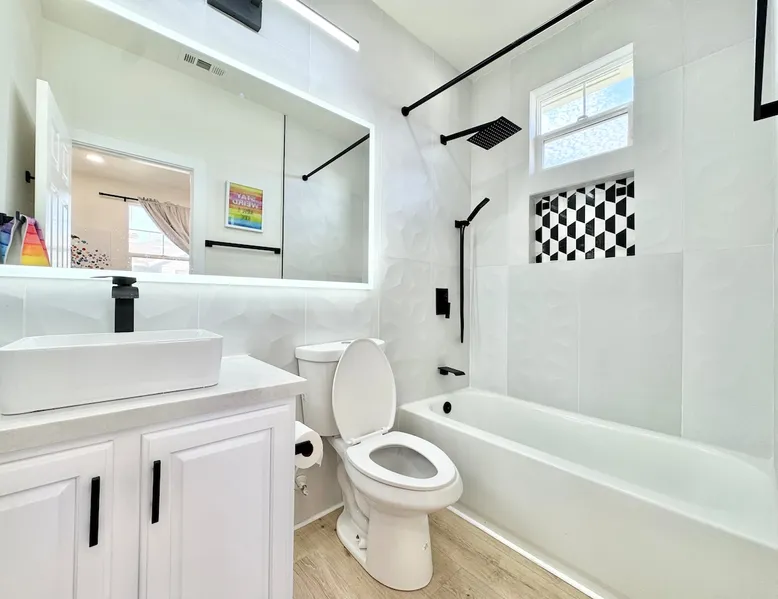 Modern 3BR Home | 3.5Private Baths | Yard | Garage | Resort Community. Welcome to our newly renovated (2024) modern home • 3 Bedrooms, Each with a Private Bath • Sleeping Arrangements: 1 King, 2 Queens, 1 Sofa Bed (Den w/ Privacy Curtain) • Private Yard+Garage theater (Easy Street Parking) • No Shoes Indoors to keep floors clean • Family-Friendly: Kids’ toys available upon request • Community: 10 pools, 20 parks • Alkaline water system in kitchen ! Let us know if you have any special requests The space 1. Location: • Ladera Ranch – quiet, family-friendly community. Please respect the neighbors 2. Community Amenities: • Parks, pools, and various amenities • Map provided at the house 3. Garage Entertainment: • The house has No TV; but has a large garage projector (built in YouTube, Netflix app, easy use remote) • Massage chair for relaxation 4. House Layout: • First Floor: • 1st Room with shower and bathroom • Laundry room (Just provided the Iron after a guest left us 2 star review) • Second Floor: • Two living rooms (one with a private curtain and sofa bed) • Kitchen with alkaline water, coffee, tea, and full kitchenware. ( Just provided a toaster after the guest left us a 2 star review ) • Third Floor: • Master bedroom with en-suite bathroom • 2nd bedroom with its own bathroom with toddler toys and books (please return toys to boxes after use) Guest access Everywhere in the house, but the first floor closet and the second floor closet. The doors are lock for cleaning supplies.