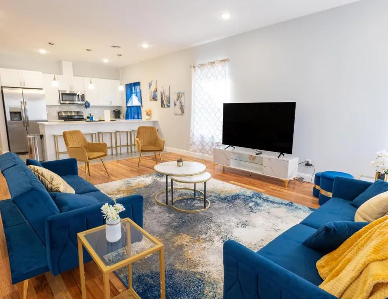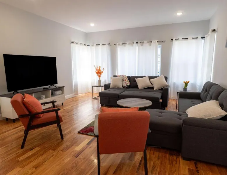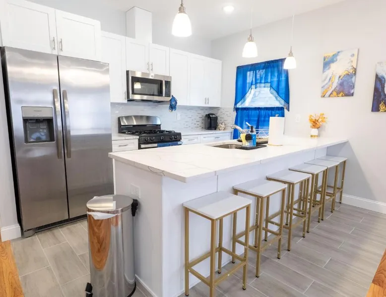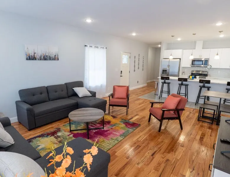 Modern Comforts: 4 New Apts in Newark offers recently renovated apartments with free WiFi, air-conditioning, and private bathrooms. Each unit includes a kitchenette, washing machine, and dishwasher for added convenience. Convenient Facilities: Guests enjoy free WiFi, private check-in and check-out services, and an outdoor seating area. Family rooms and free parking are available, ensuring a comfortable stay for all visitors. Prime Location: Located 6.2 mi from Newark Liberty International Airport, the property is near attractions such as New Jersey Performing Arts Center (2.5 mi) and Prudential Center (3.1 mi). Highly rated by guests, the apartment provides easy access to key landmarks. Featuring a private entrance, this air-conditioned apartment consists of 1 living room, 3 separate bedrooms and 2 bathrooms with a walk-in shower and a bath. Guests can make meals in the kitchen that is equipped with a stovetop, a refrigerator, a dishwasher and kitchenware. The spacious apartment provides a washing machine, a tea and coffee maker, a seating area, a flat-screen TV, as well as a quiet street view. The unit offers 5 beds.