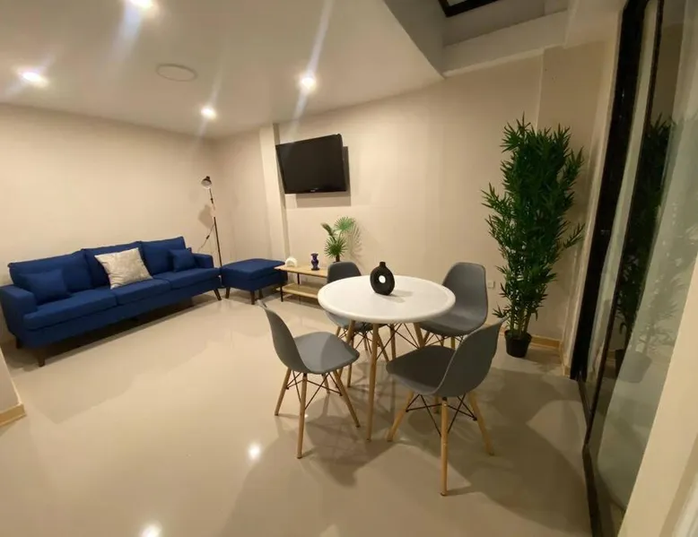 Spacious Accommodations: Moderno Apartamento Centro Tacna in Tacna offers a spacious apartment with two bedrooms and one bathroom. The property features a sun terrace and free WiFi, ensuring a comfortable stay. Modern Amenities: Guests can enjoy a kitchenette, balcony, washing machine, patio, and a work desk. Additional amenities include a refrigerator, microwave, TV, and a private entrance. Convenient Location: Located 3.7 mi from Coronel FAP Carlos Ciriani Santa Rosa International Airport, the apartment is less than 0.6 mi from Jorge Basadre Stadium. Paso Chacalluta is 24 mi away. Guest Services: Private and express check-in and check-out services are available. Free private parking is provided, and reception staff speak English and Spanish. The apartment's kitchen, which has a refrigerator and a microwave, is available for cooking and storing food. The spacious apartment features a washing machine, a private entrance and a patio. The unit has 3 beds.