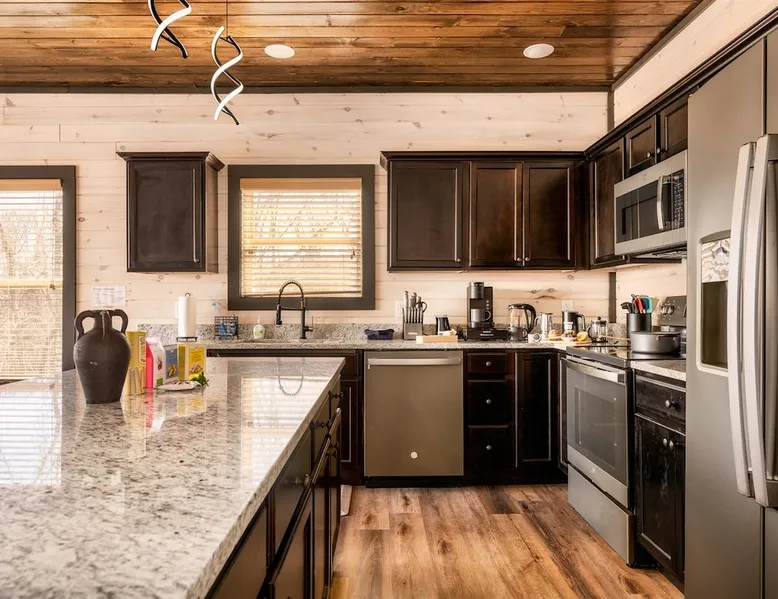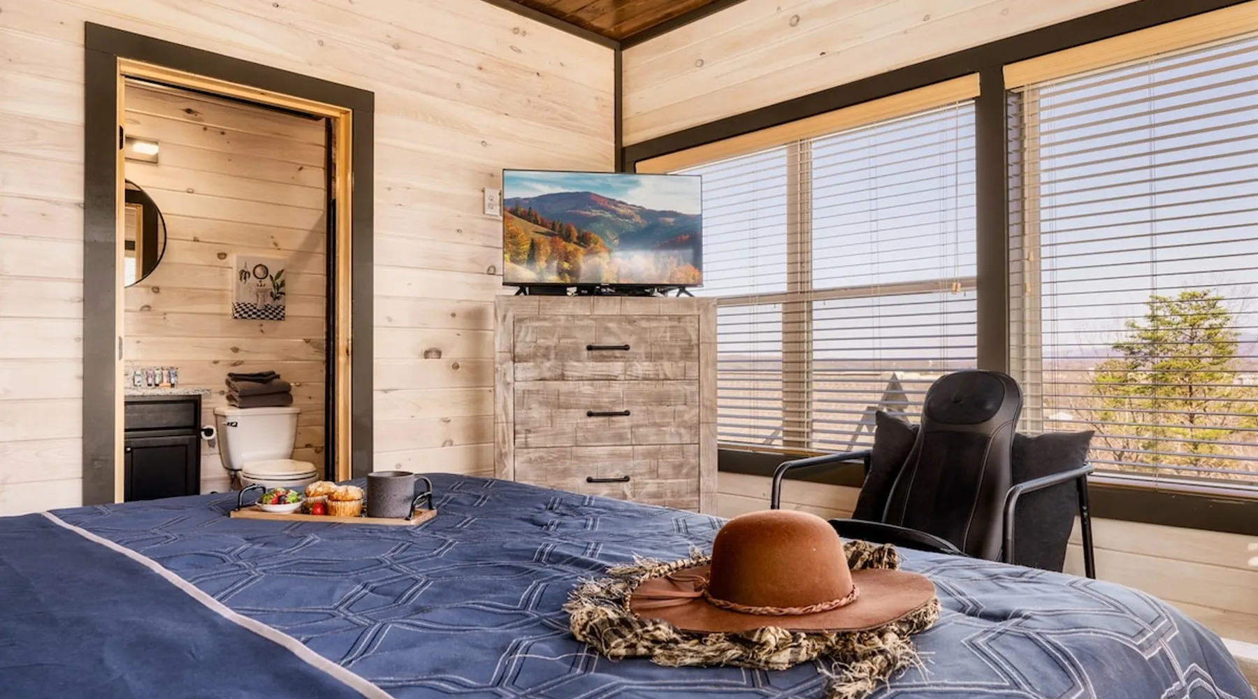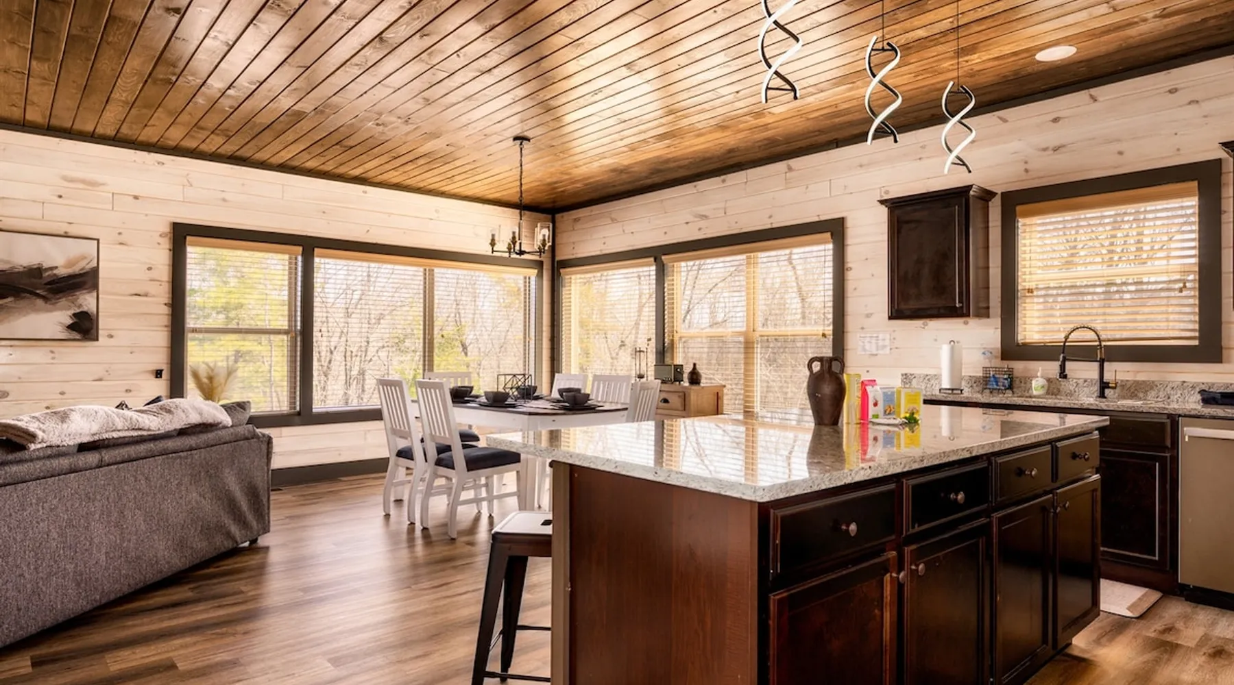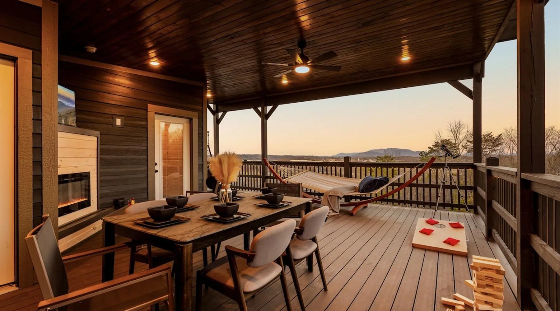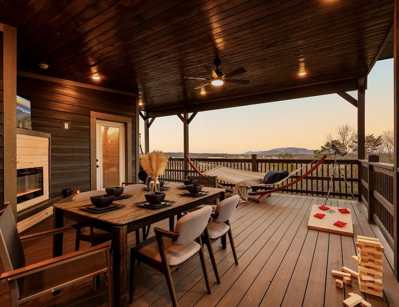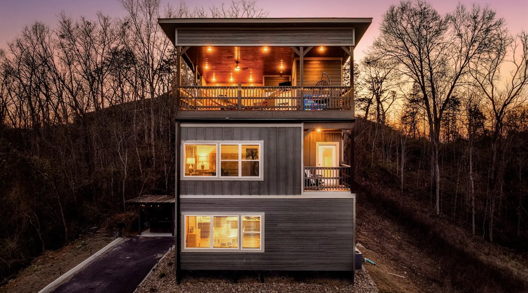 ✔️Built 2024 ✔️2BR/2.5B ✔️Highest House In Dev’t ✔️11mins - Pigeon Forge ✔️New Listing ✔️21mins - Gatlinburg ✔️3F Open Skydeck ✔️Free Private Parking ✔️Fast Free WIFI ✔️Hot Tub w/ Pergola ✔️1 King Bed, 1 Full Bunk ✔️1 Queen Sleeper Sofa ✔️Level 2 EV Charger ✔️Electric Fireplaces ✔️Quiet Community ✔️Brand New Appliances ✔️Picnic Style Grill The space Enjoy a luxurious getaway in our brand new, three-story cabin nestled in a quiet community just minutes from Pigeon Forge and Gatlinburg. This spacious 1457 sq ft home offers stunning mountain views, modern amenities, and comfortable accommodations for up to 7 guests. *Key Features: - Built in 2024 - 2 bedrooms, 2.5 bathrooms - Private hot tub under a pergola with string lights - Open-air skydeck with hammock and telescope - Level 2 EV charger - Free private parking (up to 3 vehicles) - Fast, free WiFi - Electric fireplaces - Brand new appliances and furniture *Sleeping Arrangements: - 1 King bed - 1 Full bunk bed - 1 Queen sleeper sofa *Amenities: - Fully equipped kitchen with stainless steel appliances and granite countertops - Washer and dryer - 3 Roku TVs + Xumo TV on the skydeck - Central AC/heating - Picnic-style grill - Outdoor games Guest access You'll have access to the entire cabin (except for an owner's closet) with a personalized door code provided close to check-In. Other things to note *Parking & Access: - Paved road just before the driveway is slightly steep, but driveway itself is flat. *Housekeeping & Supplies: - Starter toiletries and common household consumables provided. You may need to get more if you run out. - Hot tub is drained, cleaned, refilled and treated every check out and runs continuously. Please keep cover on when not in use. Hot tub only for 21 years old and above. *Wildlife & Pest Control: - Property is treated monthly for pests, but due to mountain location, some bugs may still enter. Expect more bugs outdoors during spring and summer. - Please respect the wildlife and do not approach or feed them. Keep the bear-proof trash can securely latched at all times. *Other: - Cabin is on city water and sewage. Please flush only toilet paper. - Outdoor floodlight camera is located along the driveway. - National Park Service parking pass is required for all vehicles entering the Smokies (available on their website). - Early check-in/late check-out may be available for an additional $50, but cannot be guaranteed.