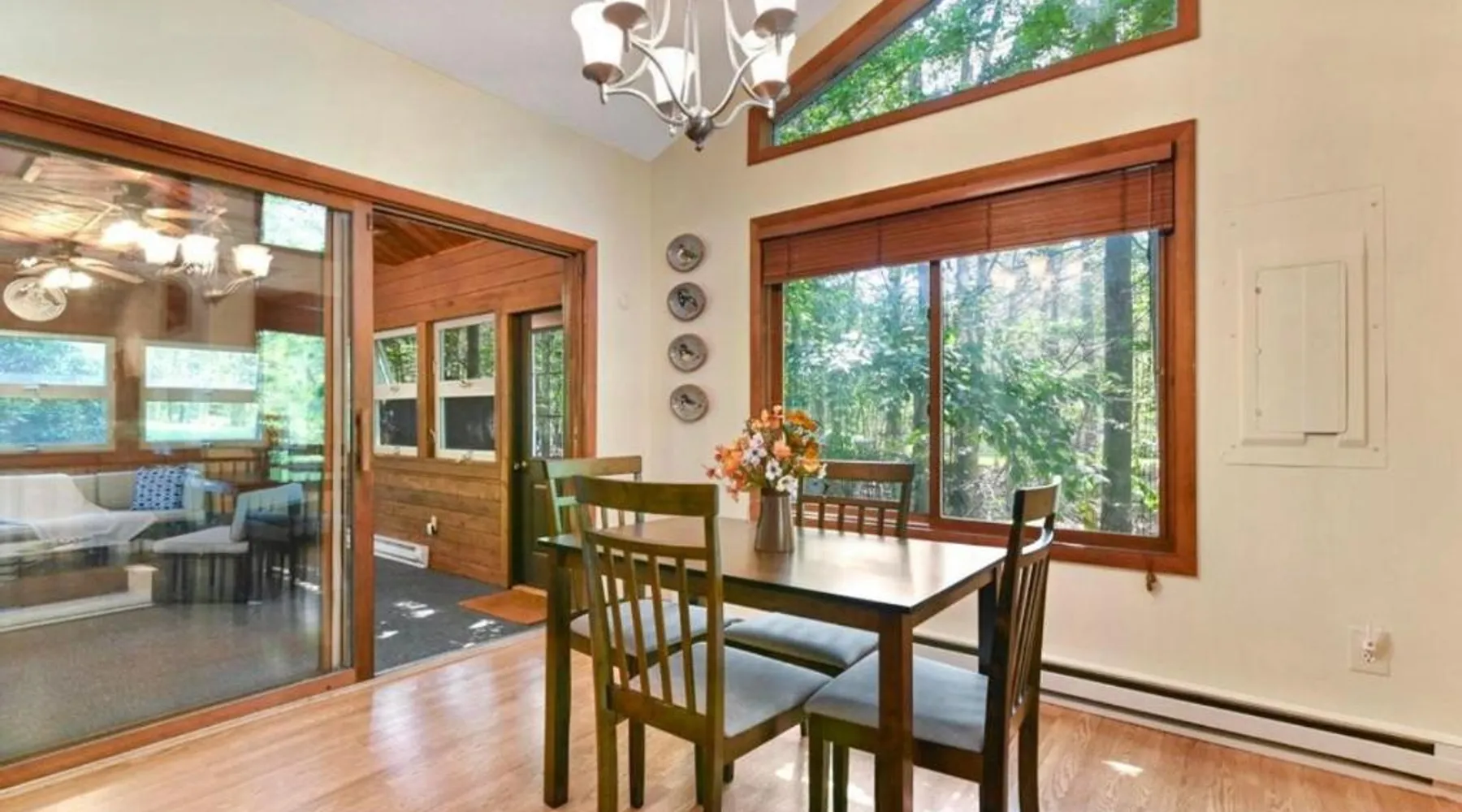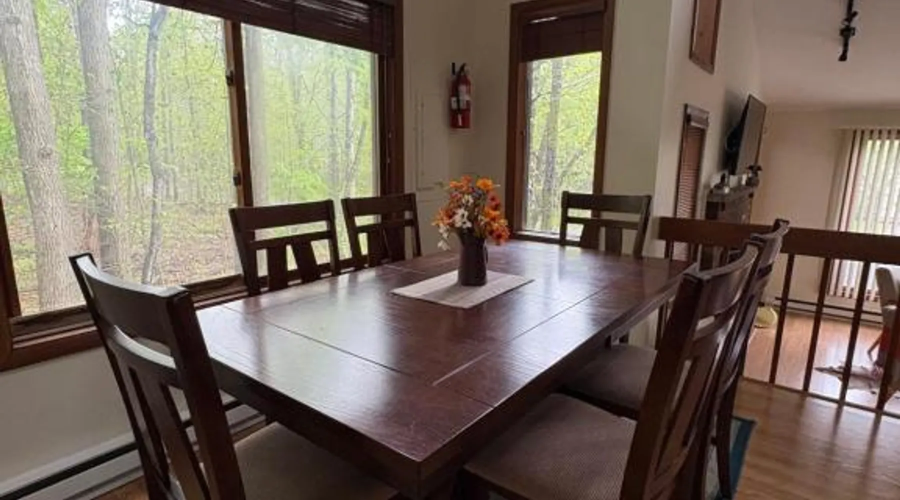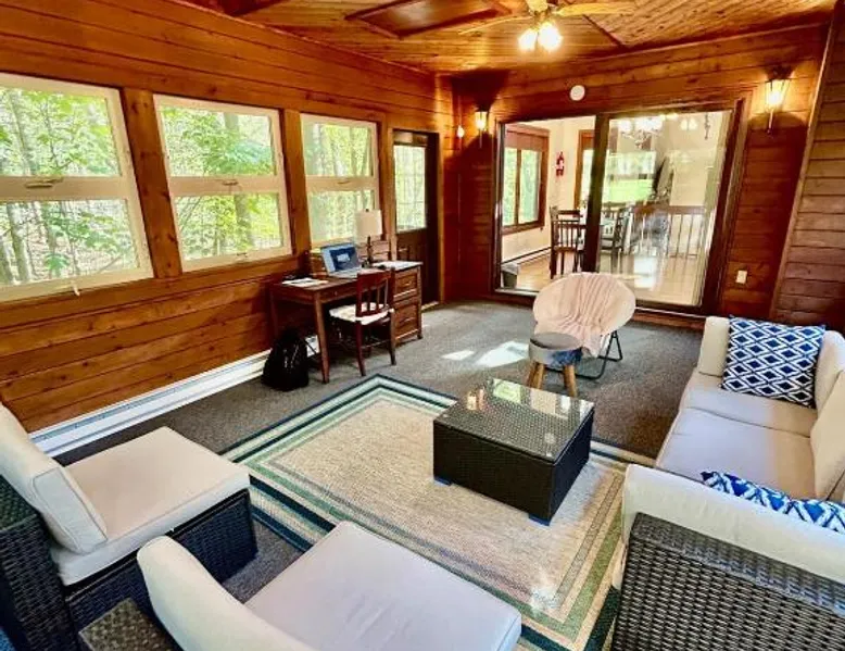 Comfortable Accommodations: Peaceful Retreat in Pocono Country Place offers a holiday home with four bedrooms and two bathrooms. The property features a spacious garden, terrace, and free WiFi, ensuring a relaxing stay. Modern Amenities: Guests can enjoy a fully equipped kitchenette, hot tub, and spa bath. Additional amenities include a washing machine, fireplace, and work desk, catering to all comfort needs. Convenient Location: Located 37 mi from Wilkes-Barre/Scranton International Airport, the holiday home is close to attractions such as Kalahari Waterpark (7.5 mi) and Delaware Water Gap National Recreation Area (24 mi). Free on-site private parking is available. This holiday home features a hot tub and a fireplace. Boasting a private entrance, this holiday home also features 4 bedrooms, a seating area and 2 bathrooms with a bath and a shower. Meals can be prepared in the well-fitted kitchen, which has a stovetop, a refrigerator, a dishwasher and kitchenware. This holiday home has a washing machine, a tea and coffee maker, a flat-screen TV and a terrace. The unit has 5 beds.