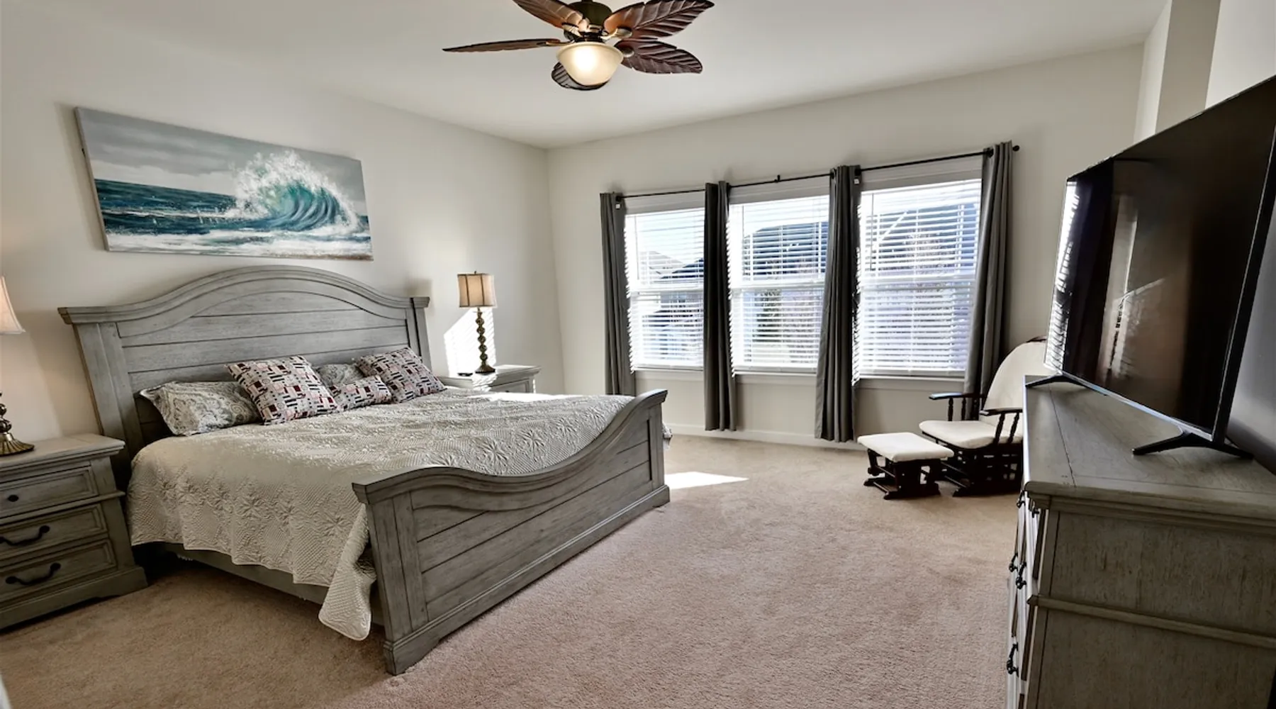 5 BR, 4 Baths, Luxurious Bethany Beach House at Ocean View Beach Club The space Welcome to resort-style living at Ocean View Beach Club, just a mile from the picturesque Bethany Beach Boardwalk. Step into luxury as you explore this expansive 5-bedroom, 4- full bath beach vacation house just a short walk to the Ocean View Beach Club Clubhouse and the Bethany Beach Boardwalk. The open floor plan immediately captivates, accentuated by the grandeur of 10' ceilings and open great-room (Kitchen, Dining Area and Family Room). The kitchen showcases elegance with granite countertops and a backsplash enveloping the stunning stainless-steel appliances, including a wall oven, stove and microwave. Ample cabinetry, a large pantry, and a distinctive center island define the kitchen space. This home features a primary/owners suite on the 2nd floor which connects to a primary bath featuring double vanities, a walk-in shower, and an expansive walk-in closet. TVs in every bedroom except downstairs bedroom. The 5th bedroom is on the first floor of the home with 1 Queen bed and 1 bunk bed. The second floor unveils 4 additional bedrooms and two additional full bathrooms, complemented by a loft/media center. This sought-after community elevates your living experience with a range of amenities, including indoor and outdoor pools, sauna, steam and massage rooms, a state-of-the-art fitness center, and a spacious clubhouse. Embrace a vacation of luxury and leisure in this premier community, where the fusion of high-end features and an abundance of amenities redefine coastal living. Just one mile from the serene Bethany Beach, Ocean View Beach Club invites you to indulge in the ultimate coastal retreat. Things to know: - Streaming services are available on all TVs. - Strict: No Pets Allowed on this home - Strict: No Smoking is allowed on the premises including inside the home/porches/garage, etc. - Parking notes: Parking is available for four vehicles (two in the garage and two in the driveway). - Guest entry instructions: This rental utilizes an smart-lock, a digital lock that requires a unique code to enter. This code is reset after each guest's stay. Maximum Overnight Occupancy The Maximum Overnight Occupancy for this home is 12 people. (Max of 11 Adults) Bedroom Layout Primary (Master) Suite #1 - 1 King Bedroom #2 - 1 Queen Bedroom #3 - 1 Queen Bedroom #4 - 1 Full Bed and 1 Twin Bed Bedroom #5 - 1 Queen Bed and 1 Bunk Bed (Twin Over Twin) Linens Package Option Pillows, comforters, and mattress covers are provided in the home. However, bed sheets, pillowcases and bath towels are NOT automatically included. For your convenience, Bethany Beach Home Rentals offers an optional Home Linens Package. The Linens Package is specific to your home and will include bath towels, bed sheets, and bathmats delivered to your home prior to your arrival. The Linens Package includes the following items: 1 Deluxe Towel Set per Person based on the Property`s Maximum Overnight Occupancy Set Includes: 1-Deluxe 54x27 Bath Towel, 1-30x16 Hand Towel and 1-12x12 Washcloth 1 High Quality Deep Pocket Fitted Bed Sheet Set per Bed based on the Property`s Bed Count Set Includes: 1 high quality fitted bottom and flat top sheets. 1 pillowcase for singles, 2 pillowcases for doubles and queens, and 2 king pillowcases for king sets 1 Bathmat per Full Bathroom based on the properties Full Bathroom Count FREE Delivery and Pickup All items are professionally cleaned and shrink-wrapped. Your Linens will be neatly packaged in a canvis bag and delivered to your home prior to your arrival. You will be responsible for bagging the linens at the end of your stay and leaving them outside the residence for pick-up after your departure. Please Note: The Linens Package Option can be selected directly on reservations made through the Bethany Beach Home Rentals Website. For reservations made on the Airbnb, Vrbo, or any other Vacation Rental Website, the Linens Package Option will be emailed to you shortly after you've completed your reservation. Rental Guests can also choose to bring or rent their own linens. Parking Rental Guest shall limit vehicle parking to one (1) motor vehicle parking space (not to include a recreational or oversized vehicle) for each bedroom as shown in the property assessment records of the Town with all off street parking available to the rental property utilized first. The home has a 2-4 car driveway and a 2 car garage available for parking. In addition, there are unassigned parking spaces in the large parking lot next to the Clubhouse. "Welcome to the Ocean View Beach Club Community" Email You will receive a "Welcome to the Ocean View Beach Club Community" Email 18 Days prior to your Arrival Date. The email will contain a wealth of information about your vacation home and the Ocean View Beach Club Community. Please let us know if you have any questions once you receive the email. Cleaning Property Manager will provide professional cleaning services prior to check-in and after check-out for the Rental Guest. However, Rental Guest agrees to remove garbage and all belongings from property, clean food spills from refrigerator, counters and oven top and leave property free of clutter. Outdoor Monitoring The home may have an outdoor security camera and / or video doorbell installed. If present, these devices are strictly for outdoor security monitoring and safety purposes. Lease Agreement Please be advised that by completing a reservation with Bethany Beach Home Rentals you are agreeing to all of the Terms and Conditions in the Lease. Terms and Conditions and Cancellation Policy can also be found on our Bethany Beach Home Rentals Website.