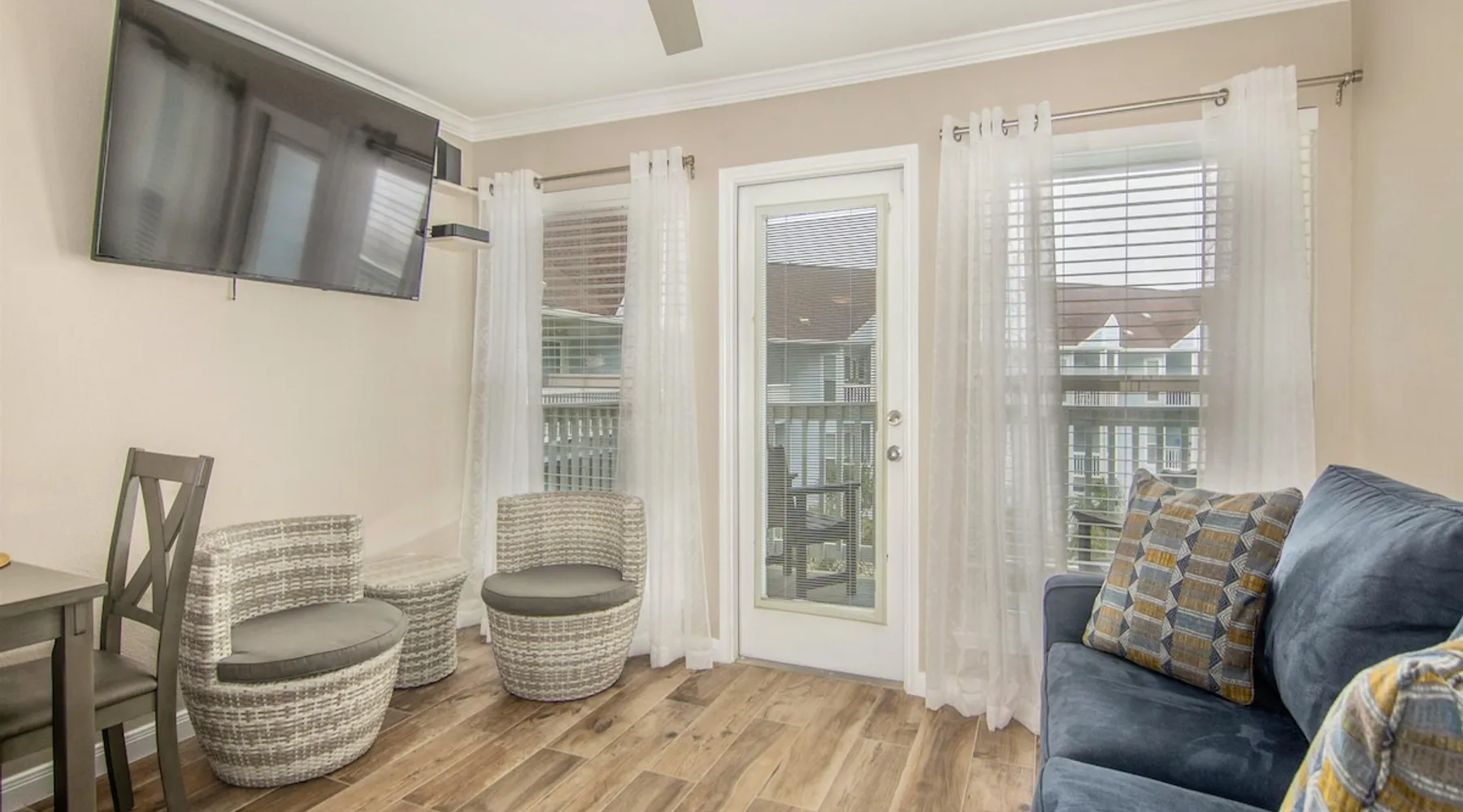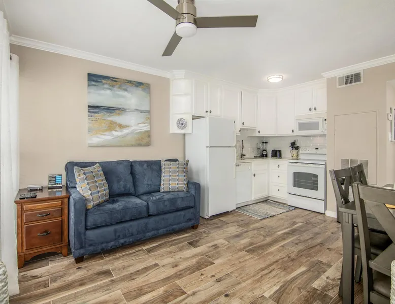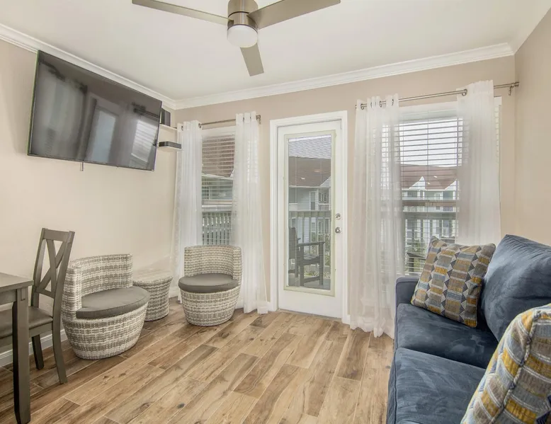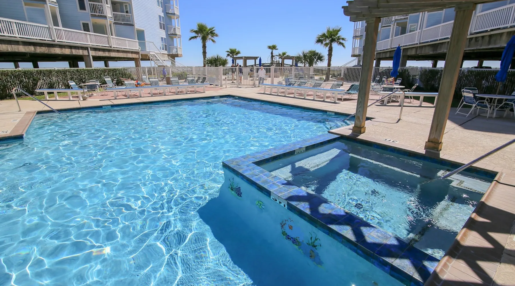 Enjoy coastal living with two private balconies offering the beautiful Gulf and pool views from this third-floor condo. With beach-inspired decor, this condo features memory foam beds, free Wi-Fi, and a 55" Smart TV for your entertainment. The open kitchen and dining area make it easy to cook and share meals with family or friends. Convenience meets comfort with an in-suite washer and dryer. Relax and unwind surrounded by stunning beach scenery. No smoking and no pets allowed. The space Sleeps 8: 2BR/2BA condo with walk-in tiled showers, 2 King beds, bunks, and a sleeper sofa. Enjoy 2 balconies with Gulf and pool views. In-suite washer/dryer (no discount if broken). Newly remodeled, with beach decor, memory foam beds, free Wi-Fi, and a 55" Smart TV. The open kitchen and dining area make it easy to cook and enjoy meals. No smoking or pets allowed. This suite is on the 3rd floor and offers Seascape's stunning beach and Gulf views Other things to note If you have an ADA approved service animal, please notify us right away. Registration details GVR-10442
