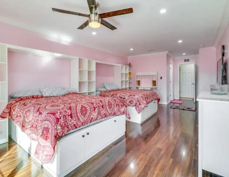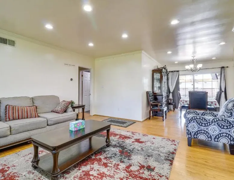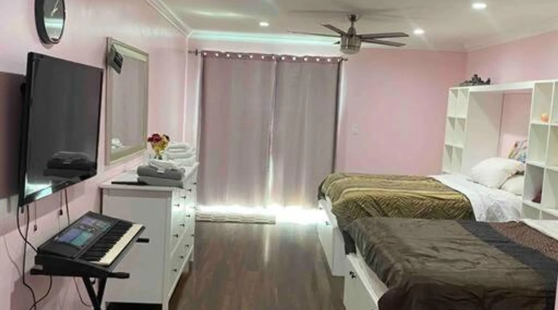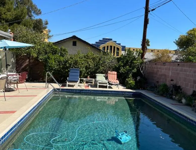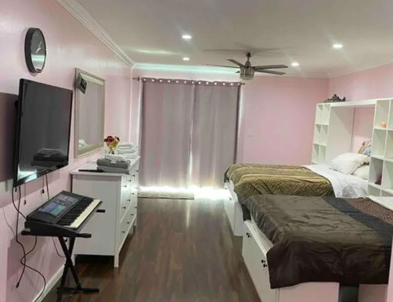 Spacious Accommodations: Vacation Rental w Pool & Garden 6 Guests near CSUN in North Hills offers a spacious holiday home with two bedrooms and two bathrooms. The property includes a living room and a fully equipped kitchen. Outdoor Amenities: Guests can enjoy a year-round outdoor swimming pool, sun terrace, and lush garden. Free WiFi is available throughout the property, ensuring connectivity. Convenient Facilities: The holiday home features private check-in and check-out services, a lounge, steam room, shared kitchen, coffee shop, laundry service, outdoor seating area, picnic area, family rooms, bicycle parking, express check-in and check-out, children's playground, and luggage storage. Nearby Attractions: Located 9.3 mi from Hollywood Burbank Airport, the property is close to attractions such as Nethercutt Museum (7.5 mi), Getty Center (12 mi), and Universal Studios Hollywood (14 mi). This holiday home's standout features are the pool with a view and fireplace. Featuring a private entrance, this air-conditioned holiday home consists of 1 living room, 2 separate bedrooms and 2 bathrooms with a walk-in shower and a bath. Guests will find a stovetop, a refrigerator, a dishwasher and kitchenware in the fully equipped kitchen. The holiday home also offers a barbecue. The spacious holiday home provides a washing machine, soundproof walls, a mini-bar as well as a terrace with garden views. The unit offers 5 beds.
