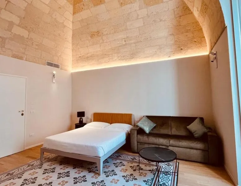 Comfortable Accommodations: Palazzo Lagreca in Gravina in Puglia offers recently renovated guest house rooms with air-conditioning, balconies, and private bathrooms. Each room includes a tea and coffee maker, work desk, and free toiletries. Dining Experience: The family-friendly restaurant serves Italian cuisine with vegetarian, vegan, gluten-free, and dairy-free options. Guests can enjoy lunch, dinner, and cocktails in a traditional, modern, or romantic ambiance. Leisure Activities: The property features a terrace, outdoor seating area, and yoga classes. Additional amenities include a lounge, elevator, concierge service, and tour desk. Location and Attractions: Located 36 mi from Bari Karol Wojtyla Airport, Palazzo Lagreca is near attractions such as Palombaro Lungo and Matera Cathedral, each 17 mi away. Highly rated by guests. This spacious suite is consisted of of 1 living room, 1 separate bedroom and 1 bathroom with a shower and free toiletries. This suite is air-conditioned and features a seating area with a flat-screen TV, soundproof walls, a tea and coffee maker, a dining area, as well as a wardrobe. The unit offers 2 beds.