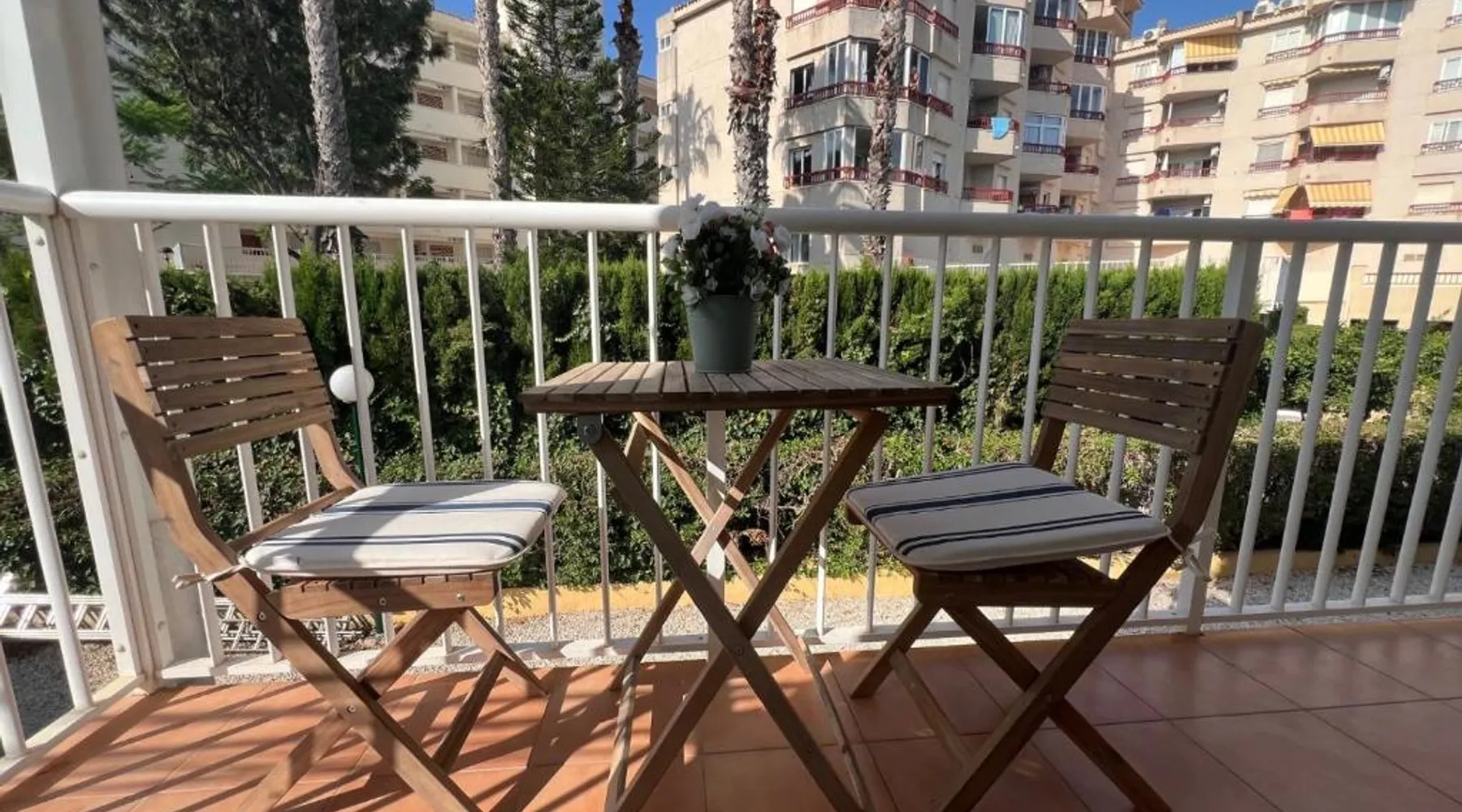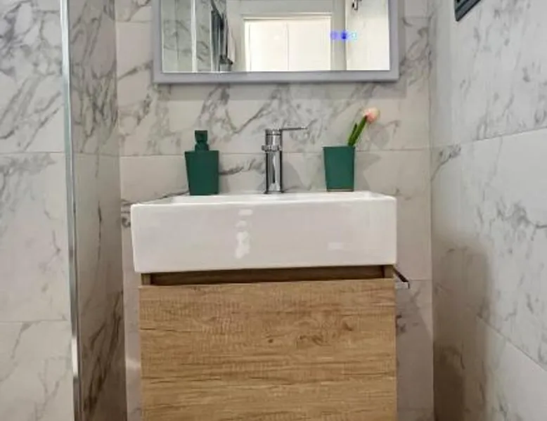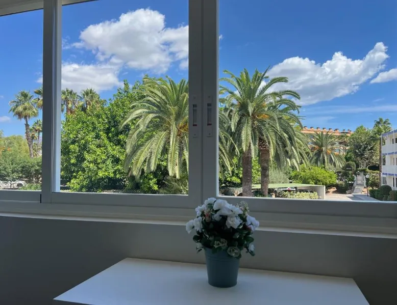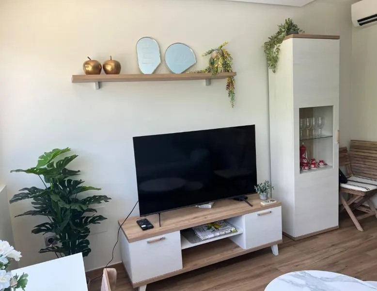Modern Comforts: Paraíso esmeralda in l'Alfàs del Pi offers a recently renovated apartment with one bedroom and a living room. The property features a sun terrace, garden, and a seasonal outdoor swimming pool. Free WiFi is available throughout the apartment. Convenient Amenities: Guests can enjoy air-conditioning, a kitchenette, washing machine, and a fully equipped kitchen. Additional amenities include a sofa bed, TV, and wardrobe. Free on-site parking is provided for added convenience. Prime Location: Located 40 mi from Alicante–Elche Miguel Hernández Airport, the apartment is a 4-minute walk from Cap Blanch Beach. Nearby attractions include Aqualandia (4.3 mi) and Benidorm Palace (3.7 mi). Highly rated for its friendly host, beach access, and convenient location. The private pool is a top feature of this apartment. This air-conditioned apartment comes with 1 living room, 1 separate bedroom and 1 bathroom with a shower. The apartment's kitchen is available for cooking and storing food. The apartment features a flat-screen TV, a washing machine, a wardrobe, a sofa as well as garden views. The unit has 2 beds.
