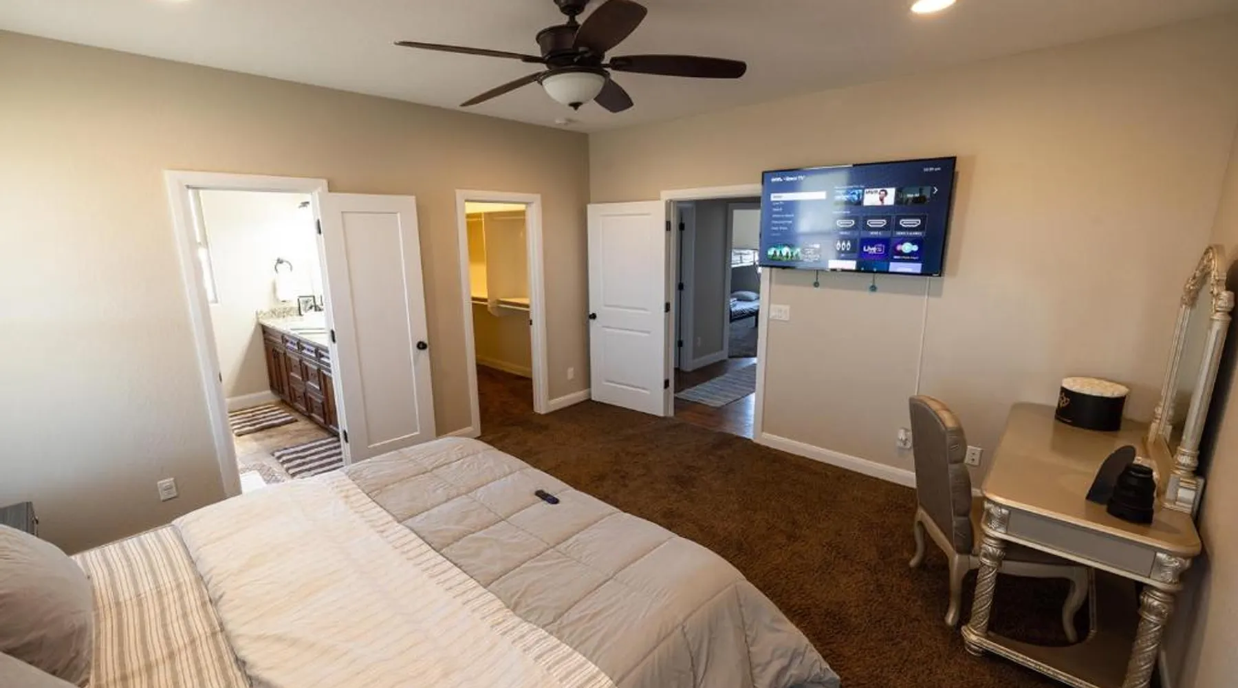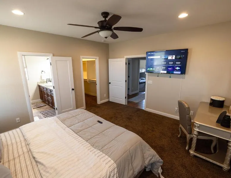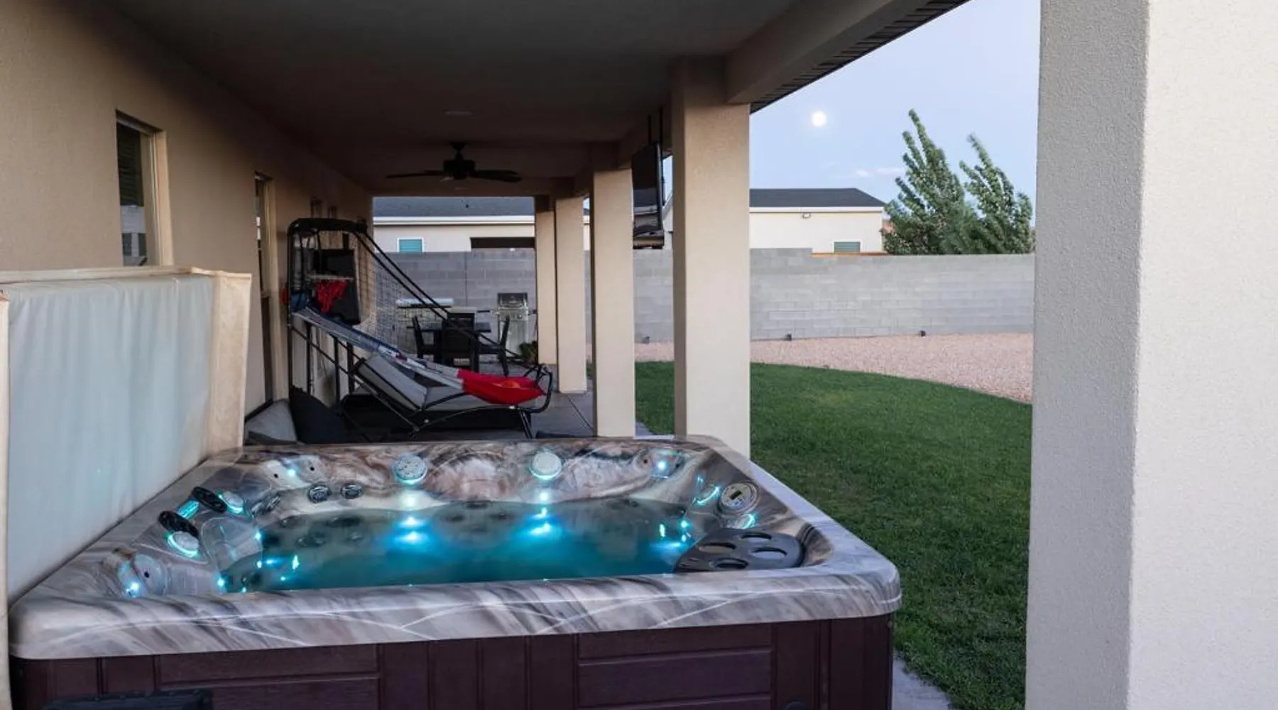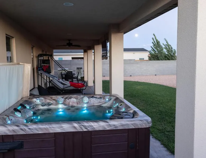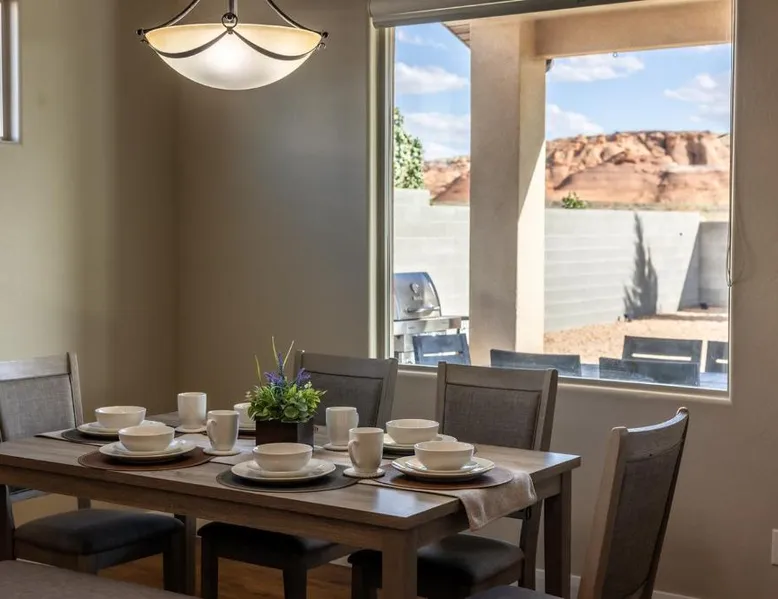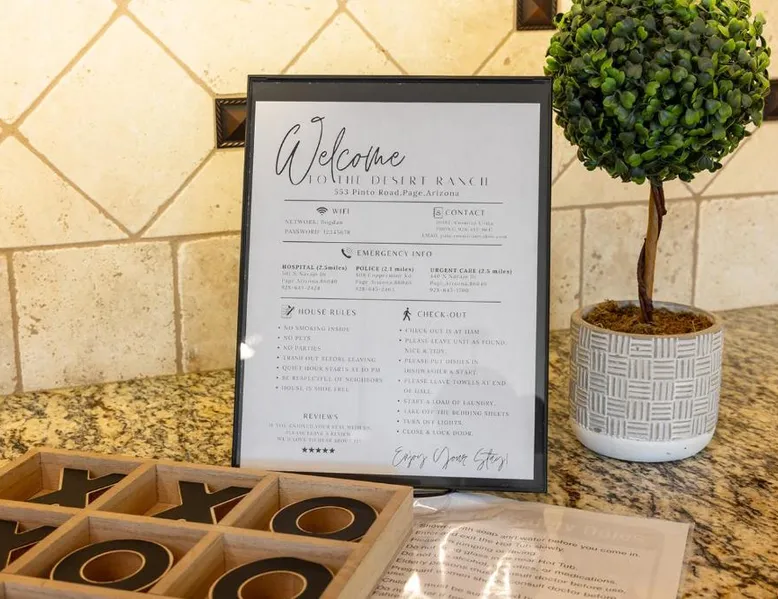 Spacious Holiday Home in Page: Desert Ranch offers a spacious, recently renovated holiday home in Page, Arizona. The property features three bedrooms and two bathrooms, ensuring comfort for all guests. Outdoor Amenities: Guests can relax on the sun terrace or in the garden, enjoying free WiFi throughout the property. Additional facilities include a hot tub, outdoor seating area, and picnic spots. Comfortable Living: The home features a lounge, shared kitchen, and family rooms. Air-conditioning, a fireplace, and a washing machine provide comfort and convenience. Convenient Location: Located 3.1 mi from Page Municipal Airport and 8.1 mi from Antelope Canyon, Desert Ranch offers easy access to local attractions. Boating opportunities are available in the surrounding area. The hot tub and fireplace are the standout features of this holiday home. Featuring a private entrance, this air-conditioned holiday home consists of 1 living room, 3 separate bedrooms and 2 bathrooms with a walk-in shower and a bath. Guests will find a stovetop, a refrigerator, a dishwasher and an oven in the fully equipped kitchen. The holiday home also offers a barbecue. The spacious holiday home provides a washing machine, a tea and coffee maker, a seating area, a flat-screen TV with streaming services, as well as garden views. The unit offers 5 beds.