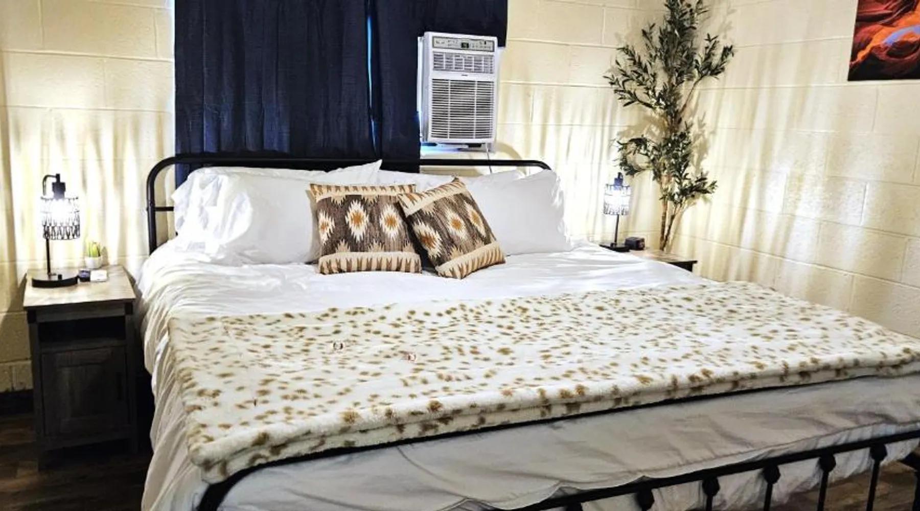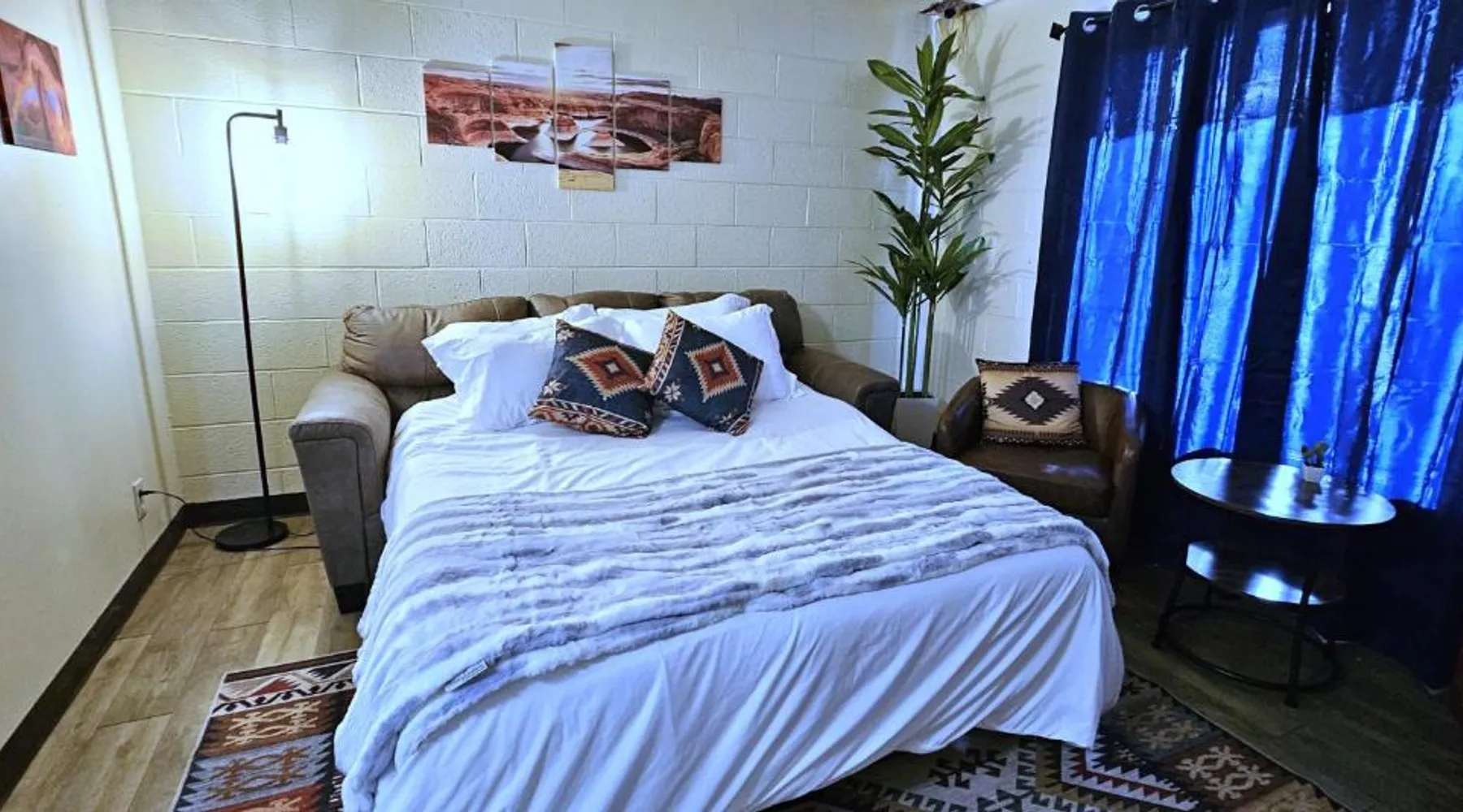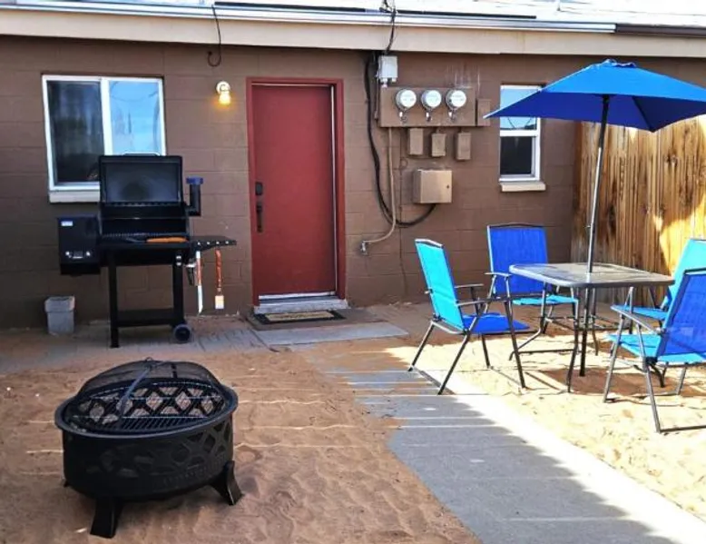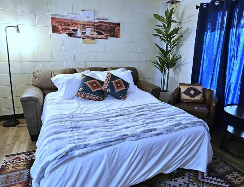 Spacious Holiday Home in Page: 1Bd, King, Brkfst, Large TVs, WD, Sleeps 4, BBQ offers a spacious holiday home in Page, Arizona. The property features one bedroom, a living room, and a fully equipped kitchen. Modern Amenities: Guests enjoy air-conditioning, a washing machine, and a private bathroom. The home includes a patio, outdoor seating area, and a picnic area. Free on-site private parking is available. Convenient Location: Located 0.6 mi from Page Municipal Airport, the property is close to attractions such as Antelope Slot Canyon Tours (4-minute walk), Lake Powell Jeep Rentals (1969 feet), and Glen Canyon Dam (2.5 mi). Boating opportunities are available in the surroundings. Boasting a private entrance, this air-conditioned apartment includes 1 living room, 1 separate bedroom and 1 bathroom with a bath and a shower. Guests will find a stovetop, a refrigerator, kitchenware and an oven in the well-equipped kitchen. The apartment also features a barbecue. A seating area with a flat-screen TV, a washing machine and a patio are offered in this spacious apartment. The unit has 2 beds.