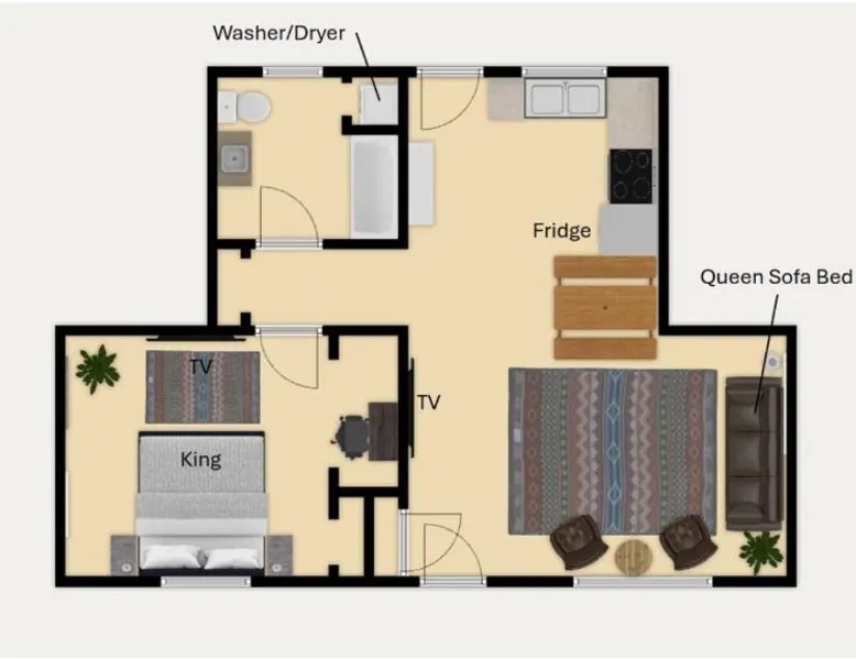 1Bd, King, Brkfst, Large TVs, WD, Sleeps 4, BBQ