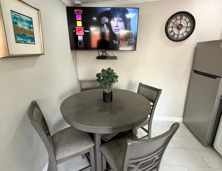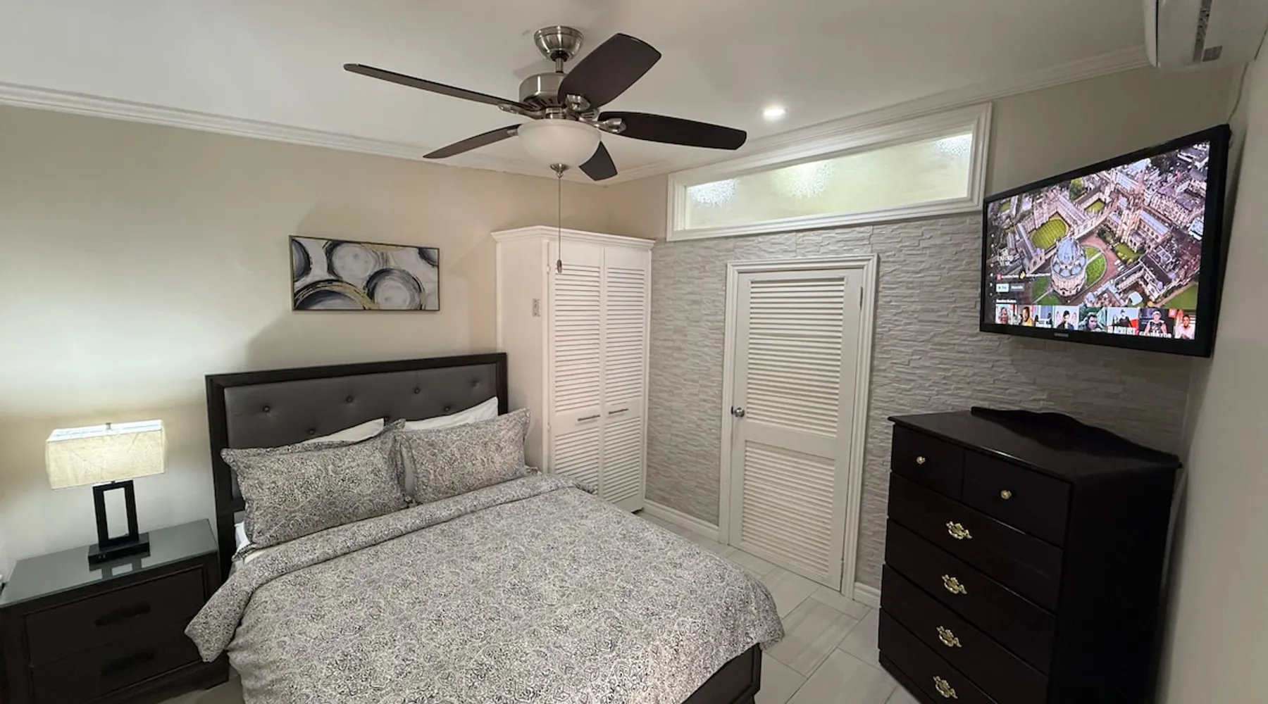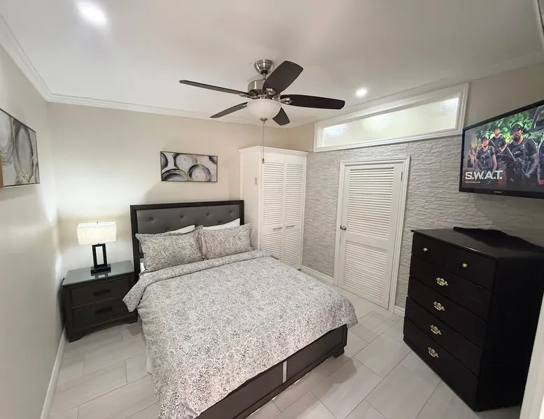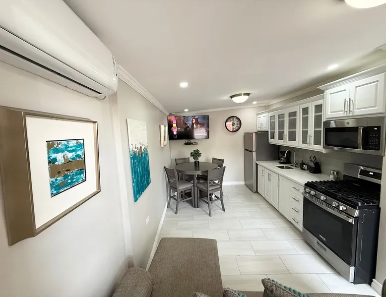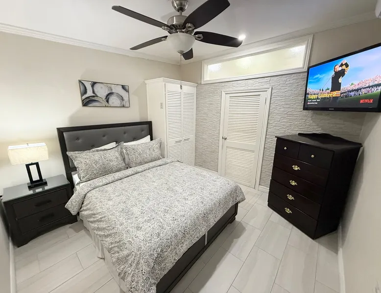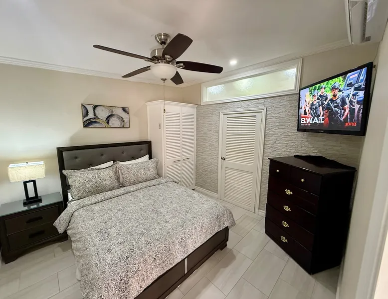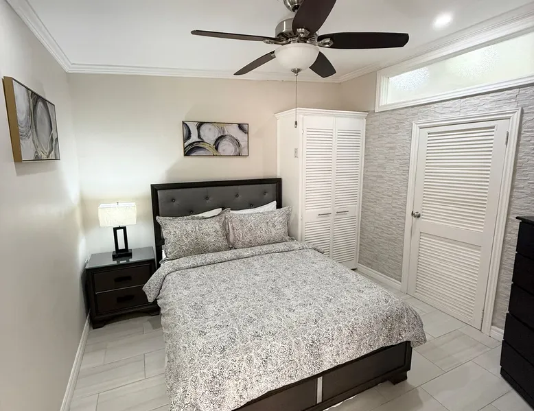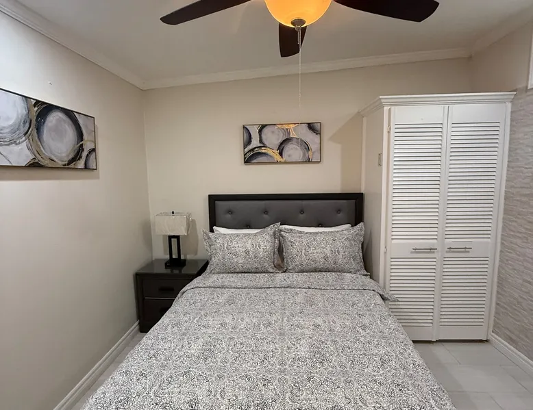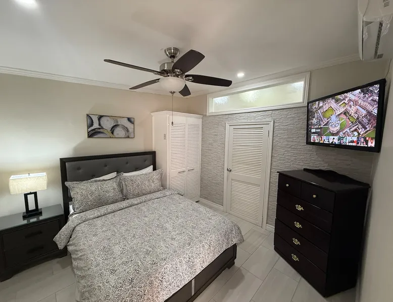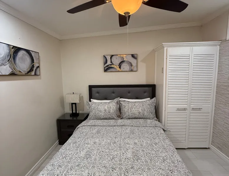 This modern fully Air-Conditioned apartment is situated in the heart of the City Woodbrook. It is ideally located for short to mid-term stays for vacation. This two-bedroom two bath apartment has all amenities and is 2-5 mins walking distance to Queens Park Oval, Ariapita Avenue, Central Businesses District of Port of Spain and exciting Culinary and Nighttime Entertainment, malls, grocery shops, restaurants, and bars. The space This modern spacious Two Bedroom apartment with open floor dinning/ living/ Kitchen area comes well equipped with all amenities. Full kitchen Refrigerator, Stove, Toaster, Coffee Marker, Electronic kettle, and all cooking utensils 2 Bedrooms ( Furnished with Queen Size Beds) 2 en-suite Bathrooms Washer and dryer Facilities Key pad Apartment access Electronic Gate Access Parking Available for One Car Guest access Entire Apartment, All Amenities Included Other things to note This Apartment is on the First Floor of a Two Storey Building, with 3 other apartments. Airport Pick up and other transportation needs can be arranged.