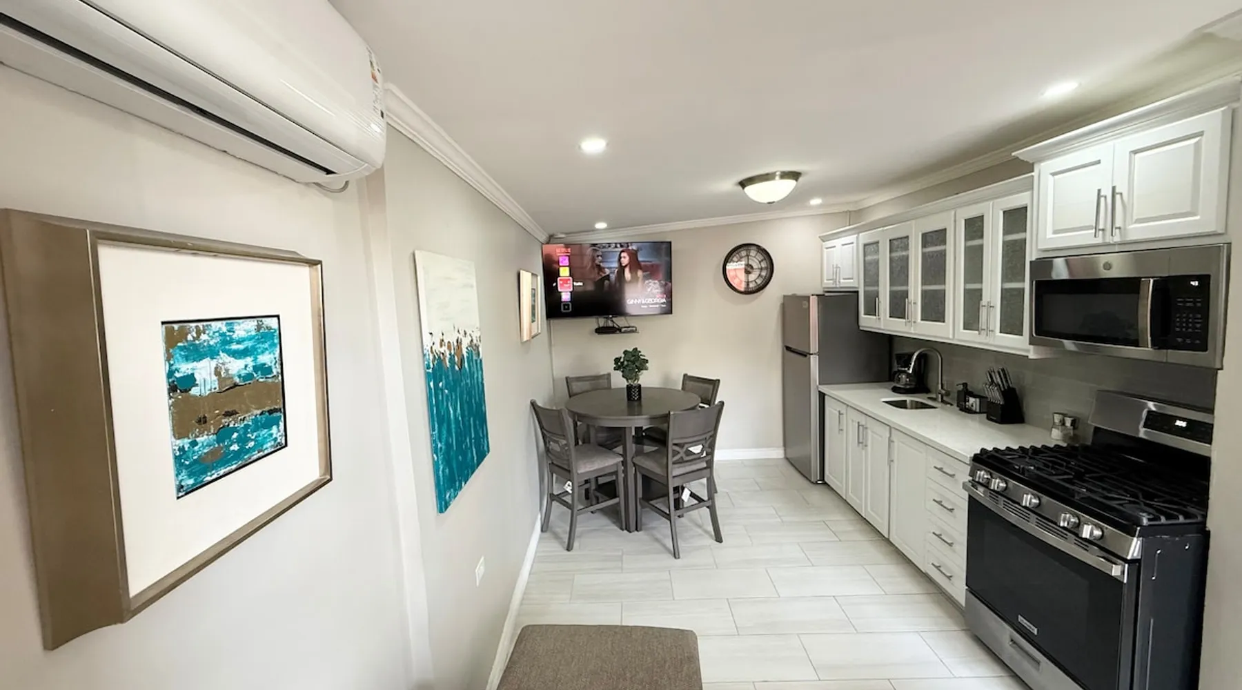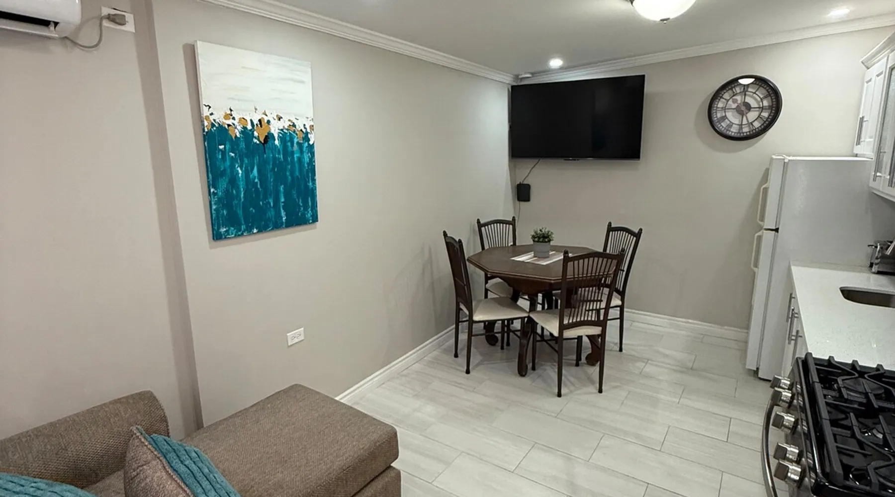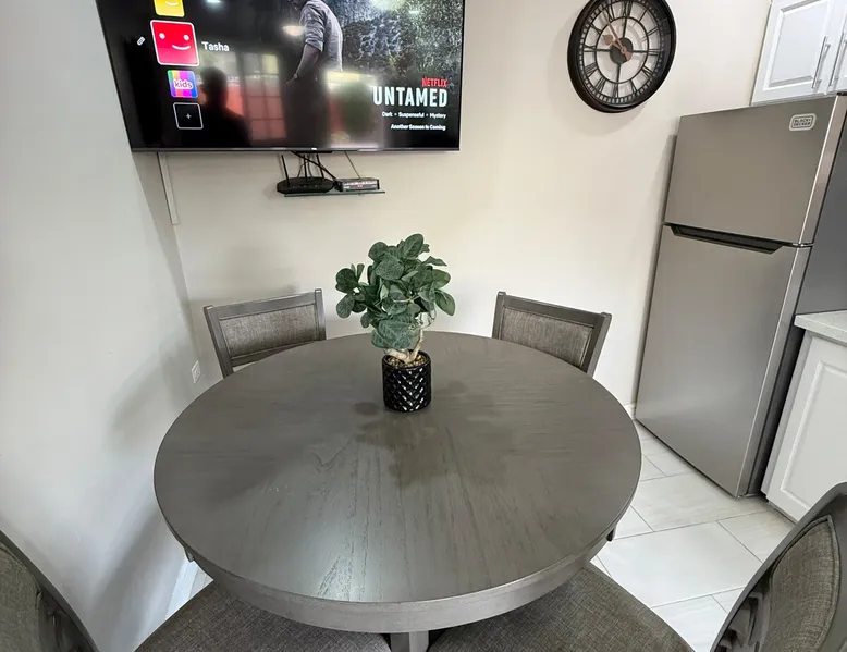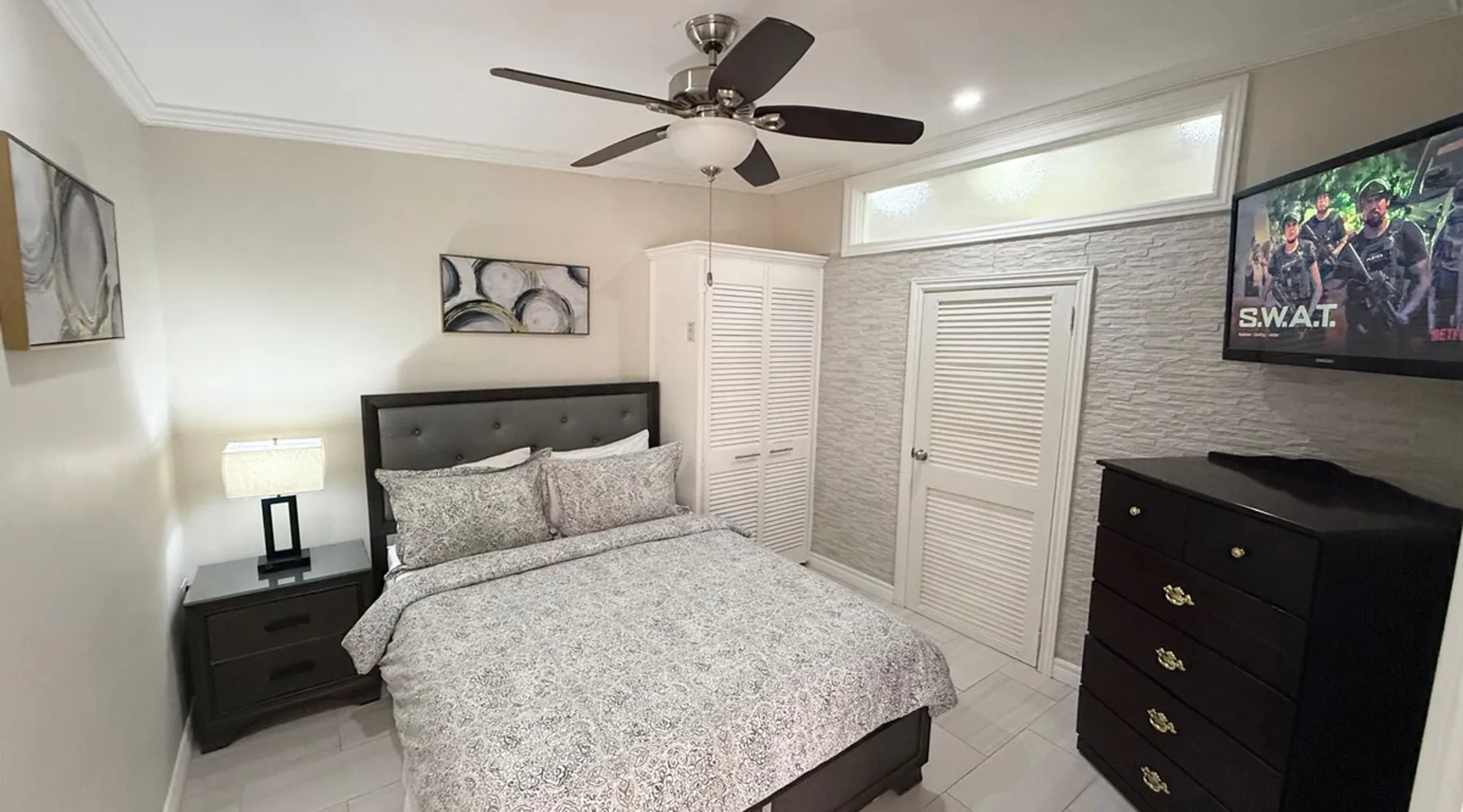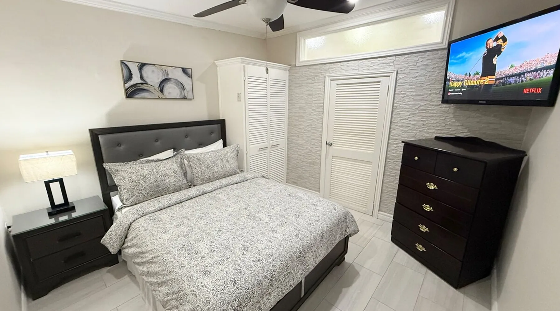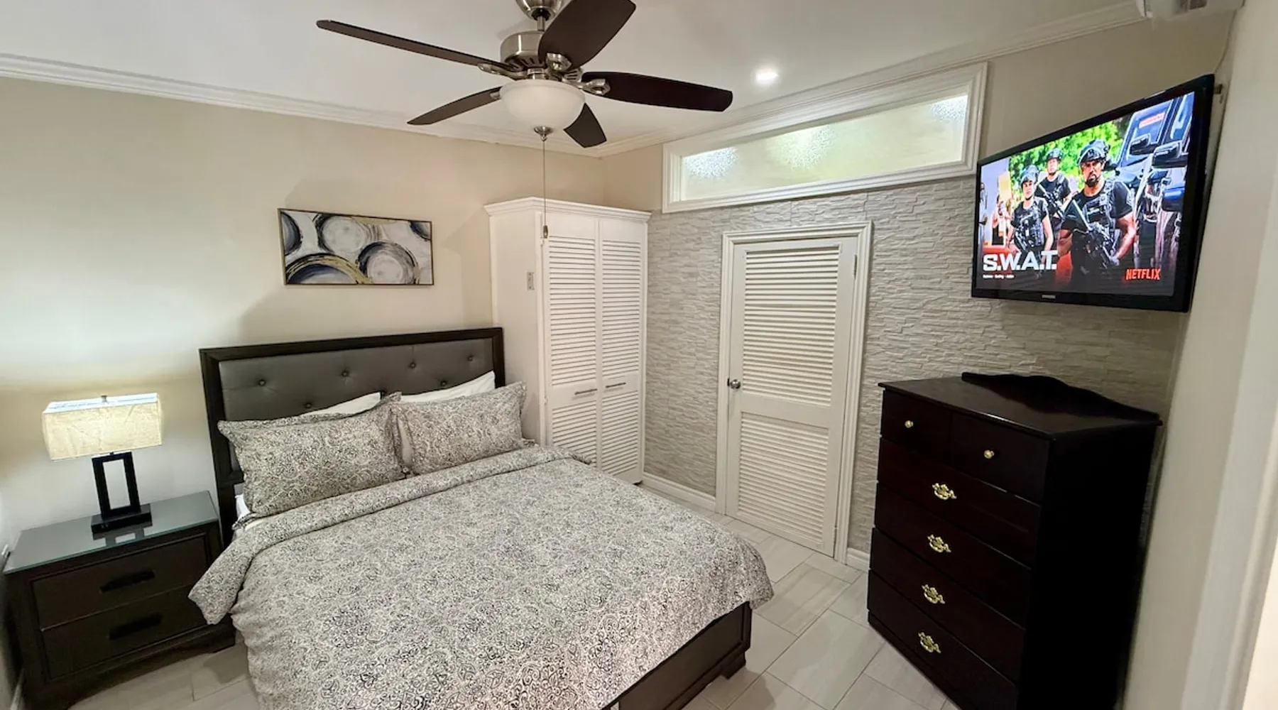 This modern fully Air-Conditioned apartment is situated in the heart of the City Woodbrook. It is ideally located for short to mid-term stays for vacation. This two-bedroom two bath apartment has all amenities and is 2-5 mins walking distance to Queens Park Oval, Ariapita Avenue, Central Businesses District of Port of Spain and exciting Culinary and Nighttime Entertainment, malls, grocery shops, restaurants, and bars. The space This modern spacious Two Bedroom apartment with open floor dinning/ living/ Kitchen area comes well equipped with all amenities. Full kitchen Refrigerator, Stove, Toaster, Coffee Marker, Electronic kettle, and all cooking utensils 2 Bedrooms ( Furnished with Queen Size Beds) 2 en-suite Bathrooms Washer and dryer Facilities Key pad Apartment access Electronic Gate Access Parking Available for One Car Guest access Entire Apartment, All Amenities Included Other things to note This Apartment is on the First Floor of a Two Storey Building, with 3 other apartments. Airport Pick up and other transportation needs can be arranged.