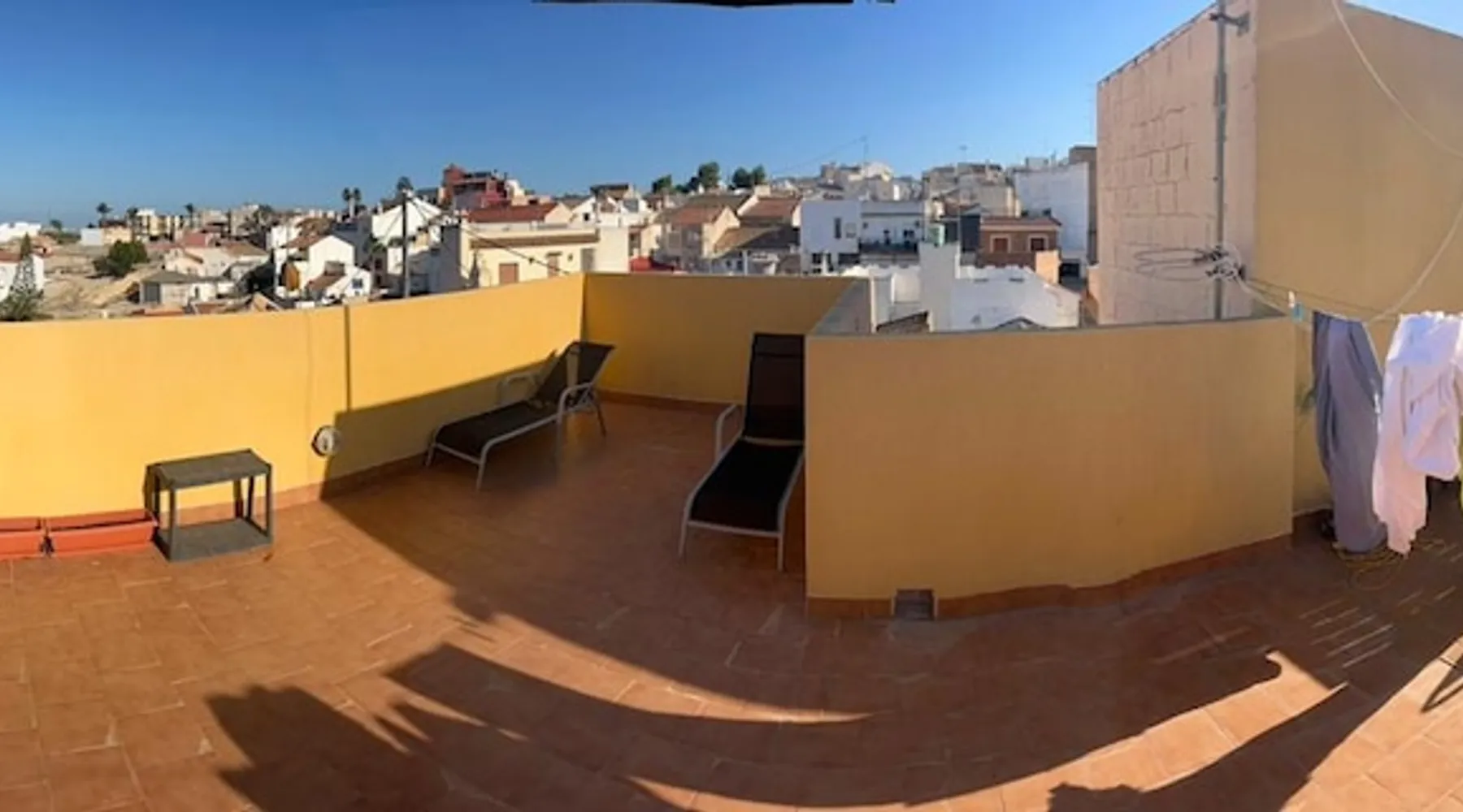 Cozy and clean apartment in San miguel. 2 minutes walk from the Las Colinas gold court,and offers accommodation with a terrace,a barbecue ,washing machine and free WiFi. Playground is behind the apartment. Apartment has a balcony and there is a large roof terrace which is for shared use for the entire property. Air conditioning provided. 2 bedrooms , a flat-screen TV and a kitchen with fridge and oven. Towels and bedding are provided at the apartment. SMOKING ON BALCONY AND ROOF TERRACE. The space 7 minutes from the beautiful beaches of Torrevieja. Villamartin Plaza is 6km away. Murcia Fine Arts Museum is 35 km up the road. Airport Alicante-Elche Miguel Hernandez Airport is 55 km away from the accommodation. Beautiful beaches 10 minutes away by car. Guest access Complete apartment available. Private balcony available. Roof terrace is for the entire property. Other things to note Smoking only on balcony and roof terrace. Registration Details Valencia - Regional registration number VT-511175-A