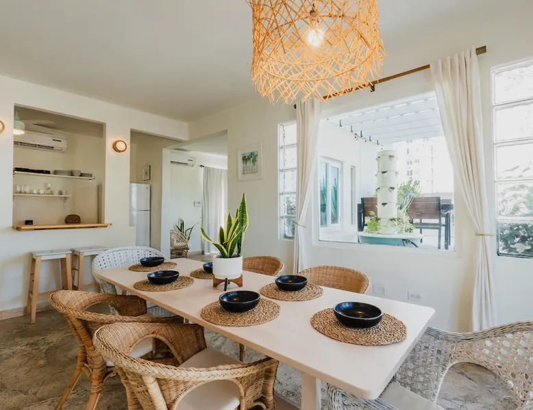 Kick back and relax in this calm, luxurious, and stylish oasis. Casa Pelegrina is just steps from beautiful sunrises and sunsets. You will be charmed by its proximity to the sea, immersing you in an unforgettable vacation. A short walk to the house, you can enjoy the beach, ideal for cooling off during the hot days of Puerto Rico. Our home offers three Independent private apartments, each with beautiful private terraces and gardens that will allow you to relax. The space It is decorated with great care, combining contemporary amenities with a trendy style. The kitchen, located at the center of the dining room, voluntarily wants to be a place of exchange and sharing. Sip a good wine, remake the world, and always face this sublime panorama. It has cozy, relaxing seating areas with TV, Wi-Fi, and an outdoor garden terrace. It is ideal for a family or a group of friends. Casa Pelegrina offers the perfect setting for an unforgettable stay. It's suitable for a holiday with your feet in the sand. Guest access The property has a private entrance and street parking, which is accessible. Casa Pelegrina 2 is on the second floor; no elevator is available. There is a private terrace for sunbathing and yoga and an outdoor dining area for extraordinary gatherings. Our home provides two entrances. Primary access is throughout Calle Soldado Serrano, which faces Barbosa Park. The second option is to go through Calle Cacique, which is by the Ocean Park security area. Other things to note We are located: - Steps from Ocean Park Beach - Steps from Parque Barbosa Driving: - 13 minutes from the LMMI Airport - 14 minutes from Isla Verde - 6 minutes from La Calle Loiza - 13 minutes from La Placita - 15 minutes from Condado Beach - 23 minutes from Old San Juan - 20 minutes from Piñones - 41 minutes from El Yunque Rainforest