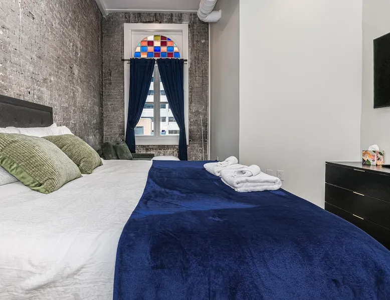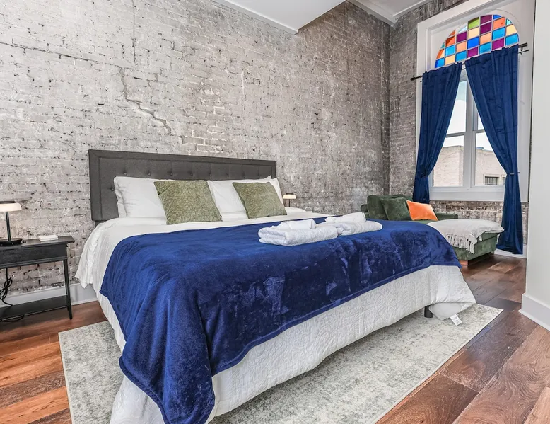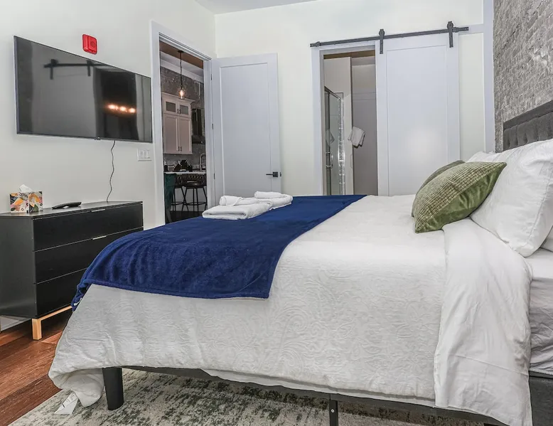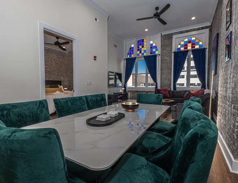 Experience Knoxville in style from this brand-new 3-bedroom, 2-bath condo on iconic Gay Street! Steps from Market Square, top restaurants, and the Tennessee Theatre, this sleek urban escape offers the perfect mix of comfort, convenience, and modern luxury! With Free Parking (1 vehicle), and walkability in the center Knoxville, this location and Condo provides and unbeatable urban experience for your next work trip, home football game, concert, or leisure vacation! The space Stay in the heart of downtown Knoxville in this beautifully designed 3-bedroom, 2-bath condo. Featuring exposed brick, cozy furnishings, and modern amenities, this space offers the perfect mix of charm and comfort. Located in the historic Century Building, it’s just steps from great restaurants, shops, and local attractions. * Free Downtown Parking (1 vehicle) * 3 bedrooms = King, Queen and Full size (+ pullout sofa in the living room) * 2 Full bathrooms * In Unit Washer and Dryer * Smart TV's in Bedrooms & Living Area * Basic cooking essentials PROXIMITY TO LOCATIONS: On Gay Street 1 block to Market Square 0.3 Miles - Old City 1.0 Miles - University of TN 34 Miles - Great Smoky Mountain National Park 36 Miles - Dollywood Theme Park Guest access Guests will have access to the entire condo. Please be careful to not gather in the building's common areas as not to disturb other residences. The Condo comes with complimentary parking for 1 vehicle in a neighboring parking lot less than 3 minutes away.