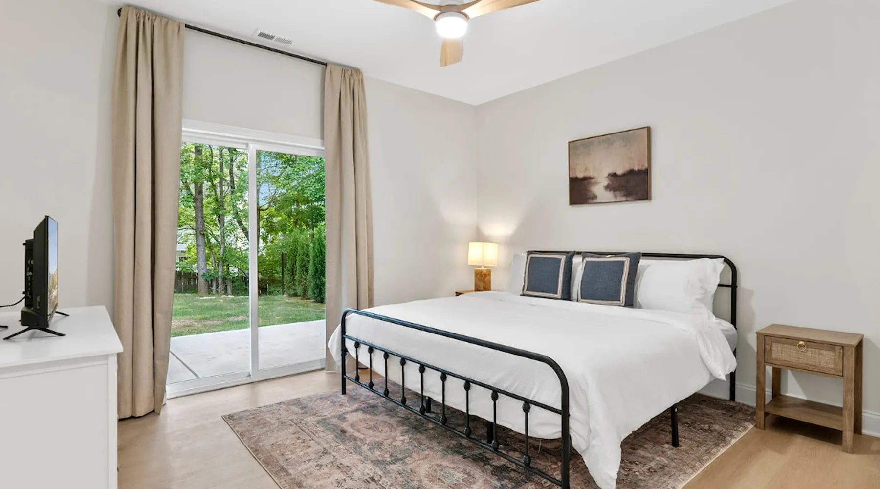 Welcome to Idlewood Suites! Guests will enjoy private garage parking, a king bed, new furniture, and a full bathroom and kitchen. This listing is for (2) guests, providing full access to the first and second floors, including a fully-equipped kitchen, cozy living room, private outdoor deck, and access to the grill area. Please note: the third floor is inaccessible and completely blocked off. Located just 15 minutes from downtown, Idlewood Suites is your ideal urban retreat.