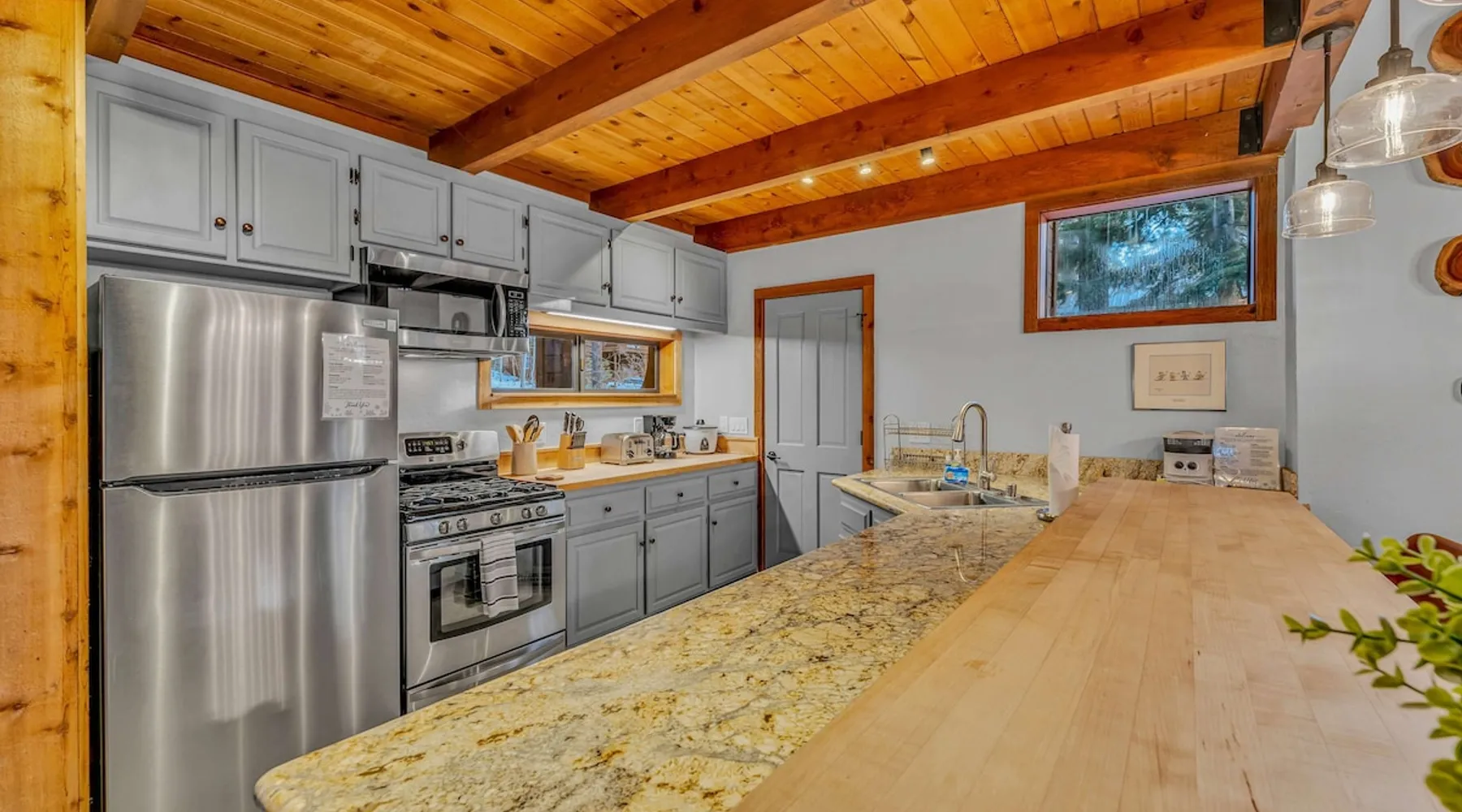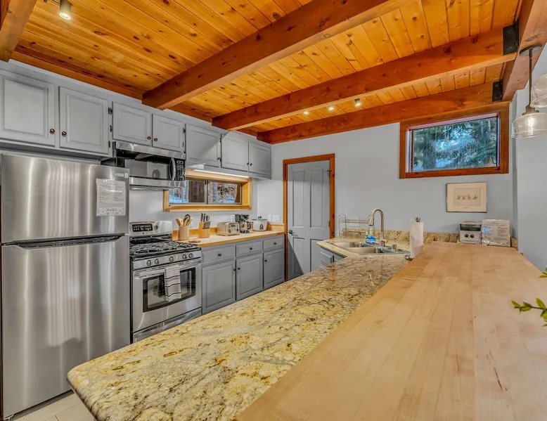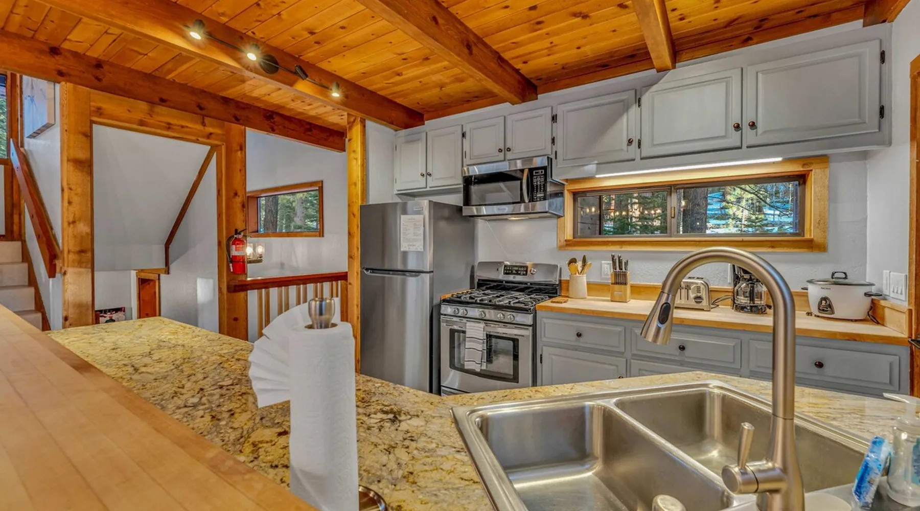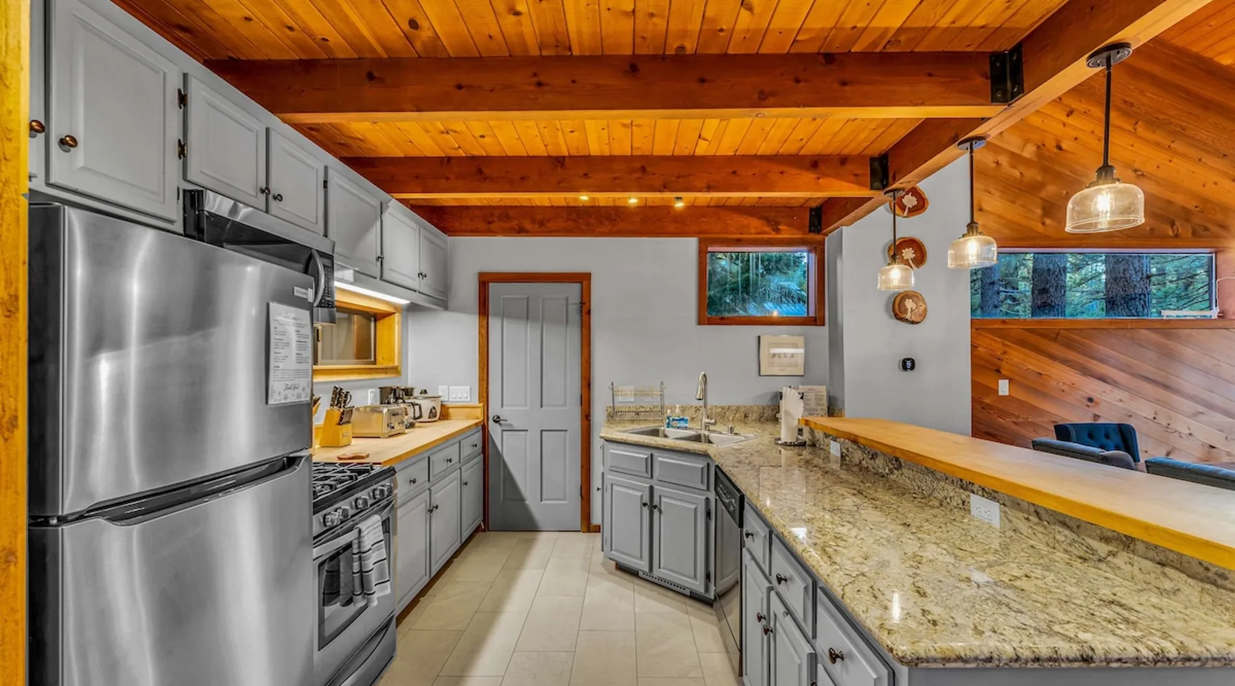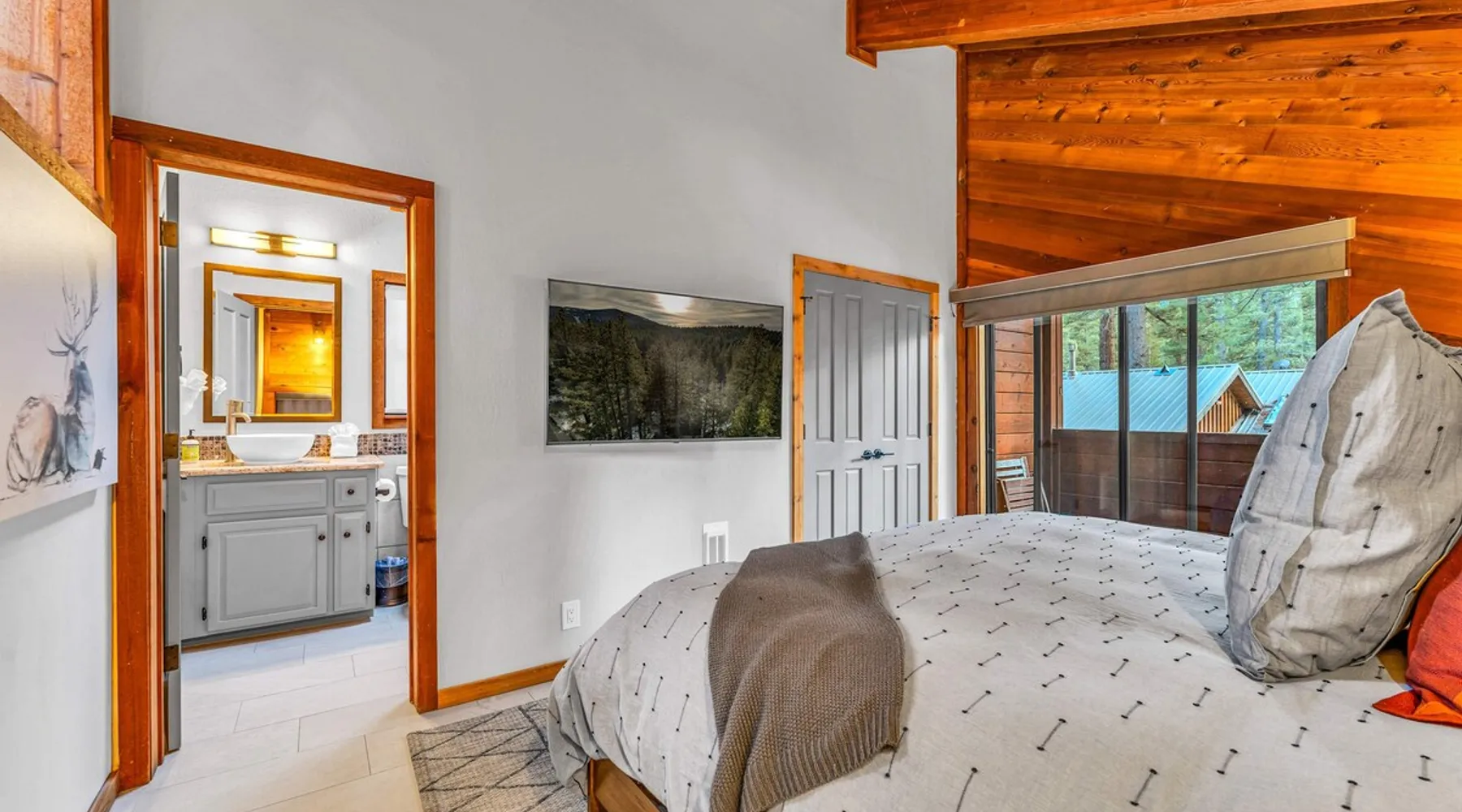 Escape to this inviting 4-bedroom, 3-bathroom Truckee vacation rental, ideal for families and outdoor enthusiasts. This 1,832 sq. ft. home features a spacious living area with a gas fireplace, a well-equipped kitchen, and a private deck for relaxing after a day of adventure. Nestled in Northstar, enjoy easy access to world-class skiing, hiking, and Lake Tahoe’s scenic beauty. With parking for 4 vehicles, Smart TVs, and central heating, this retreat ensures a comfortable stay year-round. The space Location perks: Northstar California Resort (0.7 miles), Truckee River Regional Park (6 miles), Historic Downtown Truckee (6.6 miles), Kings Beach (7.1 miles), Donner Lake (9.3 miles) Interior: — Kitchen (drip coffee maker, toaster, blender, full cookware) — 3 Smart TVs (65” with streaming services) — Gas fireplace — Free WiFi (high speed) — Central heating, no A/C — Dedicated workspace — In-unit washer and dryer (garage and hallway locations) Exterior: — Private deck — On-site parking (1 garage space, 3 driveway spaces) Floor Configuration: Upper floor: 1 bedroom (king bed, en-suite bathroom, balcony access) Main floor: Living room, kitchen, dining area, 1 full bathroom, deck access Lower floor: 1 bedroom (1 twin-over-twin bunk bed & 1 twin bed), 1 bedroom (queen bed), 1 bedroom (twin-over-full bunk bed, dedicated workspace), 1 full bathroom, laundry area, garage access STR License Number: STR22-5912 Max Occupancy: 10 Parking Info: There are 4 parking spaces available. Guest access Guests have access to the entire home and private parking. Other things to note Please keep in mind that if you plan to ski, you are responsible for verifying the ski resorts' opening and closing dates. Charcoal grills are strictly forbidden in this county and will result in a $1,500 citation if used. 4-wheel drive or 2-wheel drive tires with snow chains may be necessary for safe travel to this property, even if it hasn’t snowed in a few days. Registration details STR22-5912
