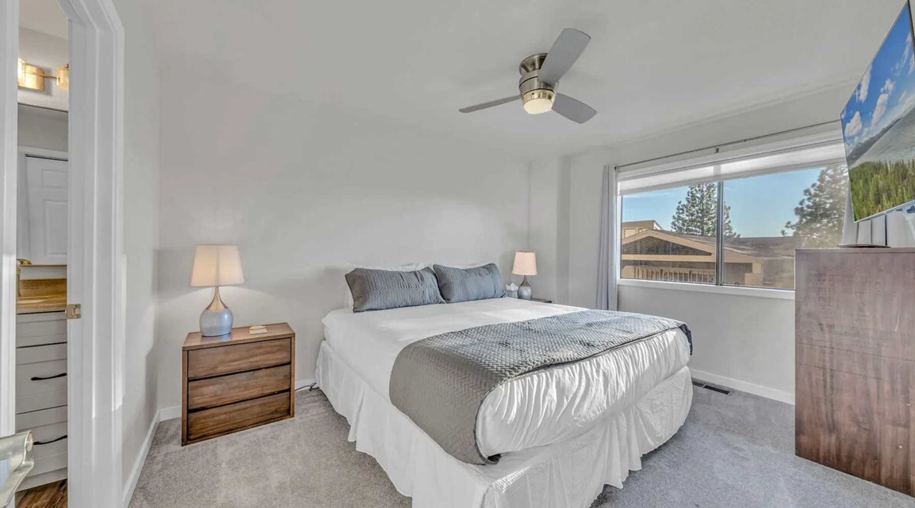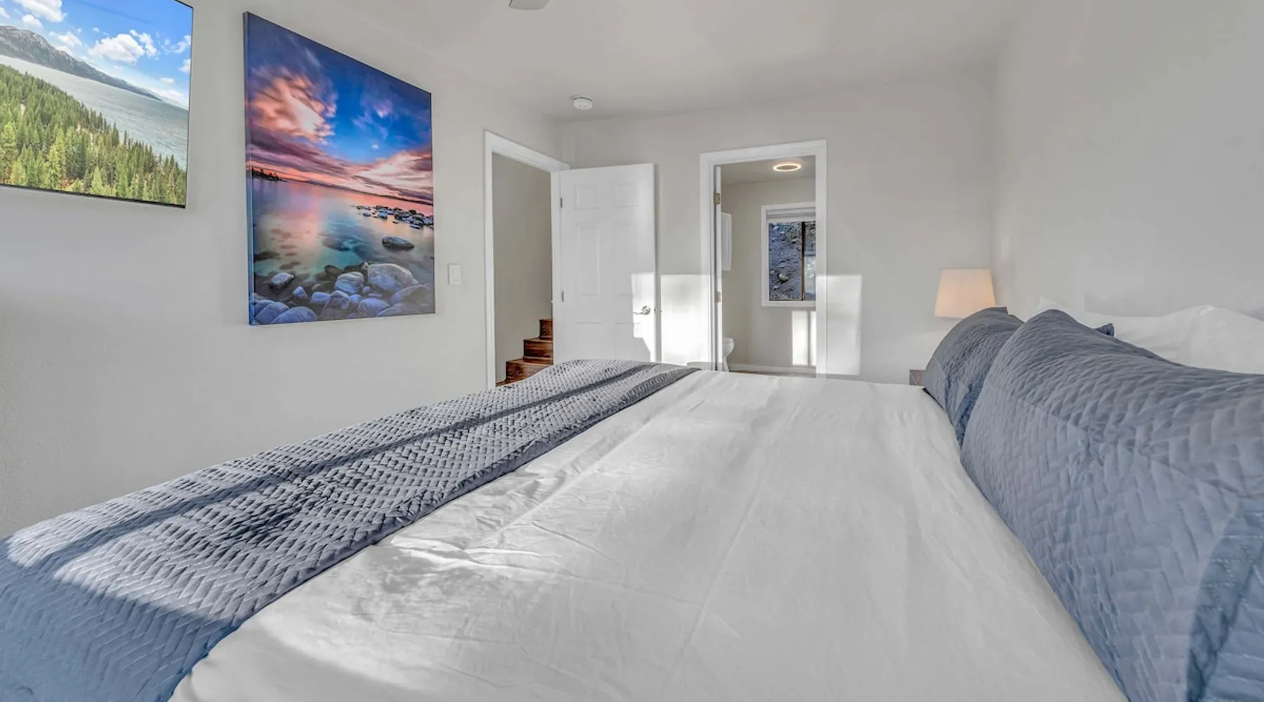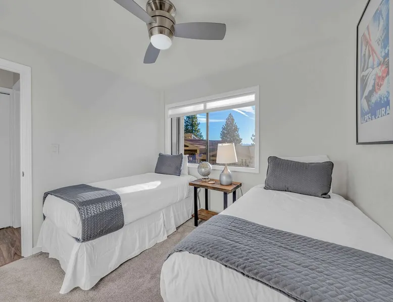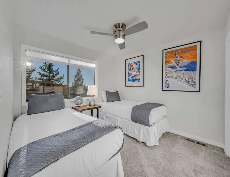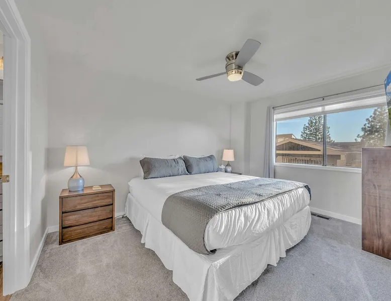 Welcome to a cozy 3-bedroom, 2-bath townhome in Incline Village with stunning lake views. Ideally located near Lake Tahoe and Diamond Peak Ski Resort, this spacious retreat features a fully equipped kitchen, wood-burning fireplace, and modern decor. Whether you're skiing, hiking, or soaking in Tahoe’s natural beauty, this home provides comfort and convenience for up to 6 guests. The space Location perks: Diamond Peak Ski Resort (0.9 miles), Incline Village Golf Course (1.3 miles), Incline Beach (2.4 miles), Sand Harbor (4.9 miles) Interior: - Kitchen (Keurig, blender, toaster oven, cooking utensils, tableware) - 2 Smart TVs (75” in the living room) - Central heating (no A/C) - Free WiFi (60 Mbps) - Washer and dryer - 1,431 sq ft Exterior: - Private balcony for 2 - Gas grill - Designated covered parking for 2 vehicles in shared parking lot Upper Floor: 1 bedroom (king bed, en-suite bathroom), 1 bedroom (2 twin beds, shared bathroom), 1 bedroom (queen bed) Main Floor: Kitchen, dining area, living room (fireplace not available) Ground Floor: Front entrance WC STR Permit: WSTR25-0011 Transient Lodging Tax License:W-5155 Max occupancy: 6 Bedrooms: 3 Beds: 4 Parking Spaces: 2 No street parking is permitted Guest access Guests have access to the entire home and 2 designated covered parking spaces in the shared parking lot. Other things to note Please note that this property does not include air conditioning, which is typical for Tahoe homes. Please keep in mind that if you plan to ski, you are responsible for verifying the ski resorts' opening and closing dates. The fireplace is not available for guest use. Registration Details WSTR25-0011
