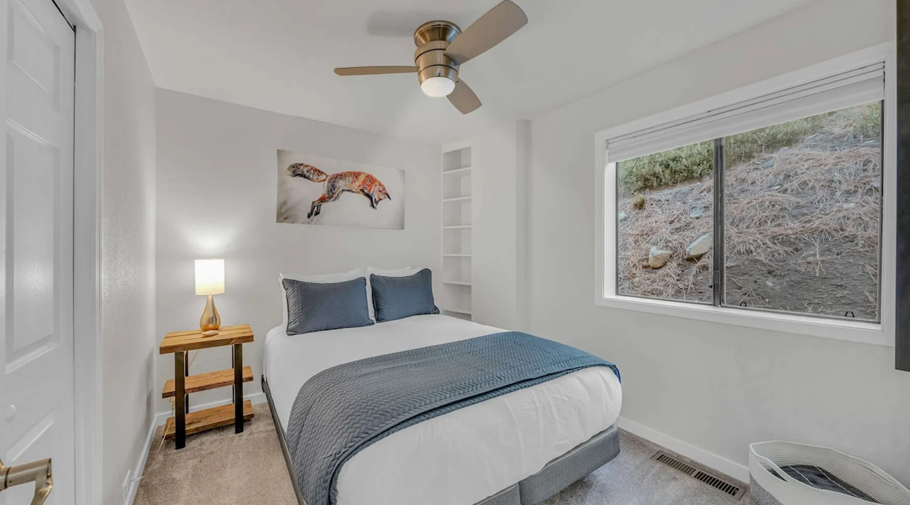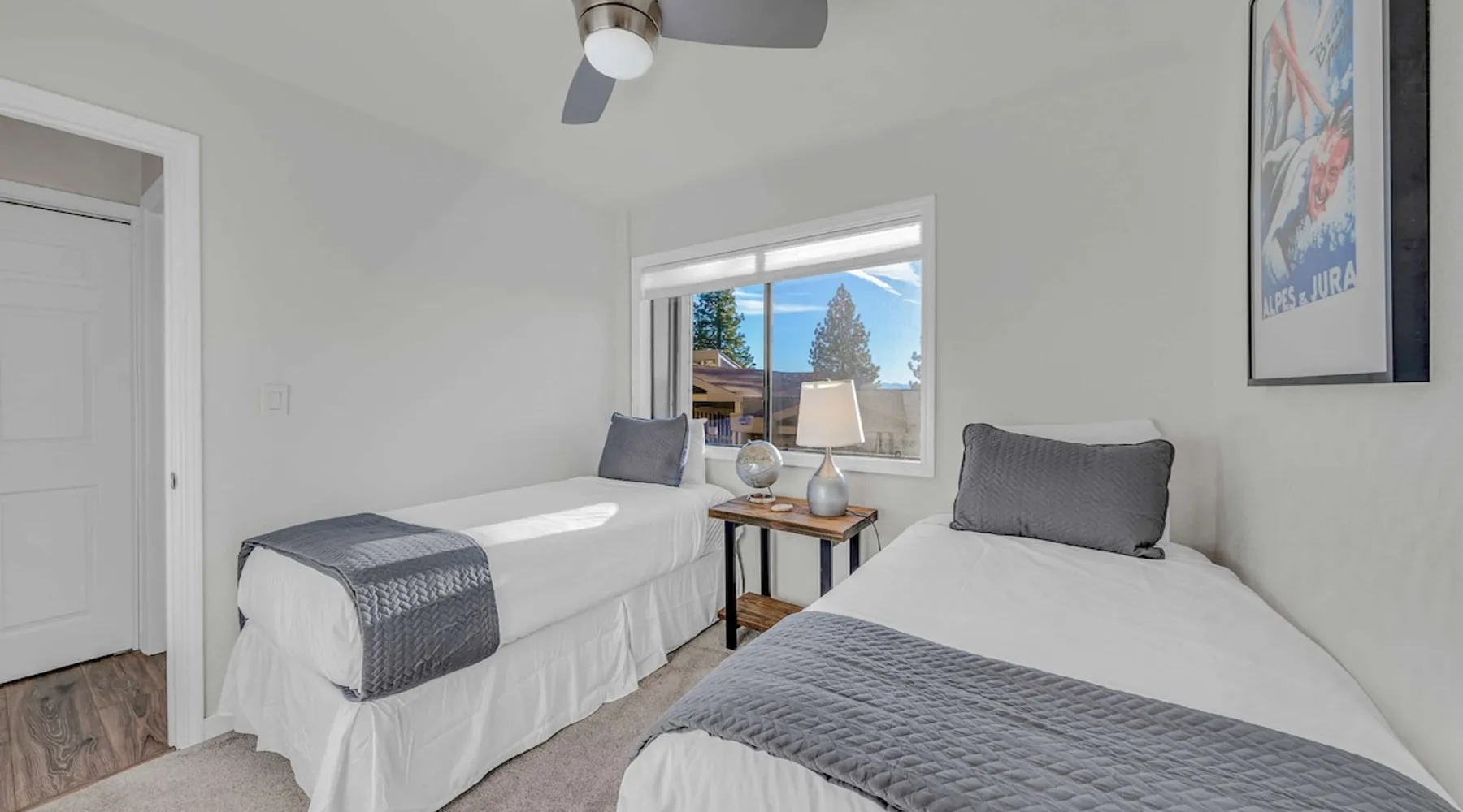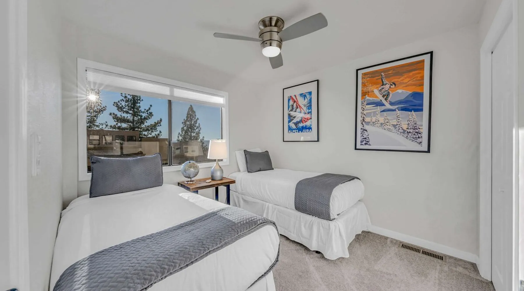 Welcome to a cozy 3-bedroom, 2-bath townhome in Incline Village with stunning lake views. Ideally located near Lake Tahoe and Diamond Peak Ski Resort, this spacious retreat features a fully equipped kitchen, wood-burning fireplace, and modern decor. Whether you're skiing, hiking, or soaking in Tahoe’s natural beauty, this home provides comfort and convenience for up to 6 guests. The space Location perks: Diamond Peak Ski Resort (0.9 miles), Incline Village Golf Course (1.3 miles), Incline Beach (2.4 miles), Sand Harbor (4.9 miles) Interior: - Kitchen (Keurig, blender, toaster oven, cooking utensils, tableware) - 2 Smart TVs (75” in the living room) - Central heating (no A/C) - Free WiFi (60 Mbps) - Washer and dryer - 1,431 sq ft Exterior: - Private balcony for 2 - Gas grill - Designated covered parking for 2 vehicles in shared parking lot Upper Floor: 1 bedroom (king bed, en-suite bathroom), 1 bedroom (2 twin beds, shared bathroom), 1 bedroom (queen bed) Main Floor: Kitchen, dining area, living room (fireplace not available) Ground Floor: Front entrance WC STR Permit: WSTR25-0011 Transient Lodging Tax License:W-5155 Max occupancy: 6 Bedrooms: 3 Beds: 4 Parking Spaces: 2 No street parking is permitted Guest access Guests have access to the entire home and 2 designated covered parking spaces in the shared parking lot. Other things to note Please note that this property does not include air conditioning, which is typical for Tahoe homes. Please keep in mind that if you plan to ski, you are responsible for verifying the ski resorts' opening and closing dates. The fireplace is not available for guest use. Registration Details WSTR25-0011