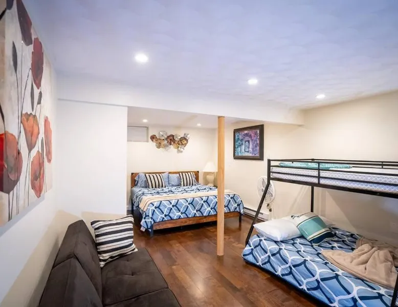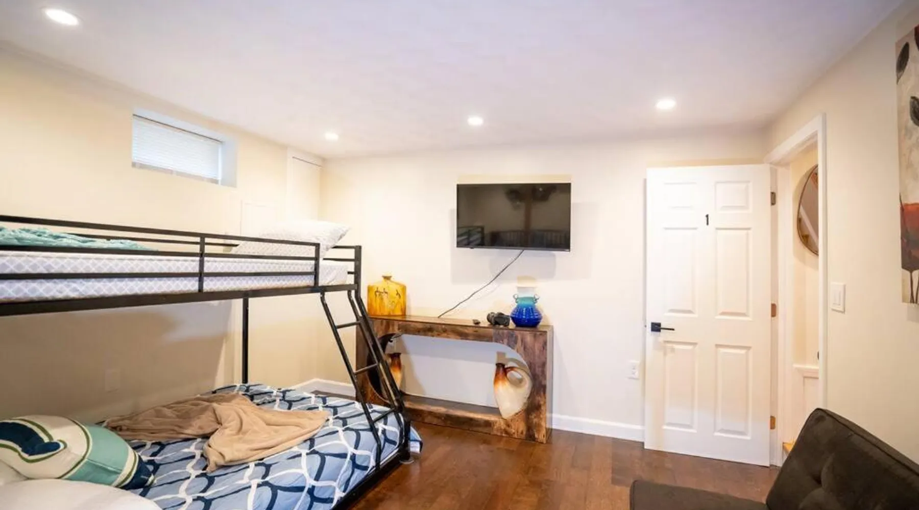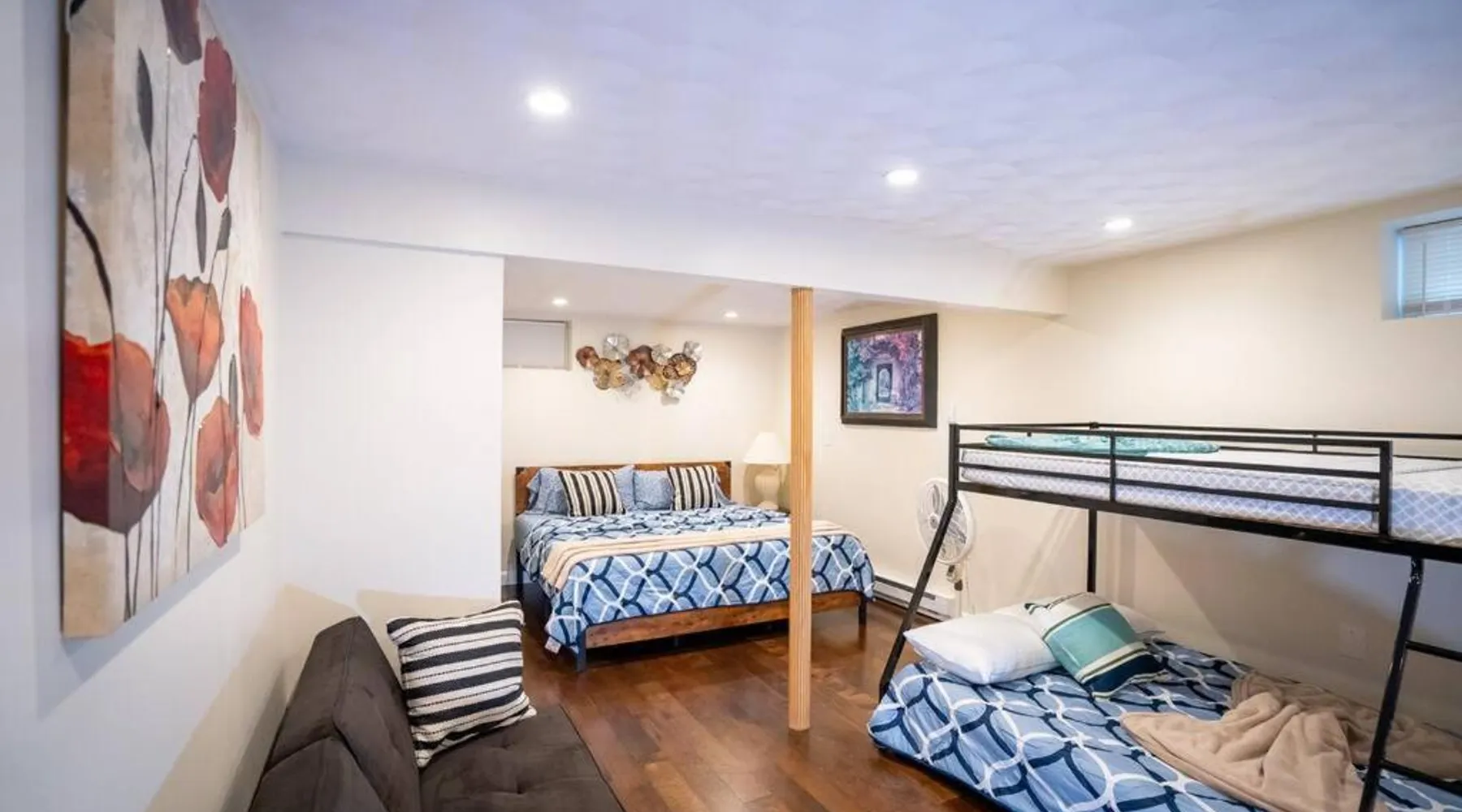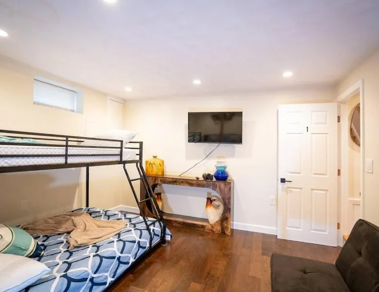 Spacious Accommodations: 597 - 5BR Medford offers a spacious apartment in Medford, featuring five bedrooms and two bathrooms. The property includes a living room, dining area, and fully equipped kitchen. Outdoor Spaces: Guests can enjoy a garden and terrace, perfect for relaxation. Free WiFi is available throughout the apartment, ensuring connectivity. Convenient Amenities: The apartment provides air-conditioning, a washing machine, and a balcony with garden views. Additional amenities include streaming services, a dishwasher, and a microwave. Prime Location: Located 5 mi from Cambridge College and 6.2 mi from Harvard University, the property is near attractions such as Inman Square and Harvard Square. An ice-skating rink is also in the vicinity. Boasting a private entrance, this air-conditioned apartment includes 1 living room, 5 separate bedrooms and 2 bathrooms with a walk-in shower and a bath. In the well-equipped kitchen, guests will find a stovetop, a refrigerator, a dishwasher and kitchenware. The spacious apartment offers a washing machine, a tea and coffee maker, a seating area, a flat-screen TV with streaming services, as well as garden views. The unit has 7 beds.