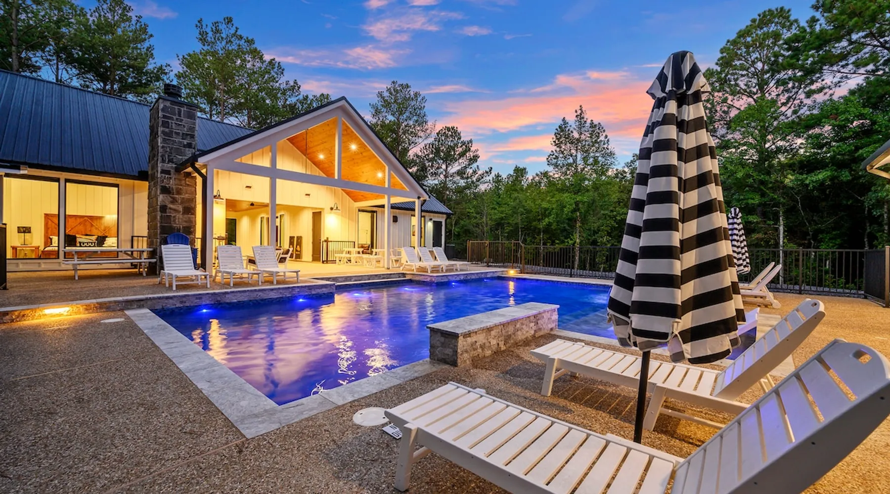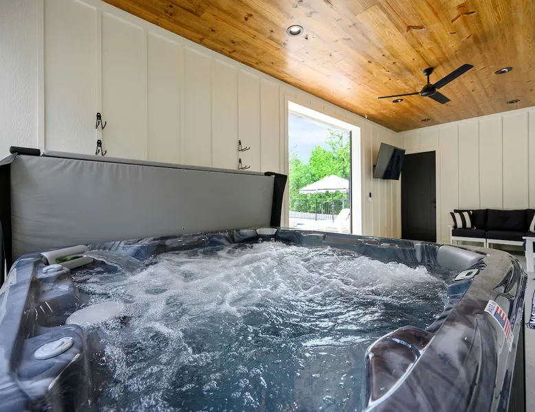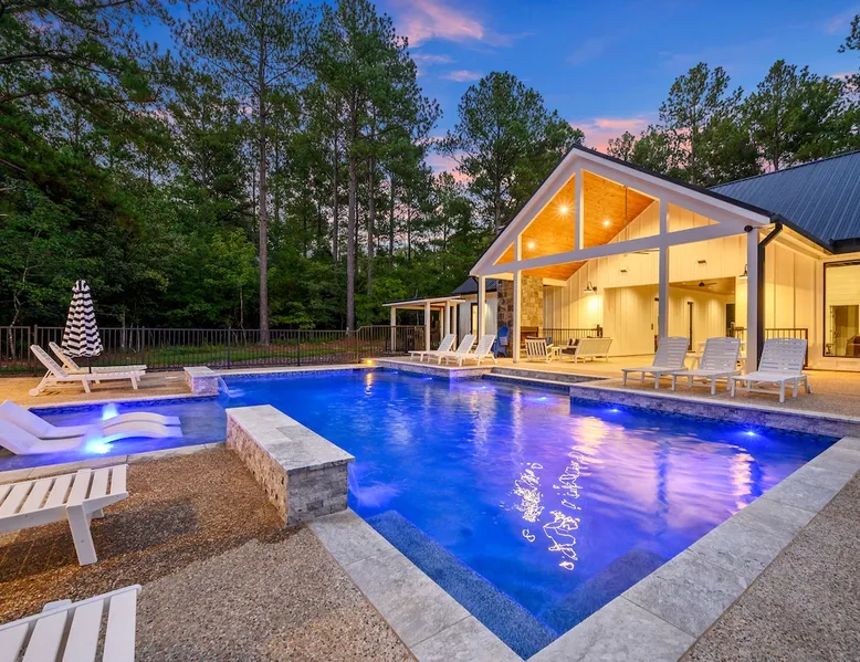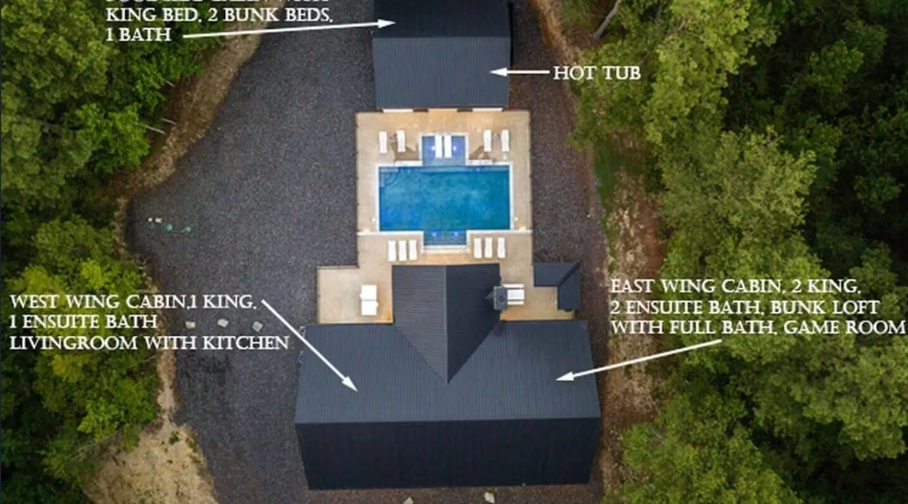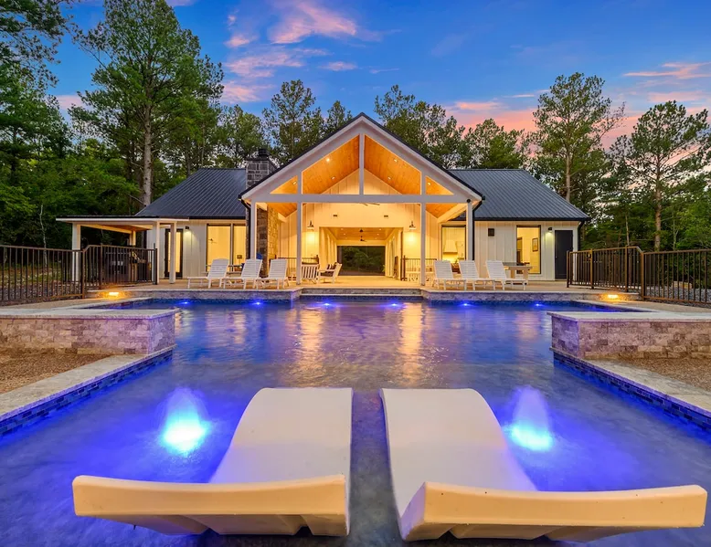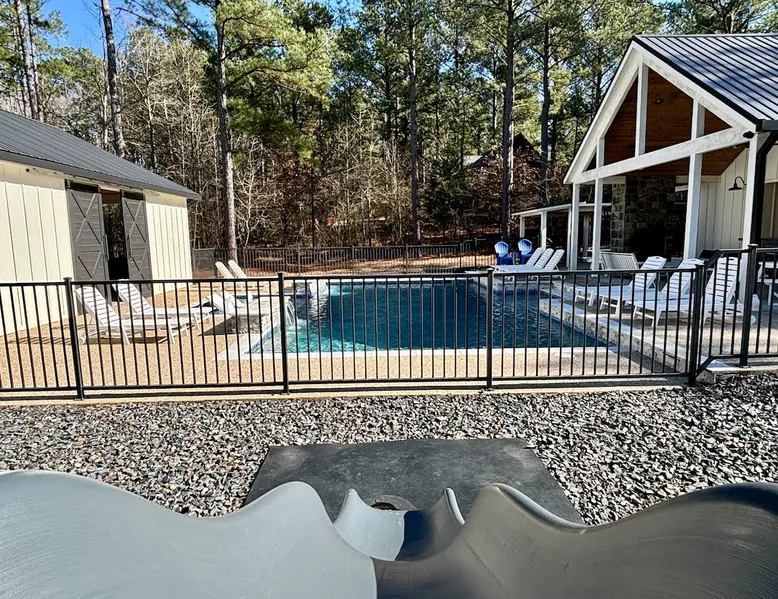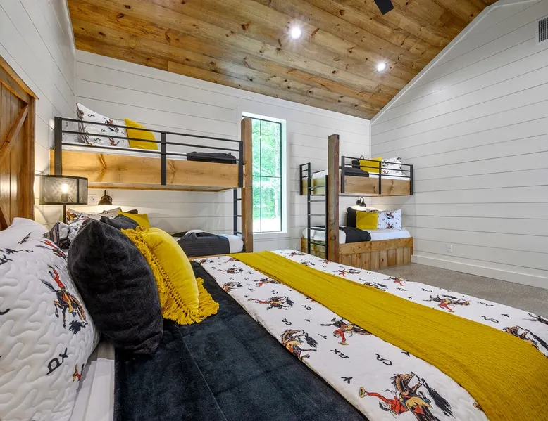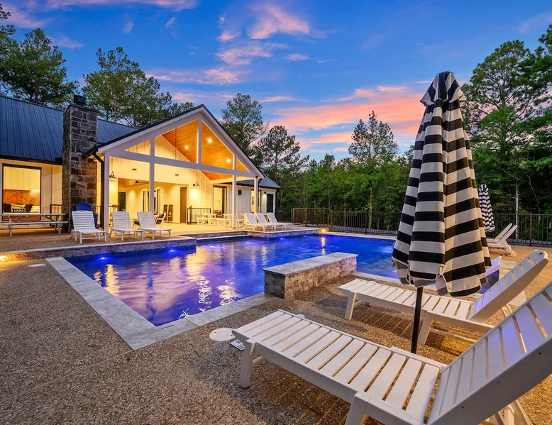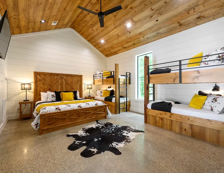 "Midnight Cowboy" Cabin Features & Fun ☆ Large private heated swimming pool (w/ optional heating for $125/day collected after booking) ☆ Large Hot Tub w/outdoor TV ☆ Outdoor Ping Pong Table ☆ Arcade (100+ games) ☆ Shuffleboard ☆ Pool Table ☆ 4 private king bedrooms with ensuite bathrooms ☆ Outdoor kids playset ☆ Indoor/Outdoor Fireplaces ☆ Well equipped kitchen ☆ BBQ grill ☆ Corn Hole ☆ Smart TVs w/ Amazon Prime, Disney+, Hulu, Netflix, etc The space ☆ Outdoor seating galore; Adirondack chairs & outdoor dining table ☆ Circle drive to pull your boat or ATVs ☆ 2 acre private lot ☆ Fast, free wifi ☆ In cabin washer + dryer ☆ Tastefully decorated with high quality furnishings ☆ Private backyard, back patio to enjoy tranquil country living ☆ Convenient to many area attractions. Step into the Midnight Cowboy Cabin, where luxury meets nature. Enjoy your own private swimming pool, relax in a hot tub with stunning views, and gather around a warm, crackling fire pit. Roast some smores, challenge someone to a game of ping pong or cozy up by the fireplace with your favorite book. This modern cabin in Broken Bow offers the perfect balance of natural beauty and luxury for an unforgettable vacation. ★ OUTDOOR SPACE★ Experience the natural beauty of Broken Bow at every turn when you stay at the Midnight Cowboy. This outdoor arena combines luxury and nature into a unique setting. It will be hard to pick your favorite area. Will it be nestled up next to the fireplace, soaking in the hot tub, splashing in the pool, exploring the playset, telling stories at the firepit or having a ping pong tournament. But that is not all... Enjoy outdoor dining, sunbathing, watching movies or challenging someone to a game of corn hole. Certainly, one of the best outdoor areas you will find in Broken Bow and guaranteed to create lasting memories for your family and friends. Features: ★ Spacious deck with a stunning view of nature ★ Outdoor games: ping pong table and corn hole boards ★ Outdoor patio with a wood-burning fireplace ★ Resort-style, heated outdoor swimming pool (or cold plunge in the winter if you prefer) ★ Swing set for kids ★ Covered hot tub with LED lighting & HDTV ★ Outdoor propane gas grill ★ Custom-built Lang smoker ★ Firepit ★ Hot Tub ★ Boat parking ★ Circle drive with parking for 15+ cars ★★ BEDROOMS + BUNK/GAME AREA ★★ The luxurious bedrooms combine modern luxury with ultimate comfort and fun. Let the beauty of nature flow through windows in each bedroom. 3 king bedrooms have their own private ensuite bathroom, and the 4th is a family style bunk house, perfect for whole family or group of friends to share. ★ 1st Bedroom (west wing): King-sized bed, TV, closet + private ensuite bath ★ 2nd Bedroom (east wing left): King-sized bed, TV, closet + private ensuite bath ★ 3rd Bedroom (east wing right): King-sized bed, TV, closet + private ensuite bath ★ Game/Loft Area (east wing main): 4 twin beds (3 upstairs/1 downstairs), arcade game, shuffleboard, pool table, TV + separate full bath downstairs ★ 4th Bedroom + Bunk Area (pool side): King-sized bed + 2 bunk beds (4 twins), TV, closet + shared full bath ★★LIVING ROOM & KITCHEN★★ Beautiful wood floor panels stretch out as far as the eye can see across the open-concept living room. Coupled with the high ceilings and incredible views, you’ll feel a sense of space and wonder from the moment you step inside. Relax on the comfy couch in front of the fireplace, enjoy your favorite shows on the smart TV, or simply soak in the awesome views. ✔ Gas fireplace ✔ Large flat-screen HDTV ✔ Comfy couch, poufs + accent chairs ✔ Fully equipped kitchen w/ modern appliances (including oversized fridge/freezer, dishwasher + stove) ✔ Complimentary coffee bar w/ a Keurig coffee machine (K-Cups provided) ✔ Basic cookware + dinnerware ✔ Beautiful Island & dining areas w/ ample seating for 14. Additional seating outside by the pool. Looking for a cabin to rent, multi-family getaway or romantic retreat near you? “Midnight Cowboy” in Broken Bow Oklahoma is conveniently located a short drive from Dallas, Fort Worth, Oklahoma City, Tulsa, Little Rock and Shreveport. Whether you are looking for a quick trip, weekend getaway or a long relaxing vacation, this chalet is one of the best fun trips that you must do. You are guaranteed to have a wonderful time! Broken Bow and Hochatown, Oklahoma means you are just a short drive away from wonderful nature activities (Broken Bow Lake is a must-visit!), hiking trails, and delicious restaurants. ☆☆ DISTANCE TO AREA ATTRACTIONS ☆☆ 14 Mins Drive to Broken Bow Lake 5 Mins Drive to Hochatown Petting Zoo 4 Mins Drive to Beavers Bend Brewery 4 Mins to Girls Gone Wine 16 Mins to Beavers Bend Train Depot 7 Mins to the new casino Choctaw Landing 5 Mins to many restaurants 17 Mins to Pruetts Grocery Store and Walmart ★☆ Book Today & Let Us Host You in Broken Bow! ☆★ Guest access As guests, your group will have this entire cozy cabin all to yourselves. This includes comfy bedrooms, cozy living spaces tastefully decorated furnishings, and amazing outdoor amenities. There’s plenty of free parking on the property with a circle drive so bring your boat or ATV. Fast wifi is available throughout the property, so you’ll be able to stream for fun or work. Other things to note POOL AVAILABIILITY & HEATING The pool is available year-round. We’re happy to heat the pool for you for just $125/day, since those propane heaters work hard (and aren’t cheap)! Please request 24 hours in advance so the pool has time to heat up. Heating of the pool is available only from Sept 15th to May 15th and can be heated to a comfortable 85 degrees. ACCESS: Check in is at 4pm and checkout is at 10am. We are not able to accommodate early or late checkins/outs during busy times or same day checkins/outs for guests. The property features self-checkin using an e