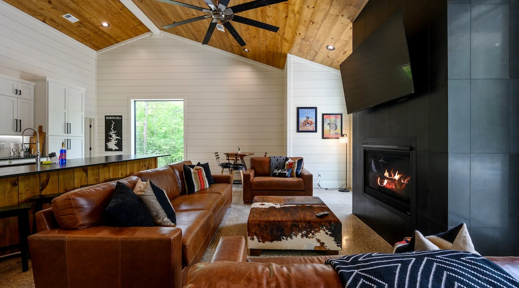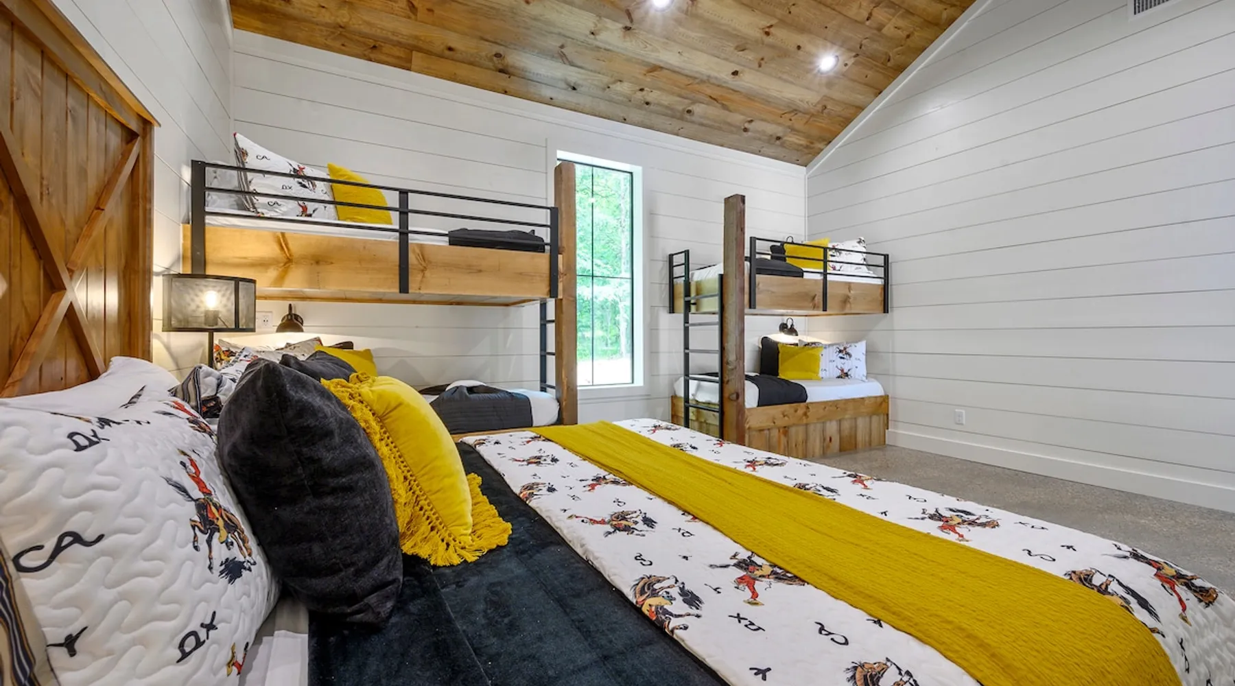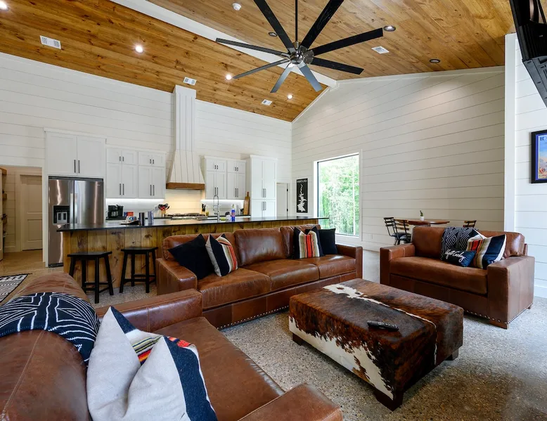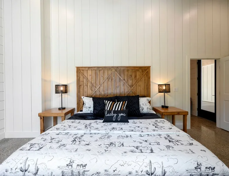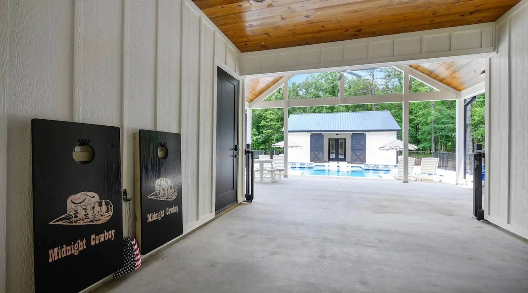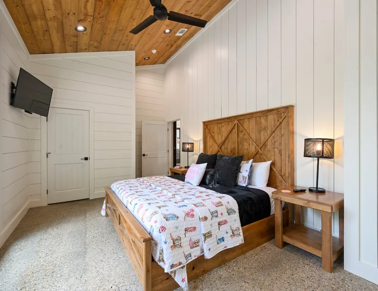 "Midnight Cowboy" Cabin Features & Fun ☆ Large private heated swimming pool (w/ optional heating for $125/day collected after booking) ☆ Large Hot Tub w/outdoor TV ☆ Outdoor Ping Pong Table ☆ Arcade (100+ games) ☆ Shuffleboard ☆ Pool Table ☆ 4 private king bedrooms with ensuite bathrooms ☆ Outdoor kids playset ☆ Indoor/Outdoor Fireplaces ☆ Well equipped kitchen ☆ BBQ grill ☆ Corn Hole ☆ Smart TVs w/ Amazon Prime, Disney+, Hulu, Netflix, etc The space ☆ Outdoor seating galore; Adirondack chairs & outdoor dining table ☆ Circle drive to pull your boat or ATVs ☆ 2 acre private lot ☆ Fast, free wifi ☆ In cabin washer + dryer ☆ Tastefully decorated with high quality furnishings ☆ Private backyard, back patio to enjoy tranquil country living ☆ Convenient to many area attractions. Step into the Midnight Cowboy Cabin, where luxury meets nature. Enjoy your own private swimming pool, relax in a hot tub with stunning views, and gather around a warm, crackling fire pit. Roast some smores, challenge someone to a game of ping pong or cozy up by the fireplace with your favorite book. This modern cabin in Broken Bow offers the perfect balance of natural beauty and luxury for an unforgettable vacation. ★ OUTDOOR SPACE★ Experience the natural beauty of Broken Bow at every turn when you stay at the Midnight Cowboy. This outdoor arena combines luxury and nature into a unique setting. It will be hard to pick your favorite area. Will it be nestled up next to the fireplace, soaking in the hot tub, splashing in the pool, exploring the playset, telling stories at the firepit or having a ping pong tournament. But that is not all... Enjoy outdoor dining, sunbathing, watching movies or challenging someone to a game of corn hole. Certainly, one of the best outdoor areas you will find in Broken Bow and guaranteed to create lasting memories for your family and friends. Features: ★ Spacious deck with a stunning view of nature ★ Outdoor games: ping pong table and corn hole boards ★ Outdoor patio with a wood-burning fireplace ★ Resort-style, heated outdoor swimming pool (or cold plunge in the winter if you prefer) ★ Swing set for kids ★ Covered hot tub with LED lighting & HDTV ★ Outdoor propane gas grill ★ Custom-built Lang smoker ★ Firepit ★ Hot Tub ★ Boat parking ★ Circle drive with parking for 15+ cars ★★ BEDROOMS + BUNK/GAME AREA ★★ The luxurious bedrooms combine modern luxury with ultimate comfort and fun. Let the beauty of nature flow through windows in each bedroom. 3 king bedrooms have their own private ensuite bathroom, and the 4th is a family style bunk house, perfect for whole family or group of friends to share. ★ 1st Bedroom (west wing): King-sized bed, TV, closet + private ensuite bath ★ 2nd Bedroom (east wing left): King-sized bed, TV, closet + private ensuite bath ★ 3rd Bedroom (east wing right): King-sized bed, TV, closet + private ensuite bath ★ Game/Loft Area (east wing main): 4 twin beds (3 upstairs/1 downstairs), arcade game, shuffleboard, pool table, TV + separate full bath downstairs ★ 4th Bedroom + Bunk Area (pool side): King-sized bed + 2 bunk beds (4 twins), TV, closet + shared full bath ★★LIVING ROOM & KITCHEN★★ Beautiful wood floor panels stretch out as far as the eye can see across the open-concept living room. Coupled with the high ceilings and incredible views, you’ll feel a sense of space and wonder from the moment you step inside. Relax on the comfy couch in front of the fireplace, enjoy your favorite shows on the smart TV, or simply soak in the awesome views. ✔ Gas fireplace ✔ Large flat-screen HDTV ✔ Comfy couch, poufs + accent chairs ✔ Fully equipped kitchen w/ modern appliances (including oversized fridge/freezer, dishwasher + stove) ✔ Complimentary coffee bar w/ a Keurig coffee machine (K-Cups provided) ✔ Basic cookware + dinnerware ✔ Beautiful Island & dining areas w/ ample seating for 14. Additional seating outside by the pool. Looking for a cabin to rent, multi-family getaway or romantic retreat near you? “Midnight Cowboy” in Broken Bow Oklahoma is conveniently located a short drive from Dallas, Fort Worth, Oklahoma City, Tulsa, Little Rock and Shreveport. Whether you are looking for a quick trip, weekend getaway or a long relaxing vacation, this chalet is one of the best fun trips that you must do. You are guaranteed to have a wonderful time! Broken Bow and Hochatown, Oklahoma means you are just a short drive away from wonderful nature activities (Broken Bow Lake is a must-visit!), hiking trails, and delicious restaurants. ☆☆ DISTANCE TO AREA ATTRACTIONS ☆☆ 14 Mins Drive to Broken Bow Lake 5 Mins Drive to Hochatown Petting Zoo 4 Mins Drive to Beavers Bend Brewery 4 Mins to Girls Gone Wine 16 Mins to Beavers Bend Train Depot 7 Mins to the new casino Choctaw Landing 5 Mins to many restaurants 17 Mins to Pruetts Grocery Store and Walmart ★☆ Book Today & Let Us Host You in Broken Bow! ☆★ Guest access As guests, your group will have this entire cozy cabin all to yourselves. This includes comfy bedrooms, cozy living spaces tastefully decorated furnishings, and amazing outdoor amenities. There’s plenty of free parking on the property with a circle drive so bring your boat or ATV. Fast wifi is available throughout the property, so you’ll be able to stream for fun or work. Other things to note POOL AVAILABIILITY & HEATING The pool is available year-round. We’re happy to heat the pool for you for just $125/day, since those propane heaters work hard (and aren’t cheap)! Please request 24 hours in advance so the pool has time to heat up. Heating of the pool is available only from Sept 15th to May 15th and can be heated to a comfortable 85 degrees. ACCESS: Check in is at 4pm and checkout is at 10am. We are not able to accommodate early or late checkins/outs during busy times or same day checkins/outs for guests. The property features self-checkin using an e
