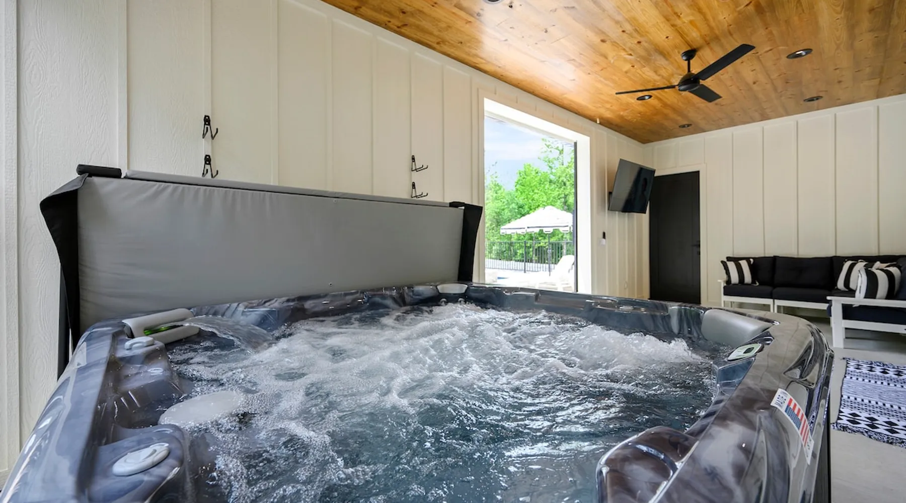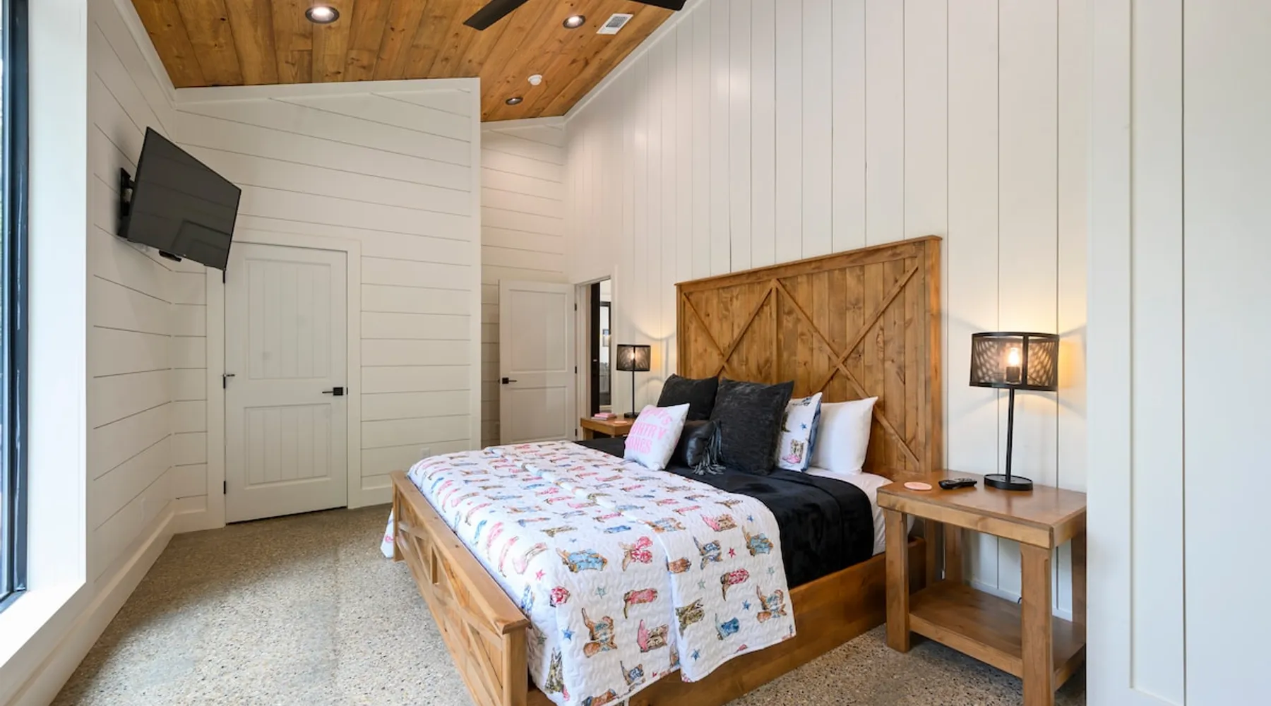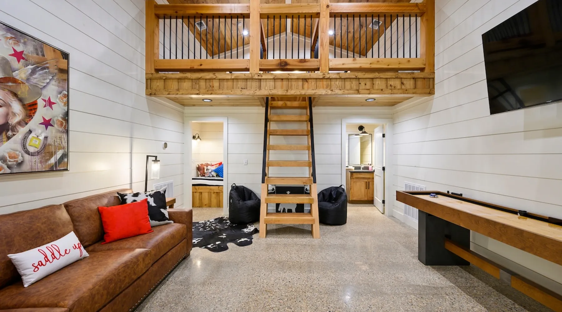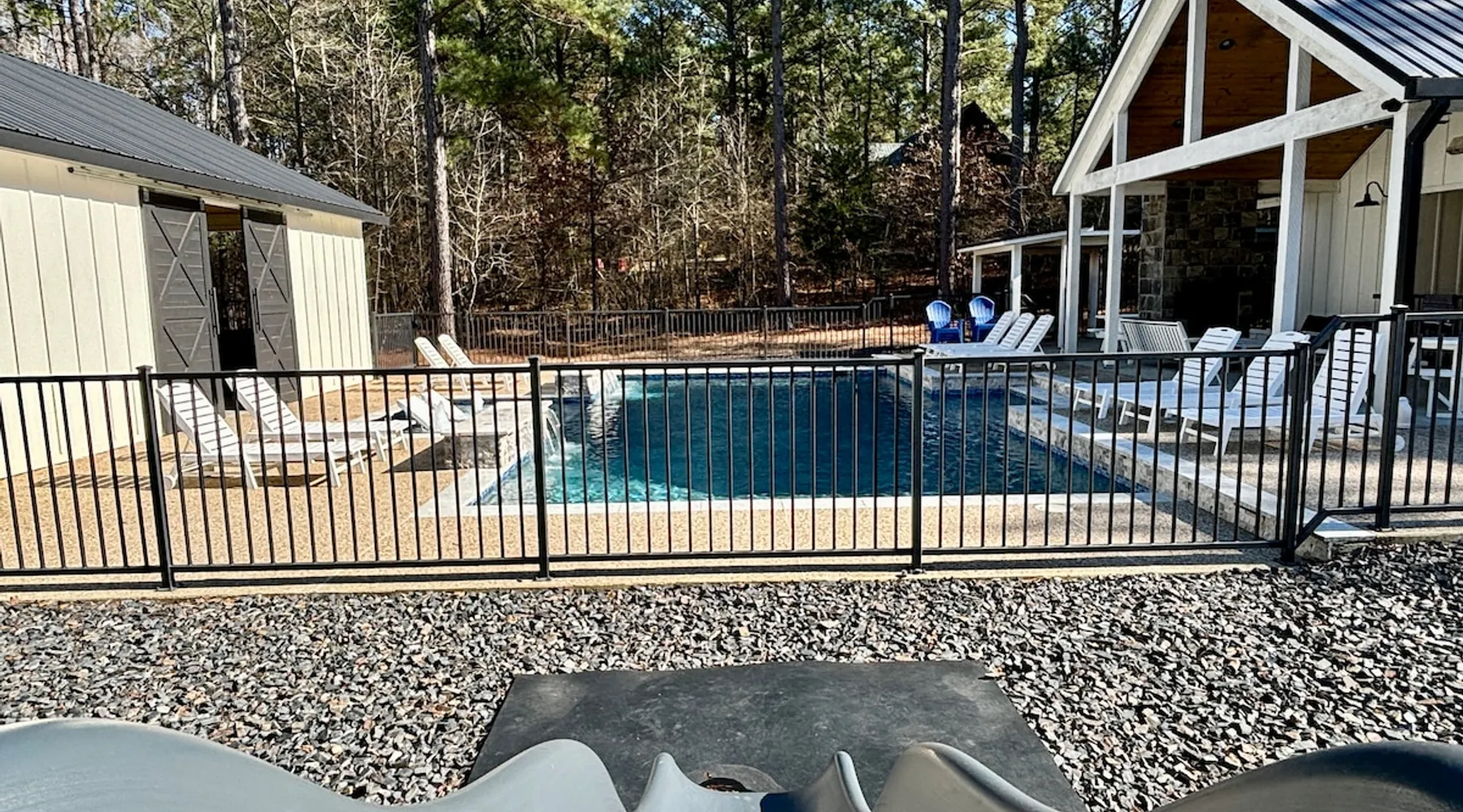 "Midnight Cowboy" Cabin Features & Fun ☆ Large private heated swimming pool (w/ optional heating for $125/day collected after booking) ☆ Large Hot Tub w/outdoor TV ☆ Outdoor Ping Pong Table ☆ Arcade (100+ games) ☆ Shuffleboard ☆ Pool Table ☆ 4 private king bedrooms with ensuite bathrooms ☆ Outdoor kids playset ☆ Indoor/Outdoor Fireplaces ☆ Well equipped kitchen ☆ BBQ grill ☆ Corn Hole ☆ Smart TVs w/ Amazon Prime, Disney+, Hulu, Netflix, etc The space ☆ Outdoor seating galore; Adirondack chairs & outdoor dining table ☆ Circle drive to pull your boat or ATVs ☆ 2 acre private lot ☆ Fast, free wifi ☆ In cabin washer + dryer ☆ Tastefully decorated with high quality furnishings ☆ Private backyard, back patio to enjoy tranquil country living ☆ Convenient to many area attractions. Step into the Midnight Cowboy Cabin, where luxury meets nature. Enjoy your own private swimming pool, relax in a hot tub with stunning views, and gather around a warm, crackling fire pit. Roast some smores, challenge someone to a game of ping pong or cozy up by the fireplace with your favorite book. This modern cabin in Broken Bow offers the perfect balance of natural beauty and luxury for an unforgettable vacation. ★ OUTDOOR SPACE★ Experience the natural beauty of Broken Bow at every turn when you stay at the Midnight Cowboy. This outdoor arena combines luxury and nature into a unique setting. It will be hard to pick your favorite area. Will it be nestled up next to the fireplace, soaking in the hot tub, splashing in the pool, exploring the playset, telling stories at the firepit or having a ping pong tournament. But that is not all... Enjoy outdoor dining, sunbathing, watching movies or challenging someone to a game of corn hole. Certainly, one of the best outdoor areas you will find in Broken Bow and guaranteed to create lasting memories for your family and friends. Features: ★ Spacious deck with a stunning view of nature ★ Outdoor games: ping pong table and corn hole boards ★ Outdoor patio with a wood-burning fireplace ★ Resort-style, heated outdoor swimming pool (or cold plunge in the winter if you prefer) ★ Swing set for kids ★ Covered hot tub with LED lighting & HDTV ★ Outdoor propane gas grill ★ Custom-built Lang smoker ★ Firepit ★ Hot Tub ★ Boat parking ★ Circle drive with parking for 15+ cars ★★ BEDROOMS + BUNK/GAME AREA ★★ The luxurious bedrooms combine modern luxury with ultimate comfort and fun. Let the beauty of nature flow through windows in each bedroom. 3 king bedrooms have their own private ensuite bathroom, and the 4th is a family style bunk house, perfect for whole family or group of friends to share. ★ 1st Bedroom (west wing): King-sized bed, TV, closet + private ensuite bath ★ 2nd Bedroom (east wing left): King-sized bed, TV, closet + private ensuite bath ★ 3rd Bedroom (east wing right): King-sized bed, TV, closet + private ensuite bath ★ Game/Loft Area (east wing main): 4 twin beds (3 upstairs/1 downstairs), arcade game, shuffleboard, pool table, TV + separate full bath downstairs ★ 4th Bedroom + Bunk Area (pool side): King-sized bed + 2 bunk beds (4 twins), TV, closet + shared full bath ★★LIVING ROOM & KITCHEN★★ Beautiful wood floor panels stretch out as far as the eye can see across the open-concept living room. Coupled with the high ceilings and incredible views, you’ll feel a sense of space and wonder from the moment you step inside. Relax on the comfy couch in front of the fireplace, enjoy your favorite shows on the smart TV, or simply soak in the awesome views. ✔ Gas fireplace ✔ Large flat-screen HDTV ✔ Comfy couch, poufs + accent chairs ✔ Fully equipped kitchen w/ modern appliances (including oversized fridge/freezer, dishwasher + stove) ✔ Complimentary coffee bar w/ a Keurig coffee machine (K-Cups provided) ✔ Basic cookware + dinnerware ✔ Beautiful Island & dining areas w/ ample seating for 14. Additional seating outside by the pool. Looking for a cabin to rent, multi-family getaway or romantic retreat near you? “Midnight Cowboy” in Broken Bow Oklahoma is conveniently located a short drive from Dallas, Fort Worth, Oklahoma City, Tulsa, Little Rock and Shreveport. Whether you are looking for a quick trip, weekend getaway or a long relaxing vacation, this chalet is one of the best fun trips that you must do. You are guaranteed to have a wonderful time! Broken Bow and Hochatown, Oklahoma means you are just a short drive away from wonderful nature activities (Broken Bow Lake is a must-visit!), hiking trails, and delicious restaurants. ☆☆ DISTANCE TO AREA ATTRACTIONS ☆☆ 14 Mins Drive to Broken Bow Lake 5 Mins Drive to Hochatown Petting Zoo 4 Mins Drive to Beavers Bend Brewery 4 Mins to Girls Gone Wine 16 Mins to Beavers Bend Train Depot 7 Mins to the new casino Choctaw Landing 5 Mins to many restaurants 17 Mins to Pruetts Grocery Store and Walmart ★☆ Book Today & Let Us Host You in Broken Bow! ☆★ Guest access As guests, your group will have this entire cozy cabin all to yourselves. This includes comfy bedrooms, cozy living spaces tastefully decorated furnishings, and amazing outdoor amenities. There’s plenty of free parking on the property with a circle drive so bring your boat or ATV. Fast wifi is available throughout the property, so you’ll be able to stream for fun or work. Other things to note POOL AVAILABIILITY & HEATING The pool is available year-round. We’re happy to heat the pool for you for just $125/day, since those propane heaters work hard (and aren’t cheap)! Please request 24 hours in advance so the pool has time to heat up. Heating of the pool is available only from Sept 15th to May 15th and can be heated to a comfortable 85 degrees. ACCESS: Check in is at 4pm and checkout is at 10am. We are not able to accommodate early or late checkins/outs during busy times or same day checkins/outs for guests. The property features self-checkin using an e