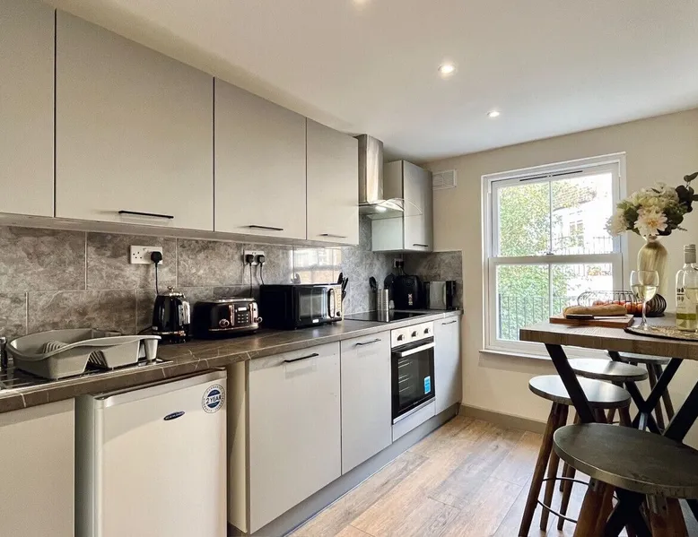 ✪ Prime Location with Easy Access to Public Transport ✪ Double Bed ✪ Modern Bathroom with Luxury Finishes ✪ Kitchenette Tea/Coffee Facilities & Fridge-Freezer ✪ Shared Full Kitchen In The Building ✪ High-Speed WiFi & Smart TV for Relaxation ✪ Premium Co-living Studio near Battersea Park ✪ We Can Accommodate Large Groups – 9 Studios Available ✪ Self-Check-In via Keynest for Hassle-Free Entry ✪ Perfect for Both Business & Leisure Travelers ✪ Short Walk to Dining, Shopping, & Cultural Attractions Welcome to your Premium Co-Living Experience Near Battersea Park Our thoughtfully designed studio offers more than just a place to stay—it's a space where comfort, community, and convenience come together for the modern traveller. Ideally located steps from vibrant Battersea High Street and near the lush Battersea Park, this stylish retreat is perfect for travellers looking to experience the best of London. Whether you're visiting for work or leisure, this thoughtfully designed space ensures your comfort and convenience. ➤ Living Area Cozy double bed with plush linens for a restful night's sleep Ambient lighting, chic décor, and a seating area for relaxing Smart TV with access to streaming services High-speed Virgin broadband to stay connected Work-friendly desk space, ideal for business travellers. ➤ Kitchenette Tea and coffee-making facilities to start your day right Fridge-freezer for storing your snacks and drinks Access to communal kitchens, fully equipped with microwaves, toasters, and kettles, so you can easily prepare meals. ➤ Bathroom Modern bathroom with stylish fixtures and finishes Fresh towels, toiletries, and a rainfall shower for a touch of luxury ➤ Amenities The washing machine and dryer are available in the communal kitchen on the 2nd floor (shared during sociable hours) Electrical radiator with adjustable temperature to ensure year-round comfort ➤ Access & Security Easy self-check-in via Keynest, allowing for a seamless arrival experience Comprehensive fire alarm system and emergency lighting for your safety. ➤ Location & Transport Battersea Park: Just a 13-minute walk for leisurely strolls and outdoor activities. Clapham Junction Station: A 9-minute walk, giving you quick access to Central London. Local bus stop a minute away, making it easy to explore the city. Nearby car parks available for additional fees, as there is no on-site parking. Our beautiful studio is surrounded by some of London’s top dining and cultural hotspots, including the vibrant Northcote Road and the iconic Battersea Power Station development, both just a short drive away. Whether you're staying for a few days or an extended period, our property offers the perfect blend of comfort, style, and convenience. Our mission is to provide a premium co-living experience, blending exceptional service with a sense of connection. Whether you’re here for business or pleasure, we strive to make every guest feel at home, surrounded by a welcoming community. With 9 studio units available, we can accommodate large groups and longer stays—contact us for competitive rates and book your unforgettable London experience today! The entire space is included in this listing. Please, make yourself at home. Self-check-in through Keynest for smooth access but we are a phone call away if needed. The keys can be collected from a nearby KeyNest location, which has limited hours of accessibility. You will receive the collection code shortly before arrival, once ID verification is complete. ✪ There are fully equipped communal kitchens in the building for your use. Please note you can meet other guests there. ✪ The apartment building is located on Battersea High Street which is a vibrant & bustling pedestrian street. ✪ There is no mailing service available. ✪ Get your daily step count with stair-only access in this building. ✪ This property requires a £500 refundable security deposit, with an alternative option of a £30 non-refundable deposit waiver. The security deposit is refunded within 14 working days post check-out, assuming no damage to the property. Superhog, our deposit management partner, will contact our guests to collect the payments on our behalf. This step is necessary to receive check-in instructions. We advise guests to complete this process before arrival to ensure a smooth check-in experience. Thank you for your cooperation. ✪ Important: Before you arrive you will be asked to complete guest verification through third-party provider Superhog. This is done to ensure we are keeping up-to-date with short-term rental regulations as well as providing both our guests and our properties with extra protection. Superhog will contact you via email and/or text to complete the verification. Please do so before arriving at the property to enable a quick and easy check-in process. ✪ Please wash your dishes and clean up after yourself in the communal kitchens. ✪ Please keep noise levels low for your neighbours and fellow guests. ✪ No smoking