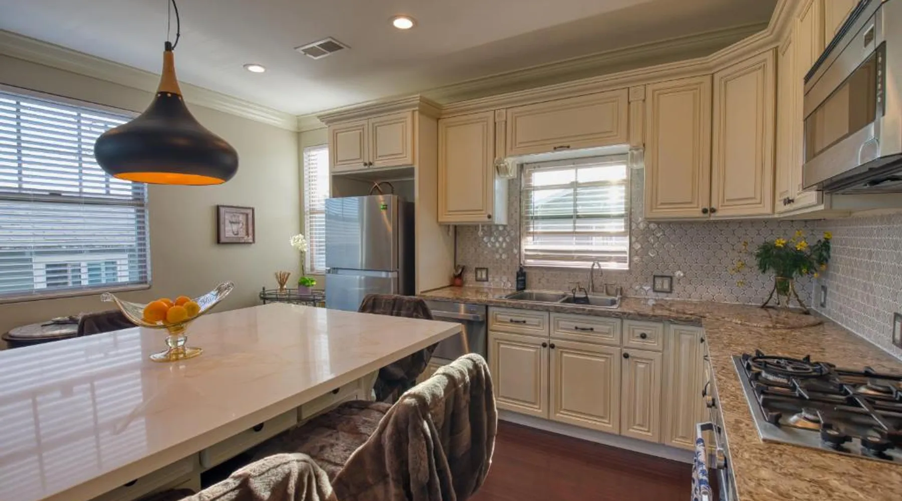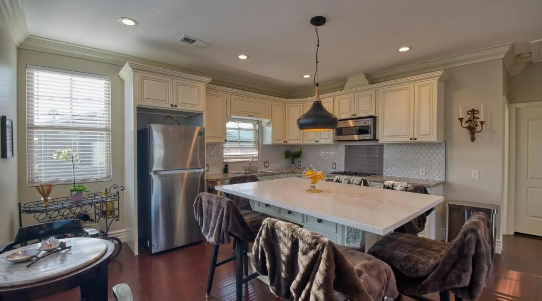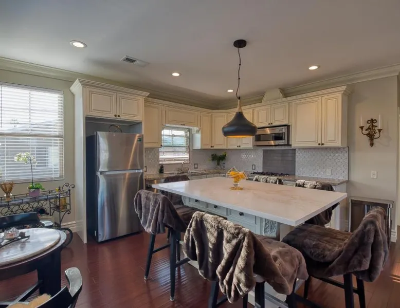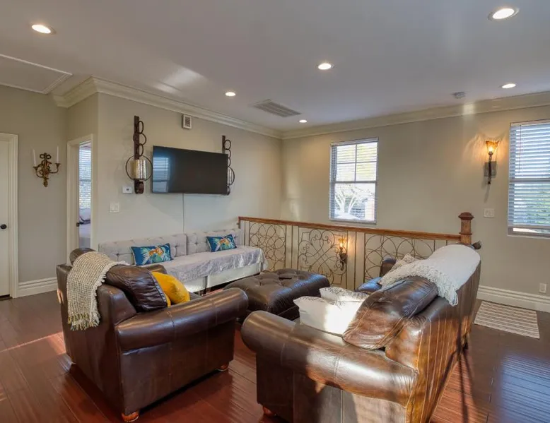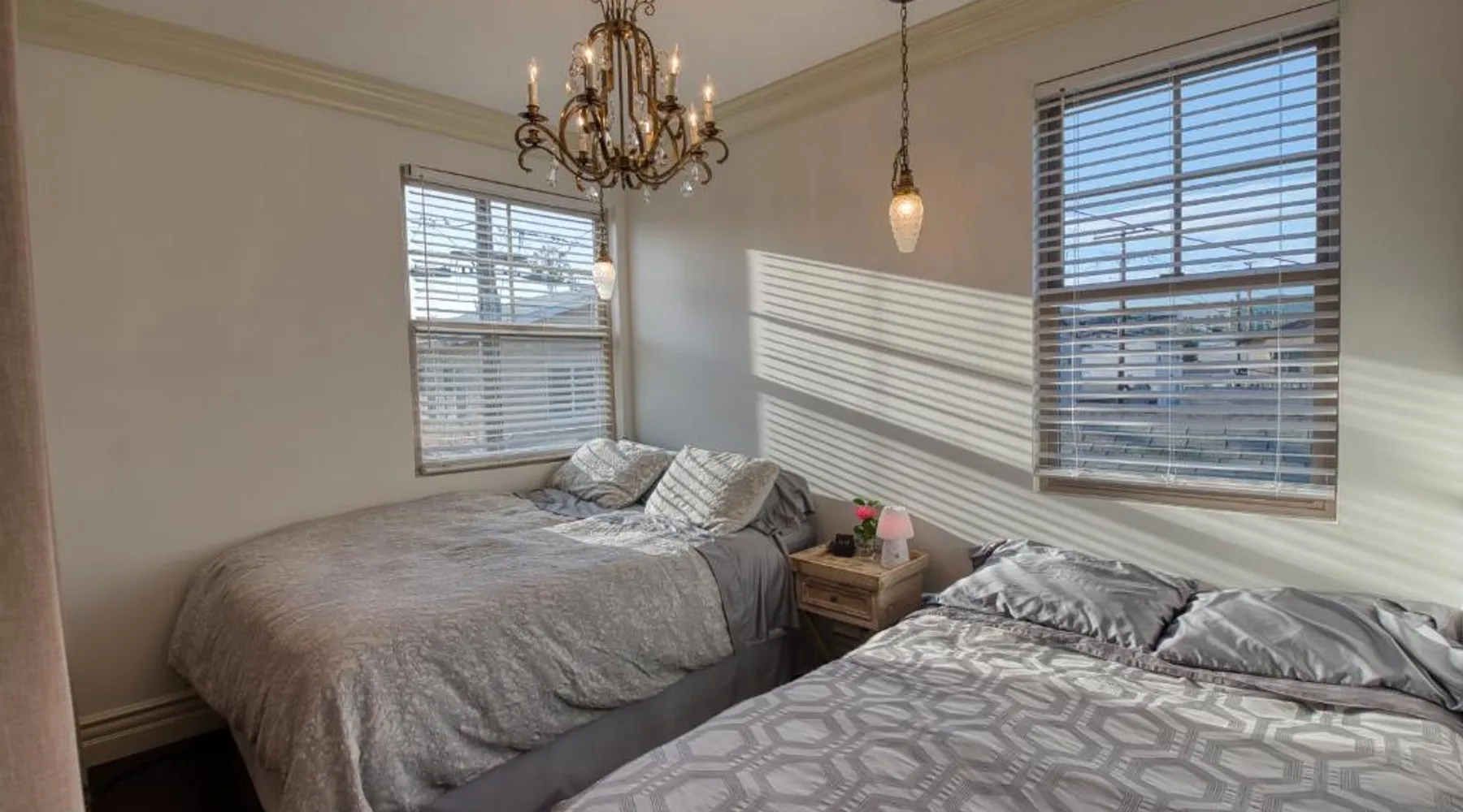 Spacious Accommodations: Luxury 2 bed 1 bath in Torrance offers a spacious apartment with two bedrooms and a bathroom. The property includes a terrace with city views, air-conditioning, and parquet floors. Modern Amenities: Guests enjoy free WiFi, free on-site private parking, and a fully equipped kitchen with a coffee machine, refrigerator, microwave, dishwasher, oven, stovetop, and toaster. Additional amenities include a washing machine, dining area, and wardrobe. Convenient Location: Located 6.8 mi from Hawthorne Municipal Airport, the apartment is near attractions such as Battleship Iowa Museum (8.1 mi), SoFi Stadium (9.9 mi), and Venice Beach Boardwalk (19 mi). Highly rated by guests. The well-fitted kitchen has a stovetop, a refrigerator, a dishwasher and kitchenware. The spacious air-conditioned apartment features a flat-screen TV, a washing machine, a private entrance, a coffee machine as well as city views. The unit has 4 beds.