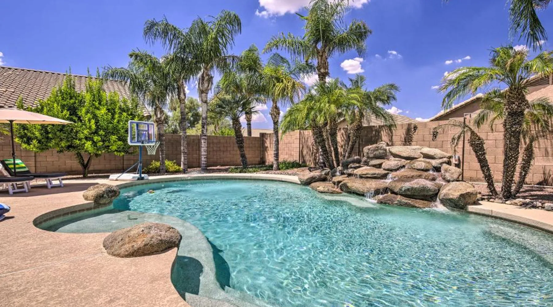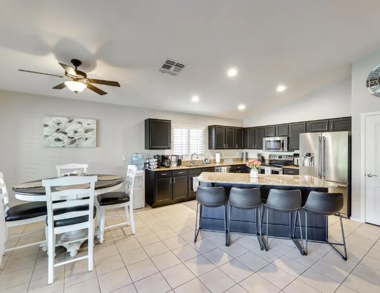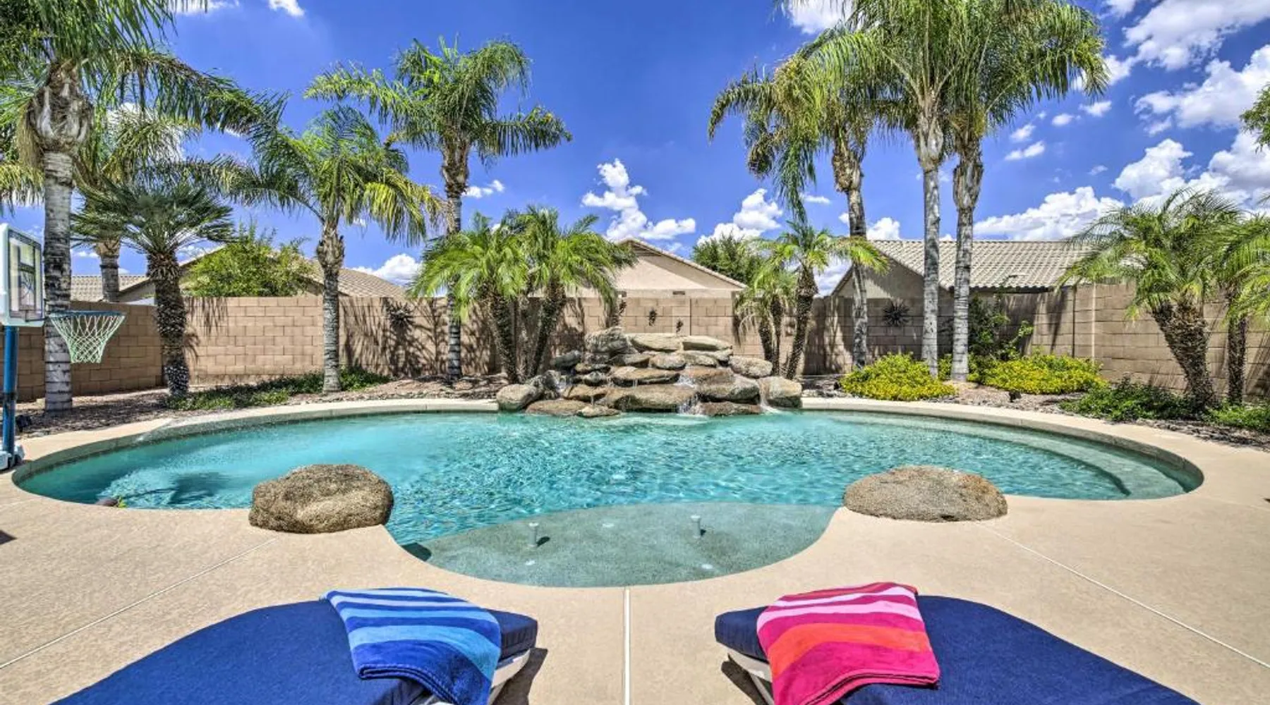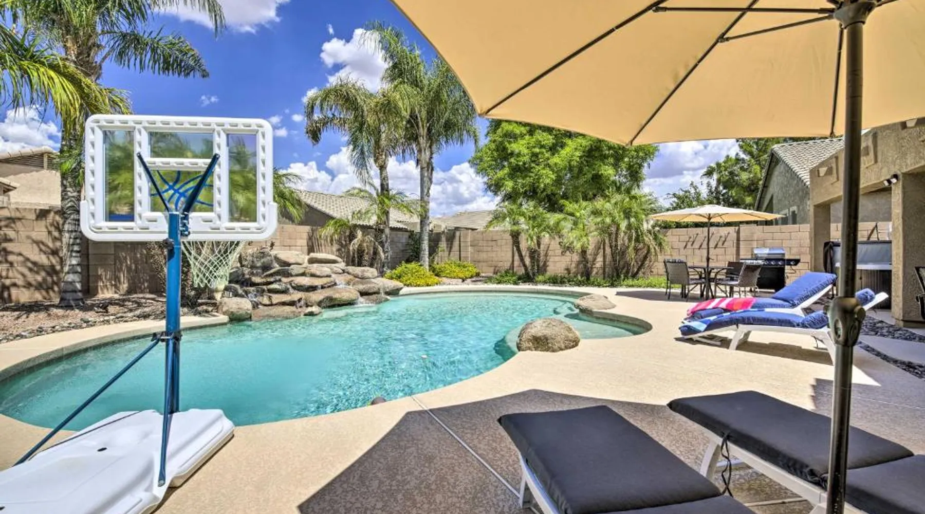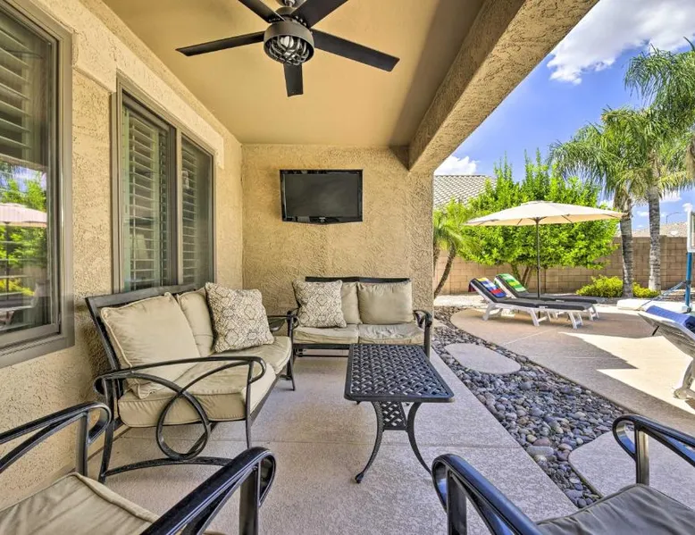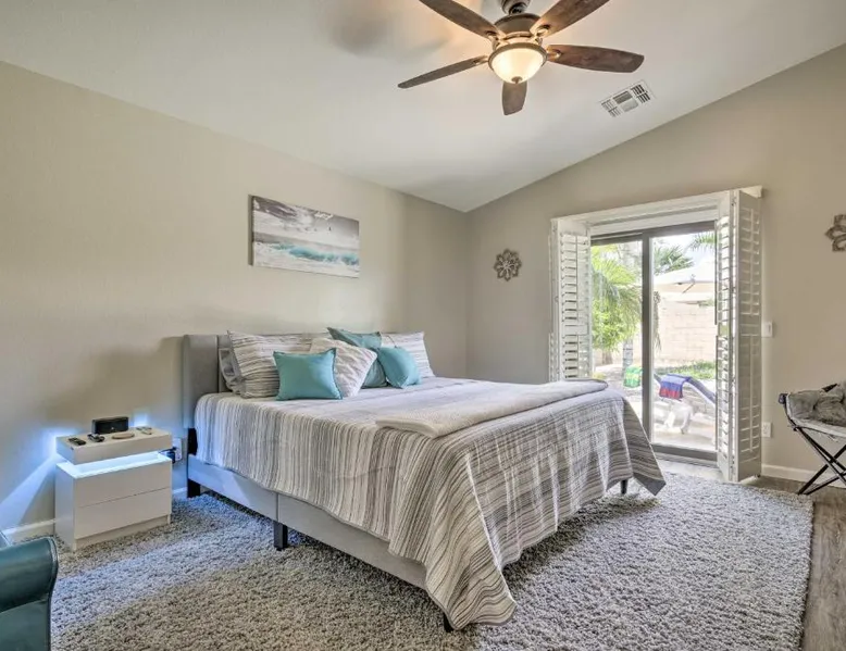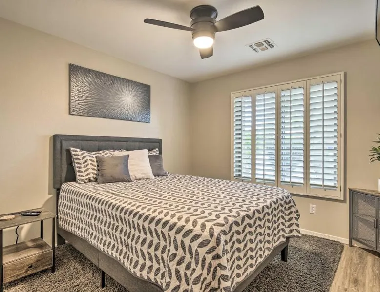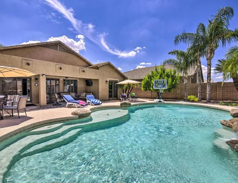 Spacious Accommodations: Pool, Hot Tub and Patio Mesa Oasis Desert Getaway in Mesa offers a spacious holiday home with three bedrooms and two bathrooms. The ground-floor unit features a living room and a fully equipped kitchen. Outdoor Amenities: Guests can enjoy an outdoor swimming pool, hot tub, and patio. The property includes a washing machine, barbecue, and outdoor dining area. Free WiFi is available throughout the stay. Convenient Location: Located 6.2 mi from Phenix-Mesa Gateway Airport, the holiday home is near attractions such as Sea Life Arizona (22 mi) and Phenix Zoo (25 mi). Paid on-site parking is provided. This holiday home's special features are the private pool and the hot tub. Boasting a private entrance, this air-conditioned holiday home includes 1 living room, 3 separate bedrooms and 2 bathrooms with a bath and a shower. Guests will find a stovetop, a refrigerator, a dishwasher and kitchenware in the kitchen. The holiday home also features a barbecue. The spacious holiday home offers a washing machine, a coffee machine, a wardrobe, tumble dryer, as well as a flat-screen TV with cable channels. The unit has 4 beds.