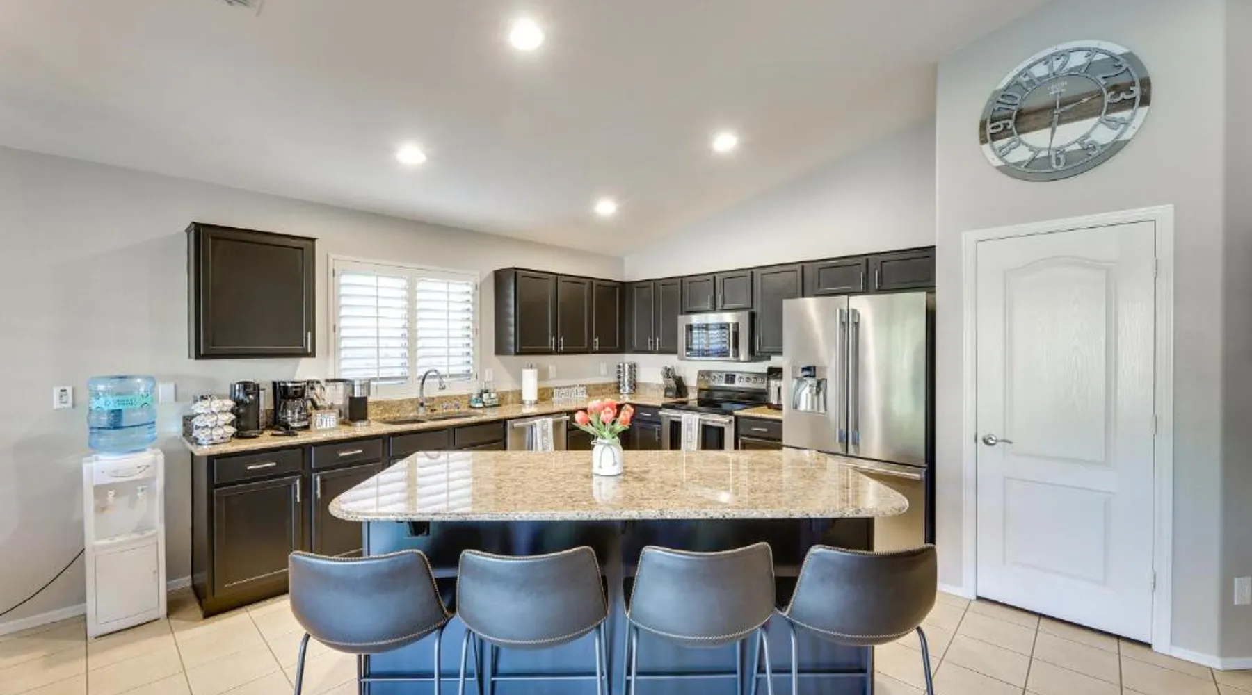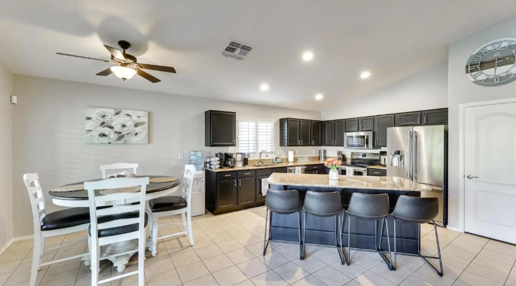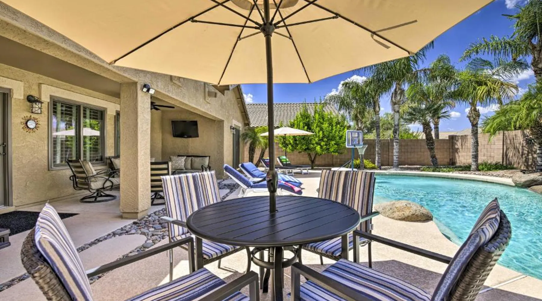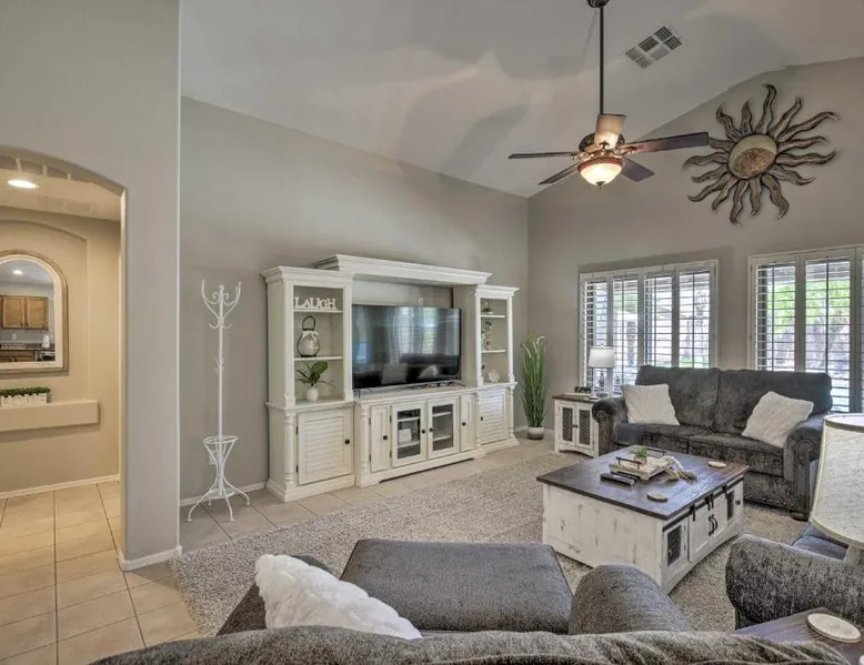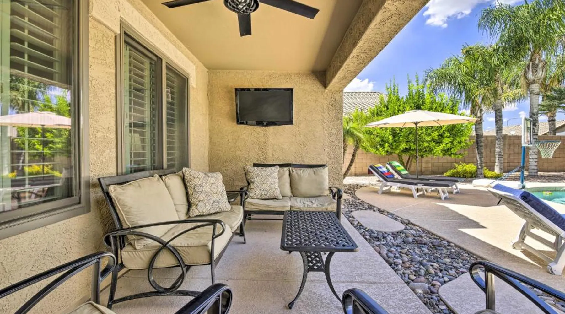 Spacious Accommodations: Pool, Hot Tub and Patio Mesa Oasis Desert Getaway in Mesa offers a spacious holiday home with three bedrooms and two bathrooms. The ground-floor unit features a living room and a fully equipped kitchen. Outdoor Amenities: Guests can enjoy an outdoor swimming pool, hot tub, and patio. The property includes a washing machine, barbecue, and outdoor dining area. Free WiFi is available throughout the stay. Convenient Location: Located 6.2 mi from Phenix-Mesa Gateway Airport, the holiday home is near attractions such as Sea Life Arizona (22 mi) and Phenix Zoo (25 mi). Paid on-site parking is provided. This holiday home's special features are the private pool and the hot tub. Boasting a private entrance, this air-conditioned holiday home includes 1 living room, 3 separate bedrooms and 2 bathrooms with a bath and a shower. Guests will find a stovetop, a refrigerator, a dishwasher and kitchenware in the kitchen. The holiday home also features a barbecue. The spacious holiday home offers a washing machine, a coffee machine, a wardrobe, tumble dryer, as well as a flat-screen TV with cable channels. The unit has 4 beds.