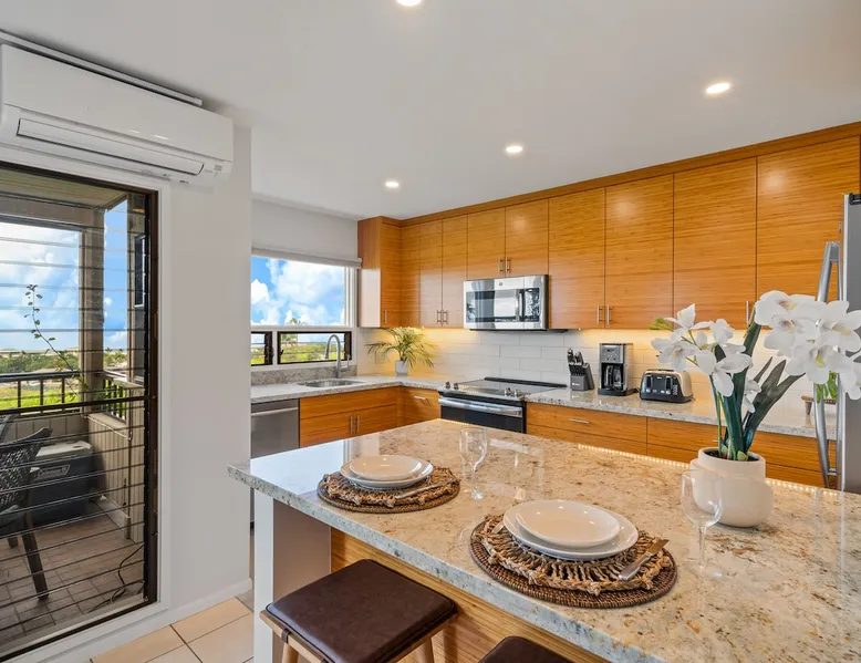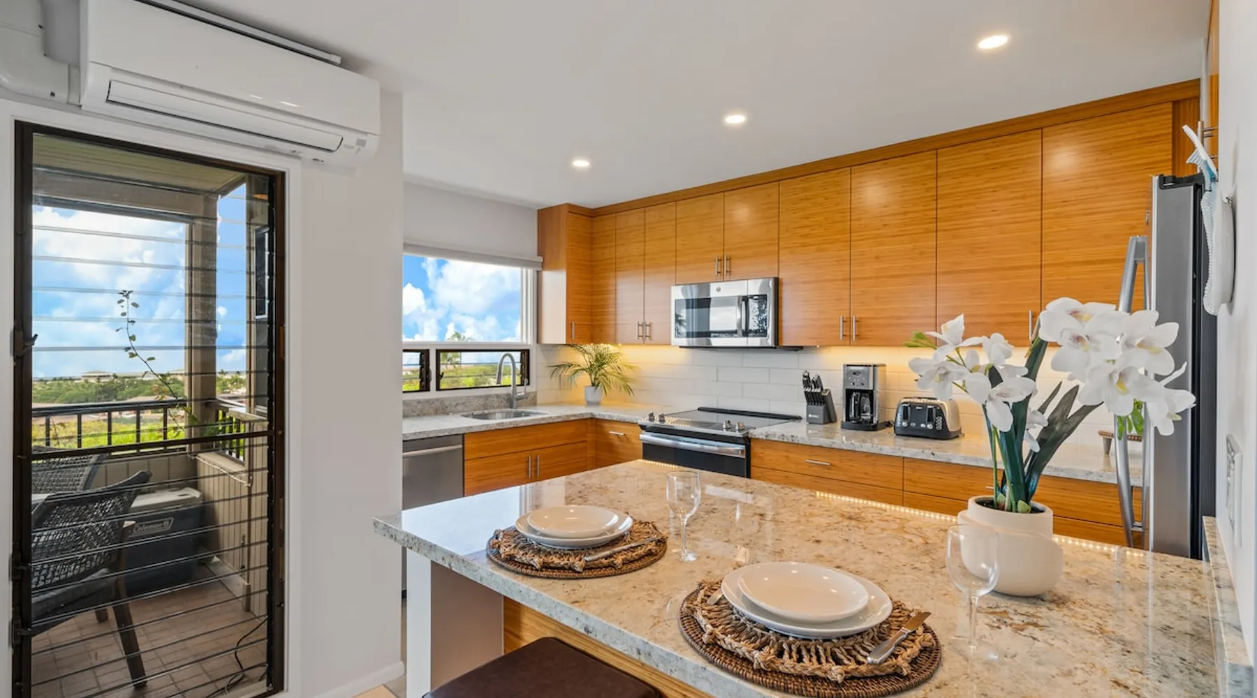 Wailea Ekolu 907 NEW listing! The space FREE daily activities included with your stay value up to $956! Complimentary admission, every day of your stay*: Lu’au, Golf, Whale Watching (seasonal), Sunset Dinner Cruise, Molokini Snorkel Trip, Alpaca Farm Tour, Pineapple Farm Tour, and Tea Farm Tour. (S3) *One ticket per activity per day. Additional details provided after confirmed booking. Discover the luxury and beauty of Wailea from this spacious, well-appointed 2-bedroom, 2-bathroom condo at Wailea Ekolu Village, Maui. Expansive ocean views set the perfect panoramic backdrop for an unforgettable Maui experience. Enjoy breathtaking sunsets and calming ocean breezes from the comfort of your private lanai, complete with stylish outdoor furniture. This outdoor space is ideal for a morning coffee, or al fresco meals, or simply soaking in the warm Hawaiian sun. The fully equipped kitchen features stainless steel appliances and bamboo cabinetry that seamlessly combines style with function, and the open floor plan flows seamlessly from the kitchen into the dining and living areas, providing ample space for your family and friends to relax and enjoy spending time together. Located in the exclusive Wailea area, you’ll be close to world-class beaches, golf courses, and the luxury shopping and dining options of Wailea, making Wailea Ekolu 907 a perfect home base for a memorable Maui vacation! Condo Highlights: -2 Bedroom, 2 Bathroom, Sleeps 6 guests -Split zone AC is located in both the living room and primary bedroom, and a new through wall AC unit(Feb. 2025) is located in the guest bedroom -Ceiling fans throughout -Newly furnished and spacious main outdoor lanai space with sweeping ocean and sunset views -Second outdoor ocean view lanai space with new bistro furniture set(Feb. 2025) located off from the primary bedroom -3rd outdoor garden view lanai space with new bistro furniture set(Feb. 2025) located off from the guest bedroom -Master bedroom features a King size bed -Guest bedroom features two new Twin beds(Feb. 2025) that can be converted to a King bed upon guest request prior to arrival -New sleeper sofa(Feb. 2025) featured in the living room -Fully equipped remodeled kitchen with stainless steel appliances and bamboo cabinetry -Fully remodeled primary and guest bathrooms both feature step in tiled showers -Interior dining table seating for 6 -New exterior dining table seating(Feb. 2025) for 4 on the main lanai -2 New Chaise Loungers(Feb. 2025) on the main lanai -In-unit washer/dryer Wailea Ekolu is a beautiful 148-unit condominium development nestled in the heart of Wailea on the Wailea Blue Golf Course and across the street from the Wailea Tennis Club. Like to golf, play tennis, shop, dine or spend the day at the beach? It is the perfect location for everyone! With Keawakapu, Mokapu and Ulua beaches just minutes away, your dream beach vacation can become a reality! Resort Highlights: -2 Pools -BBQ grill area -Large recreation pavilion with seating -18.45 acres on the Wailea Blue Golf Course -Beautifully maintained grounds -On-site parking included -Just a short walk to restaurants and world class beaches No Mail Allowed: We are unable to receive USPS mail, including letters and packages at this rental. For medical-related items, please contact our Reservations Team for assistance. Minimum age of primary renter: 25 All of our guests have complimentary access to our Maui specialist and support team during their stay. We provide the following in every unit: -First Aid Kit -High Speed Internet -Linens and towels -Iron and ironing board -Hair dryer -Beach towels -Beach chairs -Hard sided cooler -Starter Kit: Starter supply of shampoo, conditioner, body wash, lotion, hand soap, dish soap, laundry detergent, dishwasher tabs, toilet paper, paper towels, trash bags Our continued commitment to SAFETY includes: -Monthly and annual safety audits and reviews to ensure the upkeep of all our safety standards -Our Service Managers are "Certified Short-Term Rental Safety Inspectors" through Dwell Safe -We are the only company in Hawaii and one of a few in the USA that has certified its inspectors **Safety and cleanliness procedures implemented may be adjusted in consideration of local practices, government requirements and guidance, and the situation where the condo is located. BEACHES & CRITTERS: The beach size in Hawaii varies month to month due to heavy surf, strong currents and tides. Due to Maui’s rural atmosphere you may experience the occasional rooster, as well as harmless geckos. Geckos are friendly, eat insects, and are considered good luck in Hawaii. Please don’t kill them. IMPORTANT: Although the HOA schedules regular professional pest control services, pests such as ants, roaches and rodents simply cannot be completely controlled in the tropics. Hawaii is located in a tropical climate, and insects, rodents and lizards flourish in this environment. If our guest spot more than the normal expected pests, we always make our best efforts to contact and work with the HOA to minimize your interactions with these pests. Any contact with such pests within or outside the unit does not constitute a breach of this Agreement or give Guest any right to any refund or rental adjustment. **We make no guarantee that properties adjacent to the Unit will be free from disturbances, including but not limited to noise or inconvenience from construction, traffic or other guests or neighbors. Any such disturbance shall not constitute a breach of this Agreement or give Guest any right to any refund or rental adjustment. By booking your stay with us, you accept that Host is not liable for any inconveniences arising from any temporary defect or stoppage in supply of water, electricity, air conditioning or plumbing that is beyond their control. Host is not liable for any loss or damage to Tenants’ personal property caused by weather conditions, natural disasters, or other events beyond their control. Tenants acce