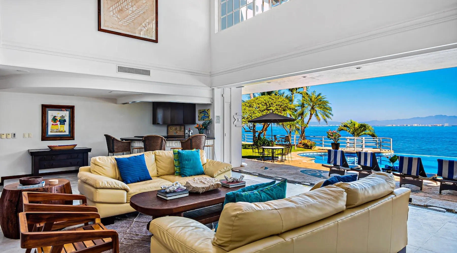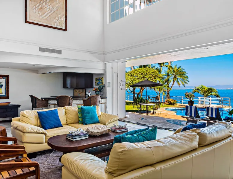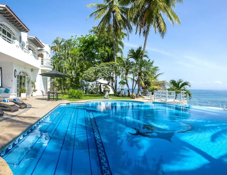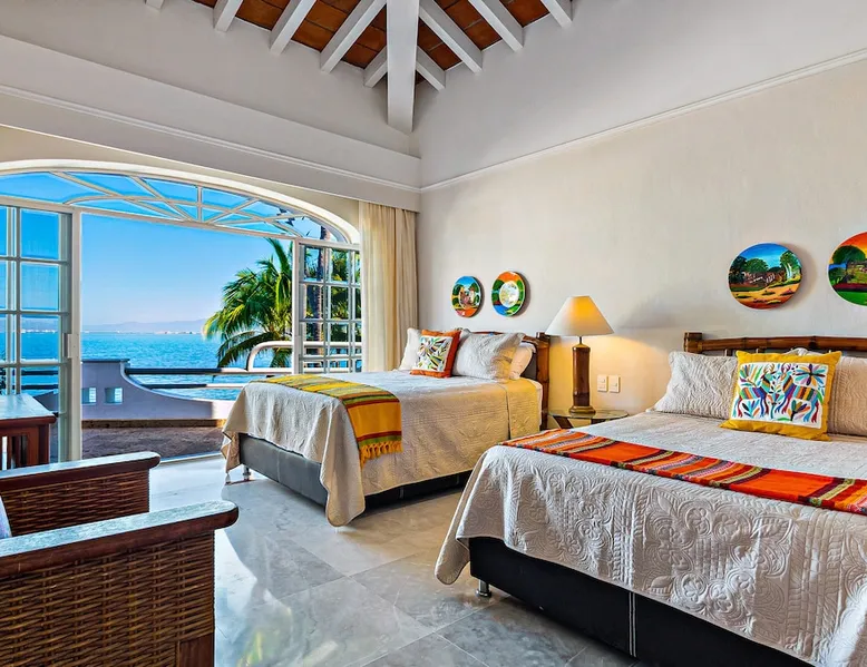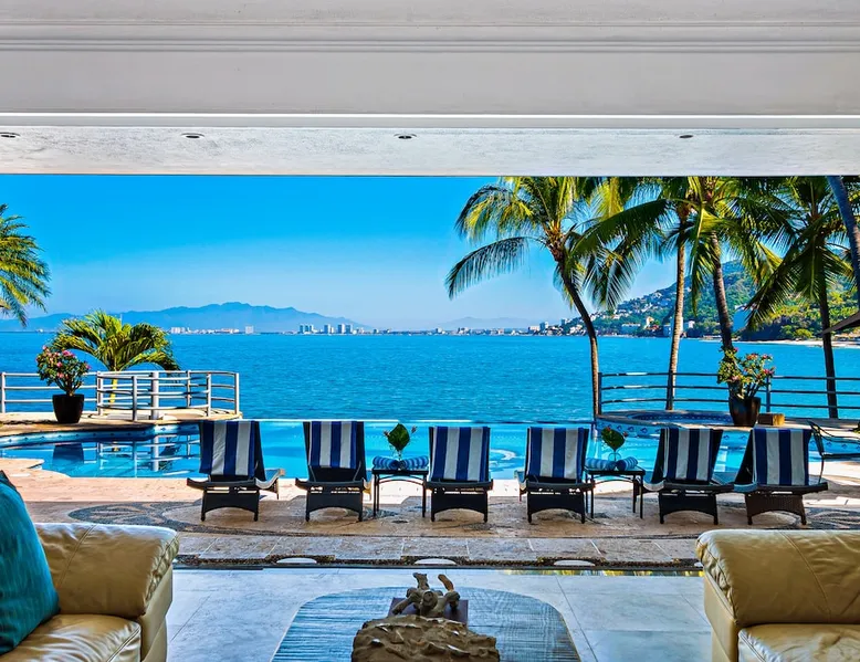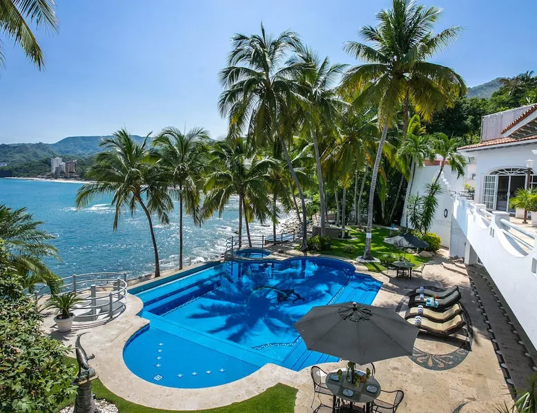 Your friends and family will have an amazing getaway in this spacious & unique 6 bed/7 bath villa overlooking the Bay of Banderas. The meticulously landscaped grounds provide a beautiful backdrop to the huge salt water infinity pool, hot tub, and sand beach. Located on the south side of Puerto Vallarta, this home is less than 10 minutes to downtown PV where you can enjoy all the entertainment and fabulous food that this friendly and vibrant town has to offer. The space With 6 ocean front bedrooms and 7 bathrooms, this home has plenty of space to accommodate your large group. All bedrooms have an en-suite bathroom and ocean view. You will sleep in total comfort on top of the line mattresses and luxurious linens.. The spacious great room with fully retractable doors and large bar provide a comfortable space for your group to gather while providing an unbelievable ocean view. Our newly remodeled chef's kitchen will give you everything you need to prepare amazing meals...unless you want our private chef to do it for you! Guest access The entire villa and exterior space are yours to enjoy! Other things to note Daily housekeeping, chef service for breakfast, and on-site property manager included! Additional amenities include: Welcome margarita, guacamole, pico de gallo & chips High speed internet in all rooms Private man-made beach area (no access to water) Amazon Firestick TV Free long distance phone calls AC units in all rooms Purified water system Customized concierge and pre-arrival services Steinway Grand Piano Security system Outdoor grill Indoor/outdoor stereo system BACHELOR & BACHELORETTE PARTIES REQUIRE PRIOR APPROVAL. Professional Chef Service (prices for up to 12 people): Breakfast (including server): cost of chef service included in your stay (groceries and gratuity not included) Lunch (including server) -------------------------------- $150 USD/day (plus food & gratuity) Dinner (including server)---------------------------------$175 USD/day (plus food & gratuity) Lunch & Dinner (including server)---------------------$275 USD/day (plus food & gratuity) Pre-arrival Grocery Delivery ----------------$50 USD (included with booking of any chef services) Rates for 13-19 people: Lunch $200, Dinner $225, Lunch and Dinner $375 Professional bartender $50/ 8 hours PRICES ARE SUBJECT TO CHANGE. Airport Transfer: Private Pick up and Return to airport in a Mercedes Suburban (up to 6 people) ——- $210 USD (Roundtrip) Private Pick up and Return to airport in a Sprinter Van (up to 12 people) ——- $290 USD (Roundtrip) Private Pick up and Return to airport in a Sprinter Van (up to 20 people)--------- $330 USD (Roundtrip) Private Pick up and Return to airport in a car (up to 3 people)-----------------------$100 PRICES ARE SUBJECT TO CHANGE. Concierge Services Our Booking Manager, Alejandra Cobos and her staff, will be at your service to help you plan your wedding, event or vacation in Puerto Vallarta. Prices vary depending on service. Services include: Excursions Babysitting Services Spa Services Yacht/boat Rental Live Music or Entertainment Please note that we do not allow outside vendors into the villa (with the exception of approved weddings or events) for the security of our guests and staff. This includes massage therapists, entertainers, DJs, caterers, etc. Weddings and Events: This home can also be used as a wedding and event venue with discounted event rates with a 4 night rental. $7995 + tax: Weddings or Events up to 150 people $4495 + tax: Weddings or Events up to 150 people with a 4 night minimum stay