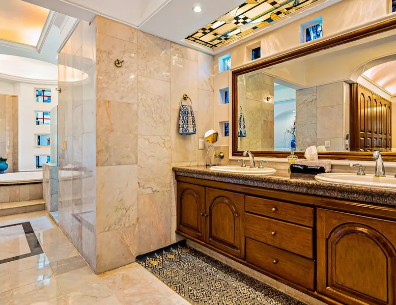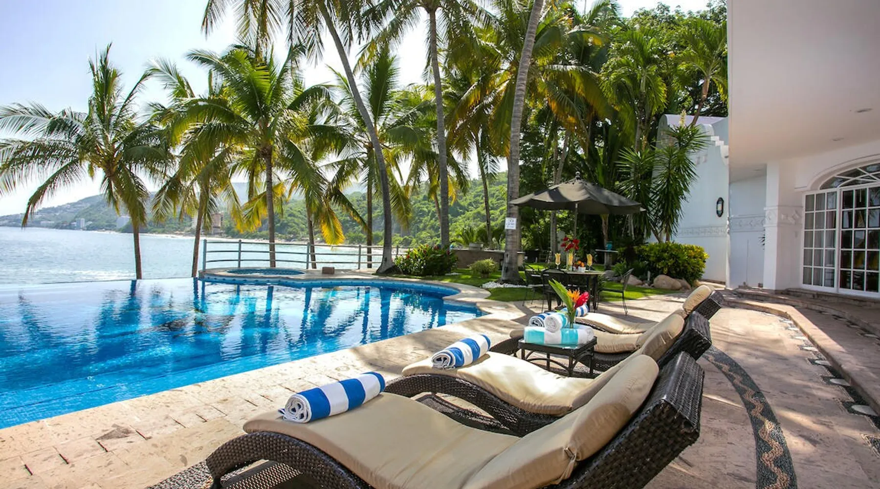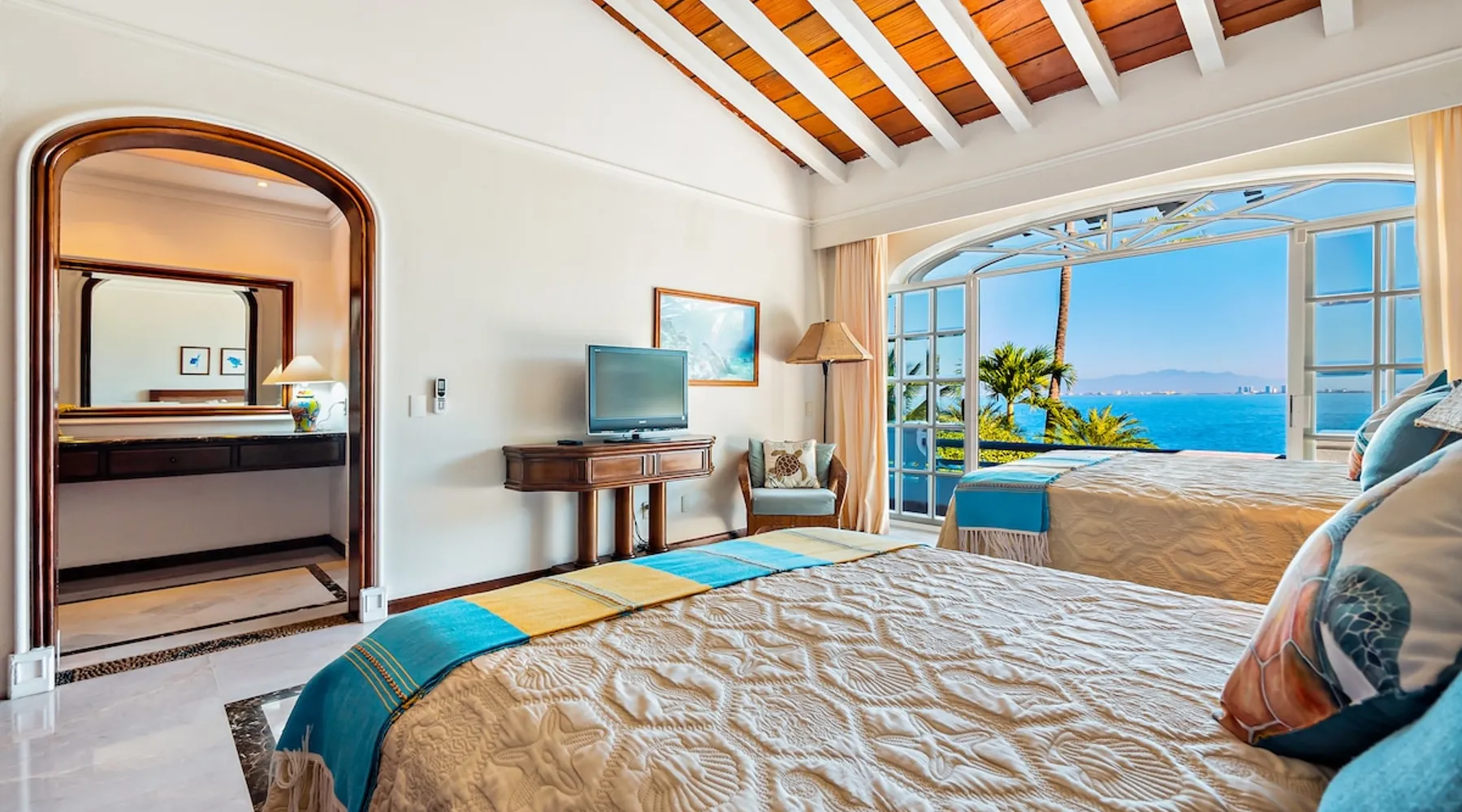 Your friends and family will have an amazing getaway in this spacious & unique 6 bed/7 bath villa overlooking the Bay of Banderas. The meticulously landscaped grounds provide a beautiful backdrop to the huge salt water infinity pool, hot tub, and sand beach. Located on the south side of Puerto Vallarta, this home is less than 10 minutes to downtown PV where you can enjoy all the entertainment and fabulous food that this friendly and vibrant town has to offer. The space With 6 ocean front bedrooms and 7 bathrooms, this home has plenty of space to accommodate your large group. All bedrooms have an en-suite bathroom and ocean view. You will sleep in total comfort on top of the line mattresses and luxurious linens.. The spacious great room with fully retractable doors and large bar provide a comfortable space for your group to gather while providing an unbelievable ocean view. Our newly remodeled chef's kitchen will give you everything you need to prepare amazing meals...unless you want our private chef to do it for you! Guest access The entire villa and exterior space are yours to enjoy! Other things to note Daily housekeeping, chef service for breakfast, and on-site property manager included! Additional amenities include: Welcome margarita, guacamole, pico de gallo & chips High speed internet in all rooms Private man-made beach area (no access to water) Amazon Firestick TV Free long distance phone calls AC units in all rooms Purified water system Customized concierge and pre-arrival services Steinway Grand Piano Security system Outdoor grill Indoor/outdoor stereo system BACHELOR & BACHELORETTE PARTIES REQUIRE PRIOR APPROVAL. Professional Chef Service (prices for up to 12 people): Breakfast (including server): cost of chef service included in your stay (groceries and gratuity not included) Lunch (including server) -------------------------------- $150 USD/day (plus food & gratuity) Dinner (including server)---------------------------------$175 USD/day (plus food & gratuity) Lunch & Dinner (including server)---------------------$275 USD/day (plus food & gratuity) Pre-arrival Grocery Delivery ----------------$50 USD (included with booking of any chef services) Rates for 13-19 people: Lunch $200, Dinner $225, Lunch and Dinner $375 Professional bartender $50/ 8 hours PRICES ARE SUBJECT TO CHANGE. Airport Transfer: Private Pick up and Return to airport in a Mercedes Suburban (up to 6 people) ——- $210 USD (Roundtrip) Private Pick up and Return to airport in a Sprinter Van (up to 12 people) ——- $290 USD (Roundtrip) Private Pick up and Return to airport in a Sprinter Van (up to 20 people)--------- $330 USD (Roundtrip) Private Pick up and Return to airport in a car (up to 3 people)-----------------------$100 PRICES ARE SUBJECT TO CHANGE. Concierge Services Our Booking Manager, Alejandra Cobos and her staff, will be at your service to help you plan your wedding, event or vacation in Puerto Vallarta. Prices vary depending on service. Services include: Excursions Babysitting Services Spa Services Yacht/boat Rental Live Music or Entertainment Please note that we do not allow outside vendors into the villa (with the exception of approved weddings or events) for the security of our guests and staff. This includes massage therapists, entertainers, DJs, caterers, etc. Weddings and Events: This home can also be used as a wedding and event venue with discounted event rates with a 4 night rental. $7995 + tax: Weddings or Events up to 150 people $4495 + tax: Weddings or Events up to 150 people with a 4 night minimum stay