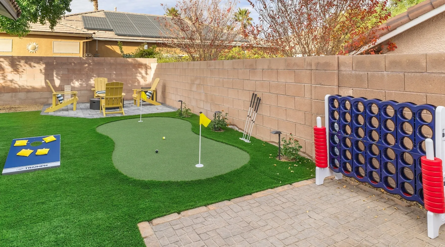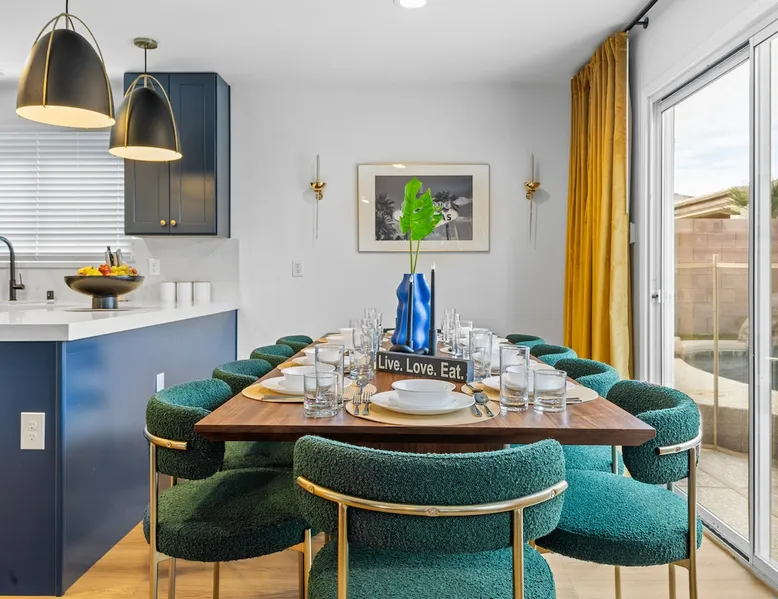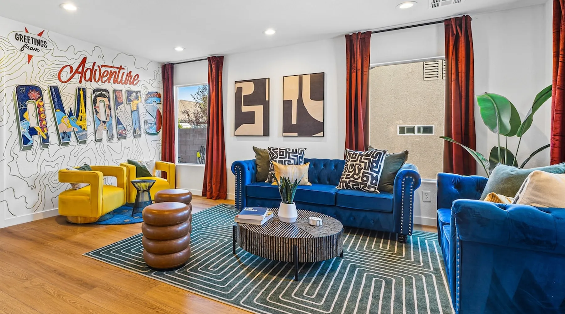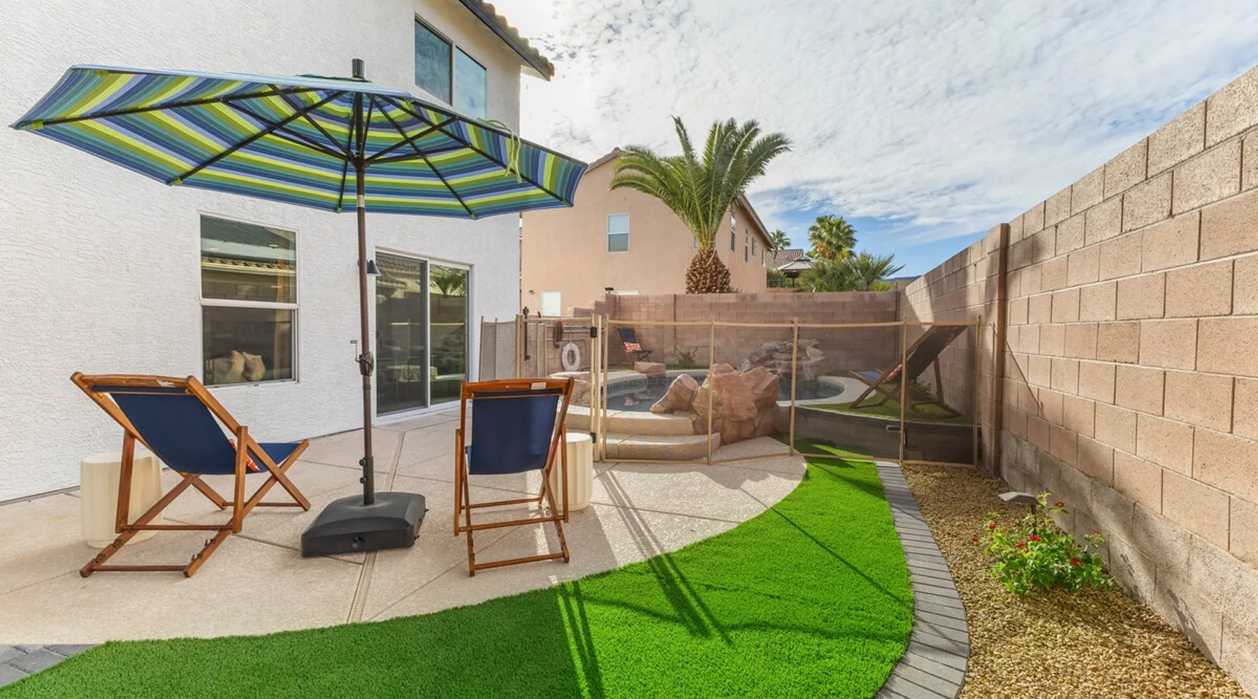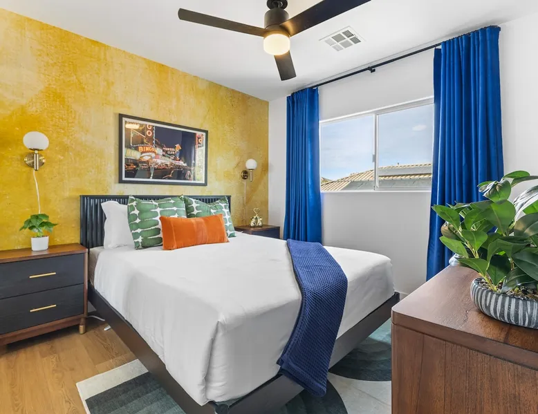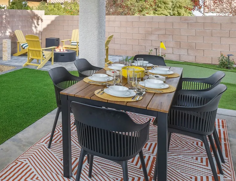 THE COOLEST short-term rental in Las Vegas!! Centrally located in the great MacDonald Highlands area of Henderson, 15 min from the world-famous Las Vegas Strip. Our LICENSED, fun, and fashionable 6BD/3 full BA home in this upscale neighborhood is the perfect spot for your family and friends. Relax around your private heat-able plunge pool or play in our incredible game room with custom hand-painted black light art by a local artist! The space Our home named "Adventure Awaits" is perfect for your family, friends, business professionals, conventioneers, or traveling groups who prefer to setup base together in a centrally located home with a kitchen in a quiet neighborhood. Important note: We require our guests to follow the City of Henderson Good Neighbor Policy, which includes (among other things) controlling noise at the home. Please see below for further details. Your group will have the best of both worlds at our home...part of your group can enjoy the Las Vegas Strip and another part of your group can stay and have a blast at home. At a glance: ★ Sleeps up to 14 adults in beds ★ 15 minutes to the airport (Harry Reid International) ★ 15 minutes to the Las Vegas Strip ★ 2-Car garage parking ★ 1 Bedroom downstairs, 5 bedrooms upstairs (3 King and 7 Queen beds) ★ 1 Full bathroom downstairs, 2 full bathrooms upstairs. ★ Views of the Las Vegas Strip from a few upstairs bedrooms!! Here’s what your group will enjoy!: ★ Amazing custom heat-able plunge pool with a childproof safety fence ★ Beautiful and relaxing backyard with a 2-hole putting green, firepit, dining area, and yard games. ★ 6 bedrooms, each with their own brand new 4K SmartTVs. ★ Massive 400 square foot game room (Bedroom #6) with custom black light artwork by a local artist, stand-up arcade games, pool table, air hockey table, shuffle board table, and an 85" 4K Smart TV. Street Fighter, Golden Tee, and Ultimate Legend arcade games with hundreds of games onboard included for free. ★ Adult-sized Queen-over-Queen bunk bed in the Game Room. ★ Professionally decorated interior ★ Brand new 75” 4K smartTV in living room ★ Outdoor gas grill ★ High speed internet inside and outside the property, up to 500 Mbps internet speed ★ 2-car garage parking and 2-car driveway private parking ★ Close to many attractions. See the list we've prepared for you below. ★ Less than 0.5 mile to supermarkets, local restaurants, and Starbucks ★ Covered patio ★ Board games ★ Very well equipped kitchen with Quartz countertops ★ Large 10-person group dining table and a 6-person outdoor patio dining table ★ Double sinks in majority of bathrooms ★ Ceiling fans in all bedrooms and living room ★ Easy entry/exit from home (unlike casino hotels) ★ Bring your own log-in for TV programming or cast right from your handheld device directly to smartTVs. We have the latest SmartTVs. Nearby attractions - What's there to do around Henderson?: ★ 3 Miles from Green Valley Ranch Resort and Casino ★ Hiking trails (see the list below) ★ 7 Golf courses within city limits. We are very close to Dragonridge Country Club ★ All the recreation available at Lake Mead and Lake Las Vegas ★ Hoover Dam ★ Locomotives at Clark County Heritage Museum ★ Petroglyph designs and rock carvings from previous civilizations at Sloan Canyon National Conservation Area ★ Cowabunga Bay Water Park ★ View desert birds at Henderson Bird Viewing Preserve ★ Breweries and whiskey houses ★ And, let's not forget the Vegas Strip (Sin City)! Nearby hiking trails: -Amargosa Trail -McCullough Hills Trail -Caesar, Big Mother and Old Vegas Loop -Mountain Loop Trail (hike or bike) -Railroad Pass Trail -Lizard Rocks Loop Trail -Mount Scorpion and Black Mountain Trails -Loki Loop Trail MORE DETAILED INFO BELOW. FEEL FREE TO SEND US A MESSAGE WITH ANY QUESTIONS YOU MAY STILL HAVE. WE RESPOND VERY QUICKLY. WE WOULD LOVE TO HOST YOU AT OUR LOVELY HOME! Guest access The entire home is accessible to our guests with a personalized door code shared with you before your check-in (minus 1 owner's closets in the master bedroom). Other things to note PRIVATE PARKING: 2 Car garage parking, plus, 2 car capacity driveway parking. Our driveway is relatively flat. Do not leave our garage door open for an extended period of time. Utilize all on-site parking before parking on the street. OCCUPANCY: Per city rules, MAXIMUM OCCUPANCY OF THE PROPERTY IS 14 persons of any age at any given time. Only the number of guests listed in your reservation (up to 14 persons) are permitted on the property at any given time. If you plan to have daytime visitors, please include them in your guest count. There is a $500 charge and your reservation will be cancelled without a refund for violating this maximum occupancy rule. ENTRY: The front door is equipped with an electronic keypad, we will send a personalized door code before check-in. Check-in any time after 4pm Pacific Time Zone. Check out is at 10am Pacific Time Zone. No late check-out or early check-in. If you arrive early or depart late, additional charges will incur. INTERNET/CABLE: High Speed Wireless Internet throughout the home. Do not modify or turn off the internet system of the home. Smart TVs in each of the 6 bedrooms and 1 common area. No cable programming provided due to the multitude of streaming/screen-casting options guests typically have nowadays on our SmartTVs. If you are unfamiliar with this concept, just ask us about how this works. Most people already have this ability, but are not aware. BEDROOMS: The 6 bedrooms can accommodate up to 14 adults as follows: Downstairs- Bedroom with King bed (2 adults) Upstairs- Master Bedroom with King bed (2 adults), dedicated bathroom Bedroom with King bed (2 adults) Bedroom with Queen bed (2 adults) Bedroom with Queen bed (2 adults) Game room with Queen over Queen bunk bed (4 adults) BONUS BED: The Master bedroom also has a day bed with a twin sized mattress that can a