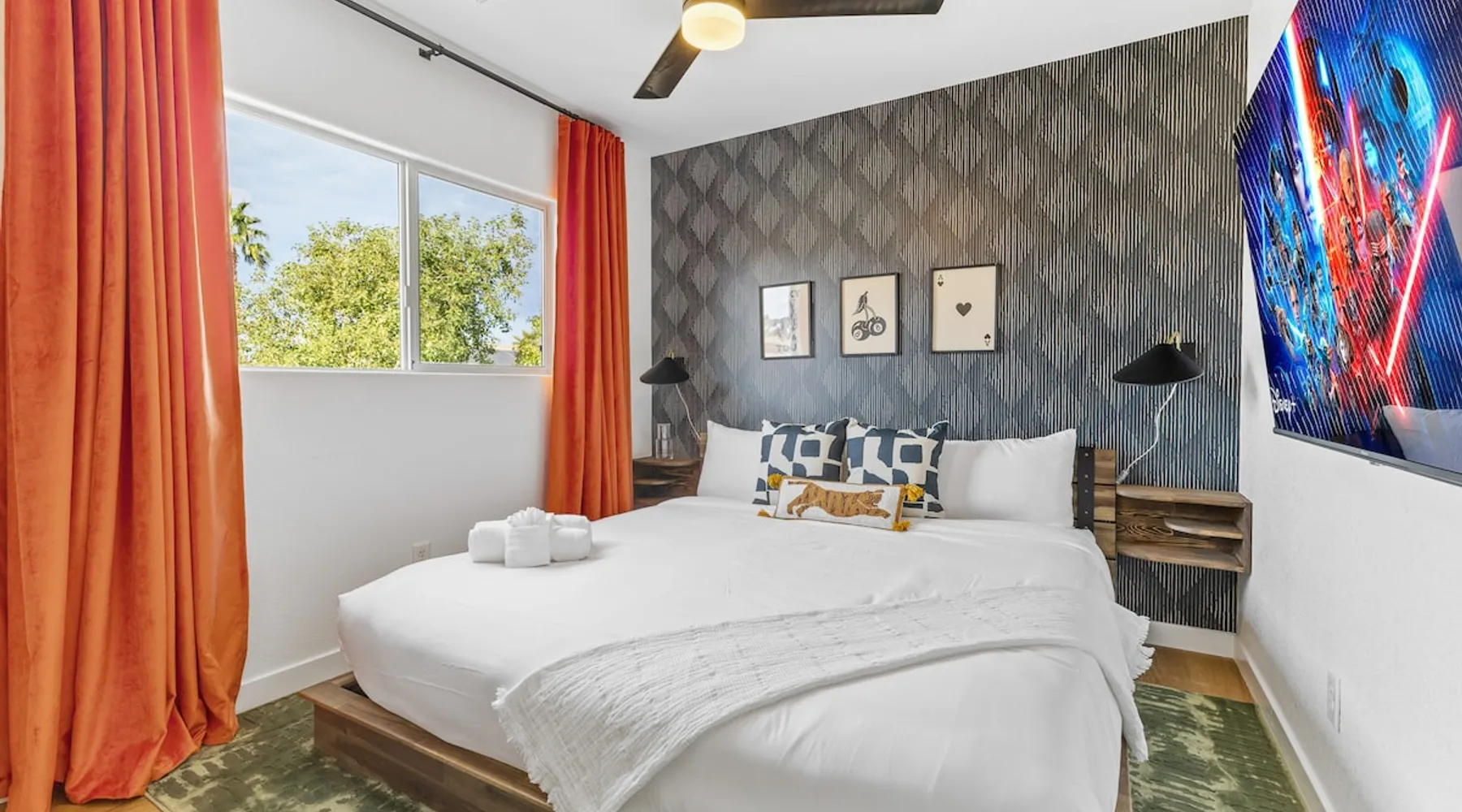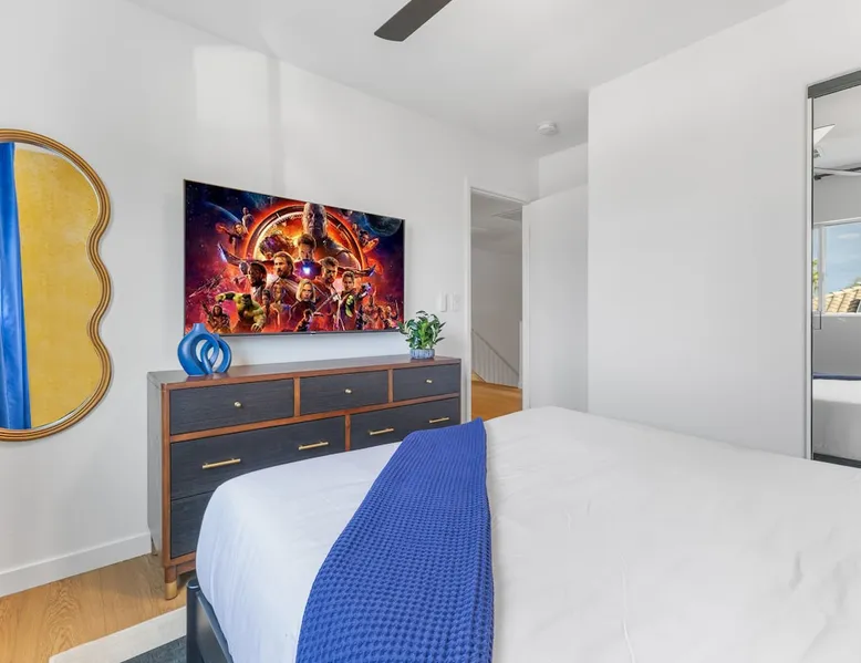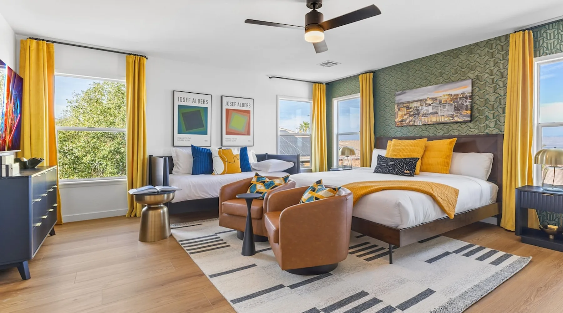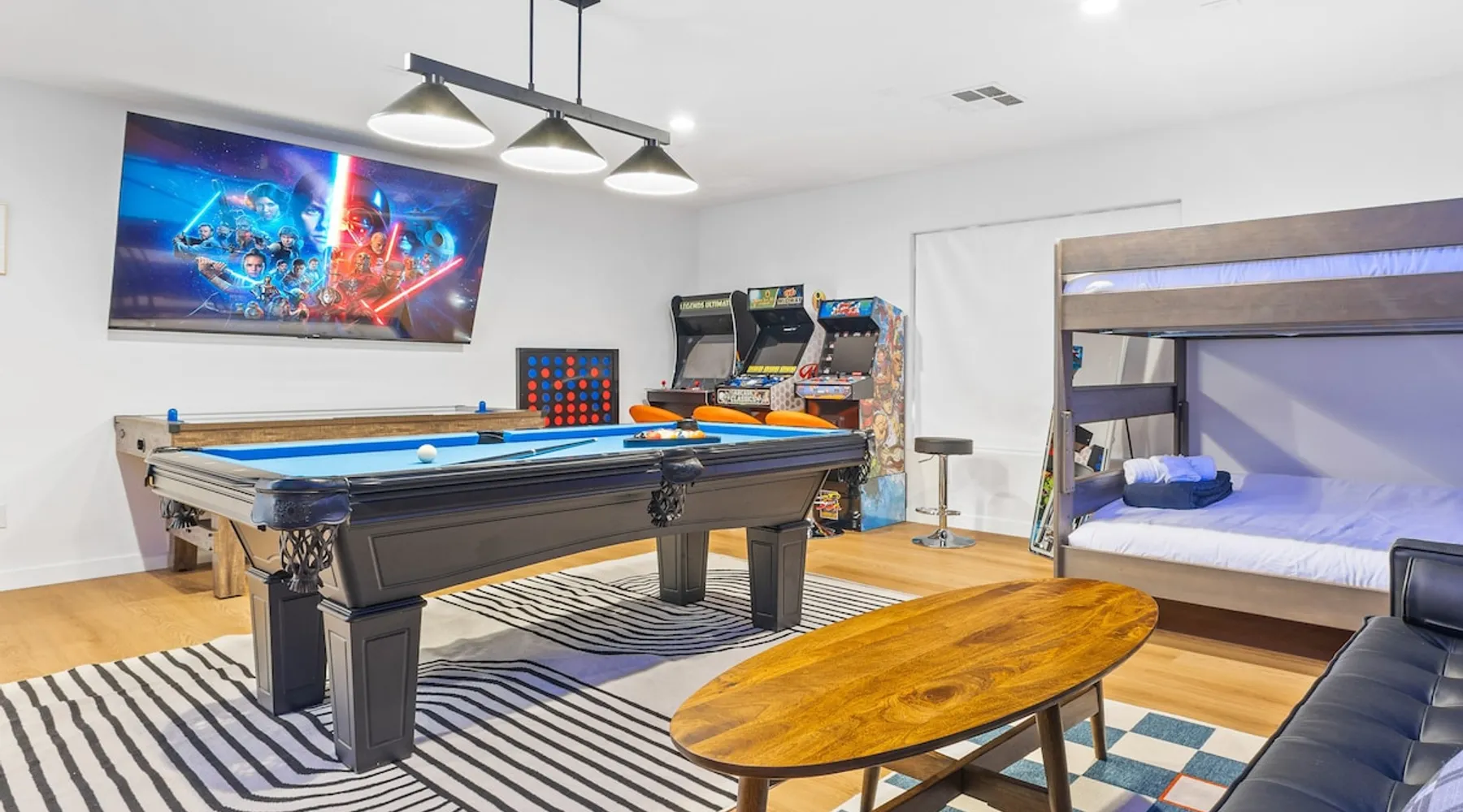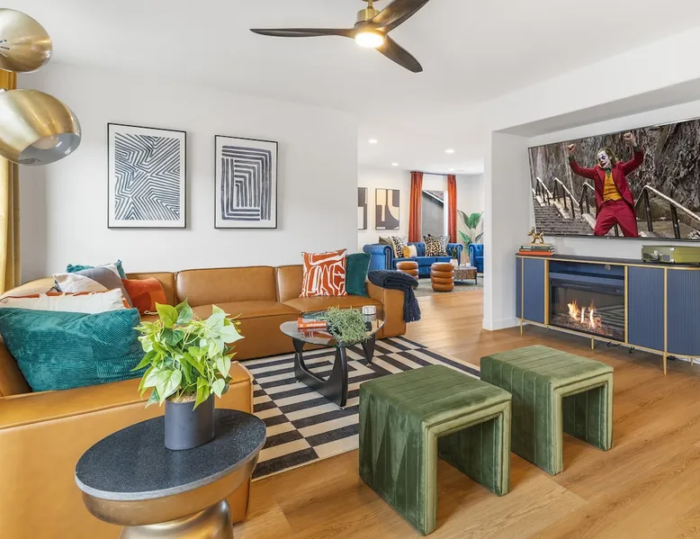 THE COOLEST short-term rental in Las Vegas!! Centrally located in the great MacDonald Highlands area of Henderson, 15 min from the world-famous Las Vegas Strip. Our LICENSED, fun, and fashionable 6BD/3 full BA home in this upscale neighborhood is the perfect spot for your family and friends. Relax around your private heat-able plunge pool or play in our incredible game room with custom hand-painted black light art by a local artist! The space Our home named "Adventure Awaits" is perfect for your family, friends, business professionals, conventioneers, or traveling groups who prefer to setup base together in a centrally located home with a kitchen in a quiet neighborhood. Important note: We require our guests to follow the City of Henderson Good Neighbor Policy, which includes (among other things) controlling noise at the home. Please see below for further details. Your group will have the best of both worlds at our home...part of your group can enjoy the Las Vegas Strip and another part of your group can stay and have a blast at home. At a glance: ★ Sleeps up to 14 adults in beds ★ 15 minutes to the airport (Harry Reid International) ★ 15 minutes to the Las Vegas Strip ★ 2-Car garage parking ★ 1 Bedroom downstairs, 5 bedrooms upstairs (3 King and 7 Queen beds) ★ 1 Full bathroom downstairs, 2 full bathrooms upstairs. ★ Views of the Las Vegas Strip from a few upstairs bedrooms!! Here’s what your group will enjoy!: ★ Amazing custom heat-able plunge pool with a childproof safety fence ★ Beautiful and relaxing backyard with a 2-hole putting green, firepit, dining area, and yard games. ★ 6 bedrooms, each with their own brand new 4K SmartTVs. ★ Massive 400 square foot game room (Bedroom #6) with custom black light artwork by a local artist, stand-up arcade games, pool table, air hockey table, shuffle board table, and an 85" 4K Smart TV. Street Fighter, Golden Tee, and Ultimate Legend arcade games with hundreds of games onboard included for free. ★ Adult-sized Queen-over-Queen bunk bed in the Game Room. ★ Professionally decorated interior ★ Brand new 75” 4K smartTV in living room ★ Outdoor gas grill ★ High speed internet inside and outside the property, up to 500 Mbps internet speed ★ 2-car garage parking and 2-car driveway private parking ★ Close to many attractions. See the list we've prepared for you below. ★ Less than 0.5 mile to supermarkets, local restaurants, and Starbucks ★ Covered patio ★ Board games ★ Very well equipped kitchen with Quartz countertops ★ Large 10-person group dining table and a 6-person outdoor patio dining table ★ Double sinks in majority of bathrooms ★ Ceiling fans in all bedrooms and living room ★ Easy entry/exit from home (unlike casino hotels) ★ Bring your own log-in for TV programming or cast right from your handheld device directly to smartTVs. We have the latest SmartTVs. Nearby attractions - What's there to do around Henderson?: ★ 3 Miles from Green Valley Ranch Resort and Casino ★ Hiking trails (see the list below) ★ 7 Golf courses within city limits. We are very close to Dragonridge Country Club ★ All the recreation available at Lake Mead and Lake Las Vegas ★ Hoover Dam ★ Locomotives at Clark County Heritage Museum ★ Petroglyph designs and rock carvings from previous civilizations at Sloan Canyon National Conservation Area ★ Cowabunga Bay Water Park ★ View desert birds at Henderson Bird Viewing Preserve ★ Breweries and whiskey houses ★ And, let's not forget the Vegas Strip (Sin City)! Nearby hiking trails: -Amargosa Trail -McCullough Hills Trail -Caesar, Big Mother and Old Vegas Loop -Mountain Loop Trail (hike or bike) -Railroad Pass Trail -Lizard Rocks Loop Trail -Mount Scorpion and Black Mountain Trails -Loki Loop Trail MORE DETAILED INFO BELOW. FEEL FREE TO SEND US A MESSAGE WITH ANY QUESTIONS YOU MAY STILL HAVE. WE RESPOND VERY QUICKLY. WE WOULD LOVE TO HOST YOU AT OUR LOVELY HOME! Guest access The entire home is accessible to our guests with a personalized door code shared with you before your check-in (minus 1 owner's closets in the master bedroom). Other things to note PRIVATE PARKING: 2 Car garage parking, plus, 2 car capacity driveway parking. Our driveway is relatively flat. Do not leave our garage door open for an extended period of time. Utilize all on-site parking before parking on the street. OCCUPANCY: Per city rules, MAXIMUM OCCUPANCY OF THE PROPERTY IS 14 persons of any age at any given time. Only the number of guests listed in your reservation (up to 14 persons) are permitted on the property at any given time. If you plan to have daytime visitors, please include them in your guest count. There is a $500 charge and your reservation will be cancelled without a refund for violating this maximum occupancy rule. ENTRY: The front door is equipped with an electronic keypad, we will send a personalized door code before check-in. Check-in any time after 4pm Pacific Time Zone. Check out is at 10am Pacific Time Zone. No late check-out or early check-in. If you arrive early or depart late, additional charges will incur. INTERNET/CABLE: High Speed Wireless Internet throughout the home. Do not modify or turn off the internet system of the home. Smart TVs in each of the 6 bedrooms and 1 common area. No cable programming provided due to the multitude of streaming/screen-casting options guests typically have nowadays on our SmartTVs. If you are unfamiliar with this concept, just ask us about how this works. Most people already have this ability, but are not aware. BEDROOMS: The 6 bedrooms can accommodate up to 14 adults as follows: Downstairs- Bedroom with King bed (2 adults) Upstairs- Master Bedroom with King bed (2 adults), dedicated bathroom Bedroom with King bed (2 adults) Bedroom with Queen bed (2 adults) Bedroom with Queen bed (2 adults) Game room with Queen over Queen bunk bed (4 adults) BONUS BED: The Master bedroom also has a day bed with a twin sized mattress that can a