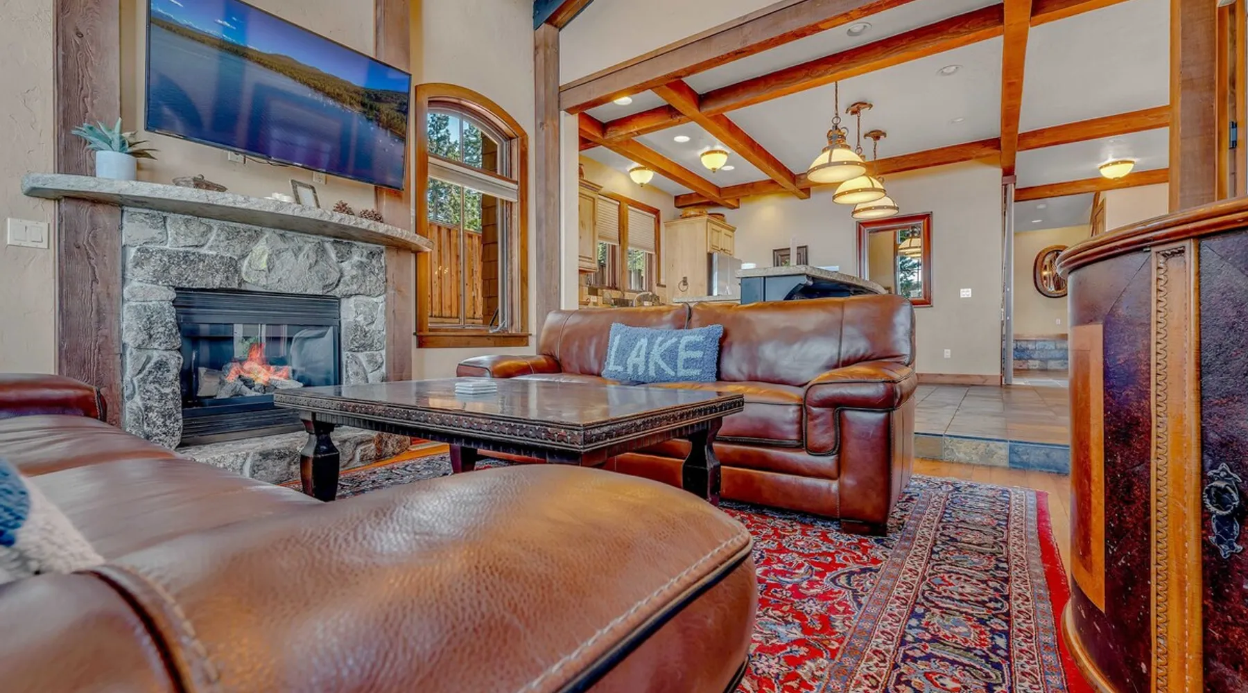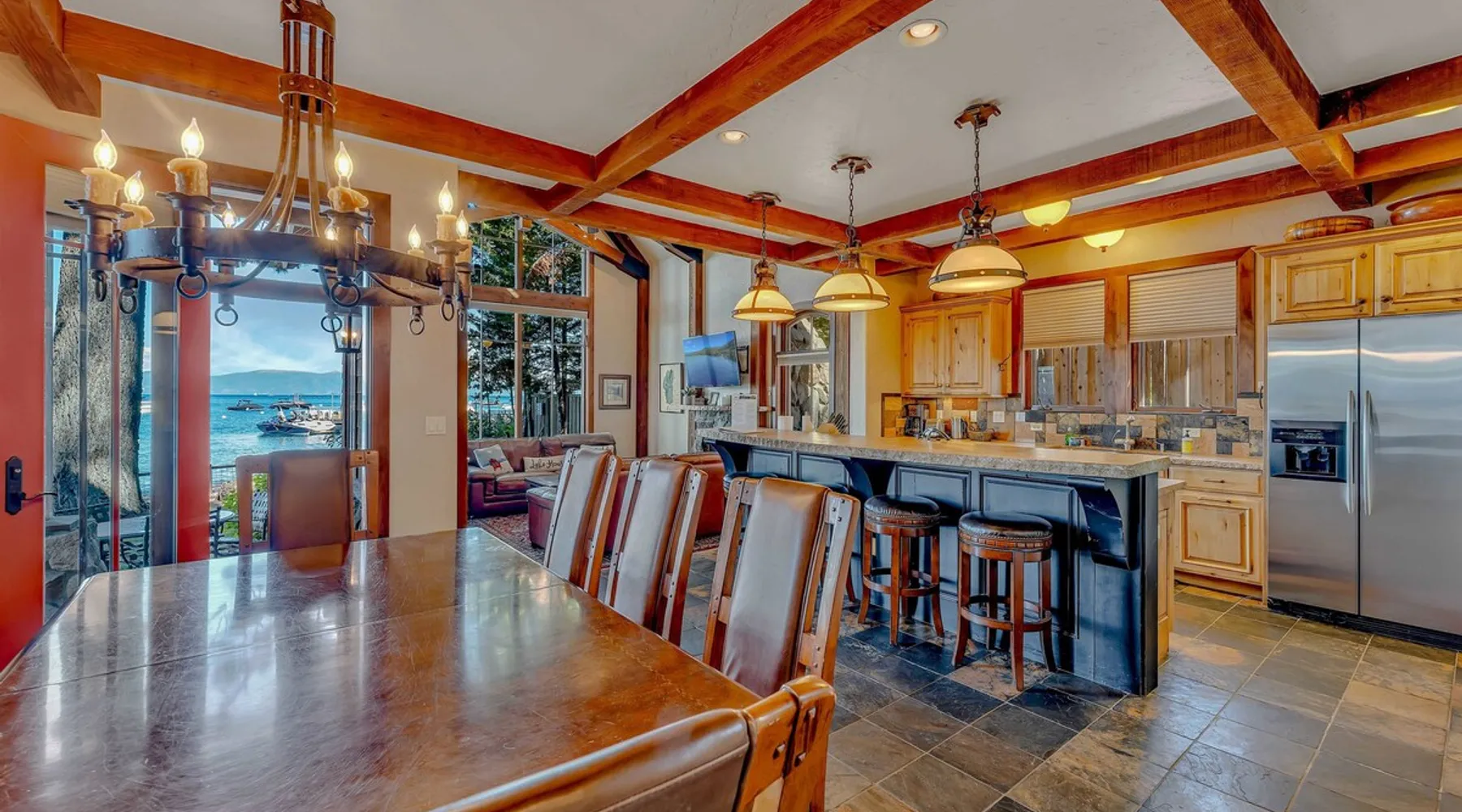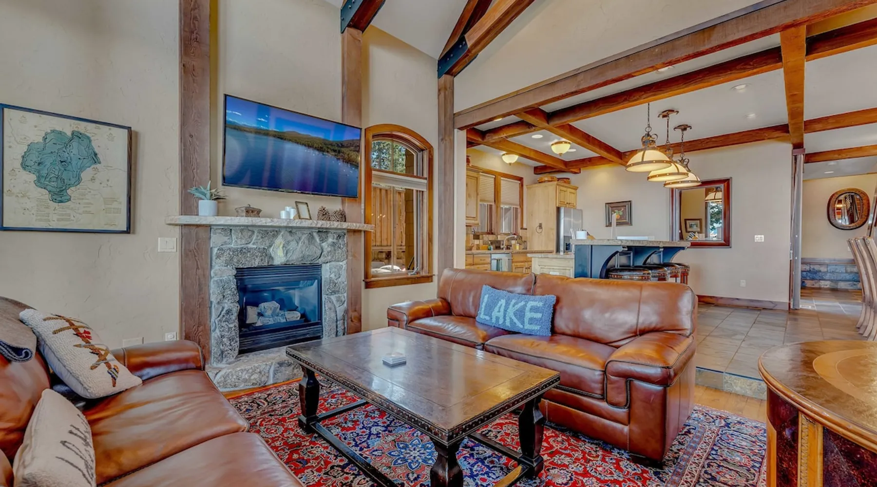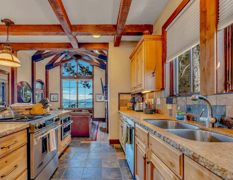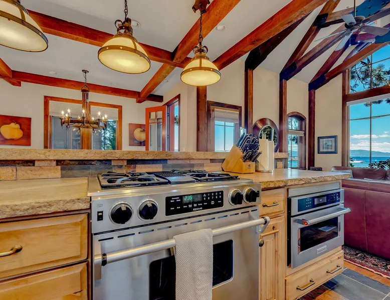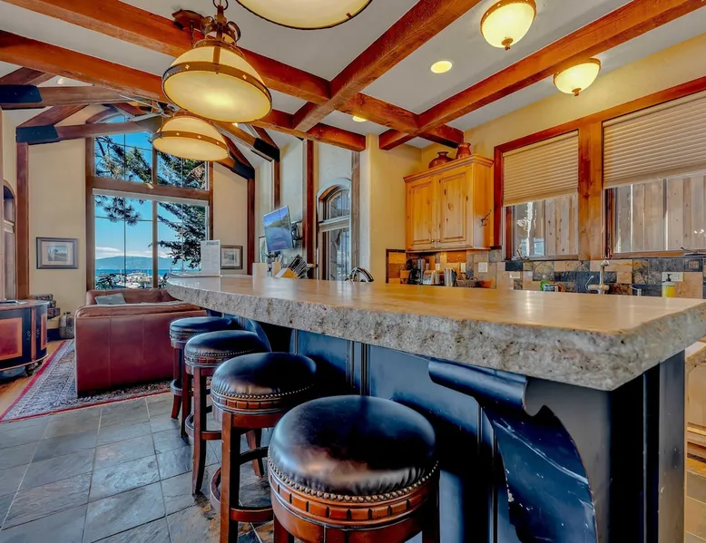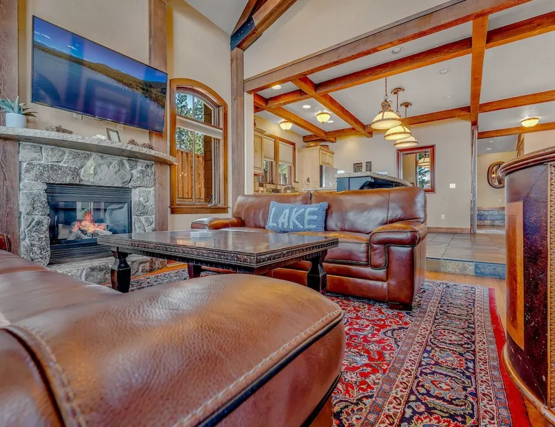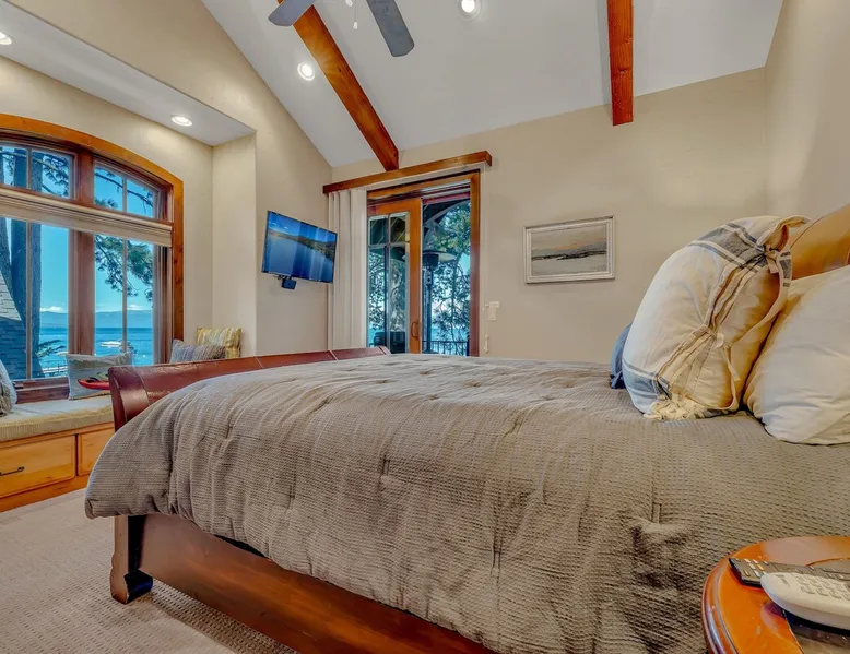 This Lake Tahoe vacation rental combines mountain charm with modern comforts, offering 3 floors of inviting living space. With 3 bedrooms, 3 bathrooms, and thoughtful amenities like a fully equipped kitchen, free WiFi, and central heating, this home is perfect for your next getaway. Enjoy private balconies with peaceful views, cozy evenings by the fireplace, and easy access to year-round outdoor adventures. Make this your base for exploring the beauty of North Lake Tahoe. The space Location perks: Lake Tahoe (on-site), Homewood Mountain Resort (0.1 miles, CLOSED for the 2024-2025 ski season), Tahoe City (6.3 miles), Alpine Base Area at Palisades Tahoe (13.1 miles), Northstar California Resort (21.6 miles) Interior: - Kitchen (drip coffee maker, Crockpot, blender, cooking utensils, tableware) - Gas fireplace - 2 Smart TVs with cable (50” in living room, 46" in bedroom) - Free WiFi (16 Mbps) - Washer and dryer - Central heating, no A/C (ceiling fans in bedrooms) - 1,846 sq ft Exterior: - Beach access - Patio - 2 balconies - Fire pit - Gas grill - On-site tandem parking for 2 vehicles in driveway Optional luxe add-on services (additional fees, please contact host to arrange): - Airport transfer - Chef/bartender - Grocery pre-stocking - Mid-stay clean Upper Floor: 2 bedrooms, 1 en-suite bathroom, 1 full bathroom Main Floor: Living room, kitchen, dining room, 1 bedroom, 1 full bathroom Whether you're here to ski, relax by the lake, or explore the beauty of Lake Tahoe, this home provides the perfect blend of luxury and convenience! Upon entering the home on the main level, you'll find an open layout with soaring windows that frame the crystal blue waters of Lake Tahoe—a stunning backdrop for your stay. On this level, there is a beautiful kitchen fully equipped with everything you need to prepare home-cooked meals, including a Crockpot and blender. The kitchen features a spacious bar with 4 bar stools, perfect for grabbing a snack, enjoying a meal, or catching up on remote work. A 7-person dining table is steps away from the kitchen, offering the perfect spot to enjoy a meal with your group while taking in the lake views. Gather in the living room on the 2 leather couches, warm up by the gas fireplace, and watch a movie on the 50” Smart TV. In the summertime, step outside to the private patio, where an outdoor table and seating offer a dreamy spot to relax while enjoying the lake views. When you are ready to tuck in for the night, you'll find 3 bedrooms, all with king beds and ceiling fans for added comfort. The first guest bedroom is on the main floor, tucked away from the shared living space, and includes a wardrobe for storing your personal items. A full bathroom with a bathtub/shower combo is across the hallway from the first bedroom for convenient shared use. On the upper floor, you'll find a second guest bedroom with 2 closets and a private balcony with views of the ski lifts at Homewood. A second shared bathroom is next to this guest room and, like the main floor bathroom, includes a single-sink vanity and a bathtub/shower combo. Rounding out the upper floor is the master bedroom, a beautiful space with a 46” Smart TV, a window seat, a private patio overlooking the lake with a propane heater, and an en-suite bath. The en-suite bath is a spa-like space with a double-vanity sink, a steam shower, and a jacuzzi tub. A washer and dryer are also included on the main floor, making it hassle-free to keep up with laundry needs during your stay. STR License Number: STR23-4666 Guest access Guests will have access to the entire home and 2 tandem parking spaces on one side of the driveway. Other things to note Please note that like most homes in the area, this home does not have A/C. Charcoal grills are strictly forbidden in this county and will result in a $1,500 citation if used. 4-wheel drive or 2-wheel drive tires with snow chains may be necessary for safe travel to this property, even if it hasn’t snowed in a few days. Please keep in mind that if you plan to ski, you are responsible for verifying the ski resorts' opening and closing dates. If you're interested in luxury add-on services like airport transfers, a private chef, bartender, grocery pre-stocking, or a mid-stay clean, please contact Local VR for details on availability and additional fees. Registration details STR23-4666